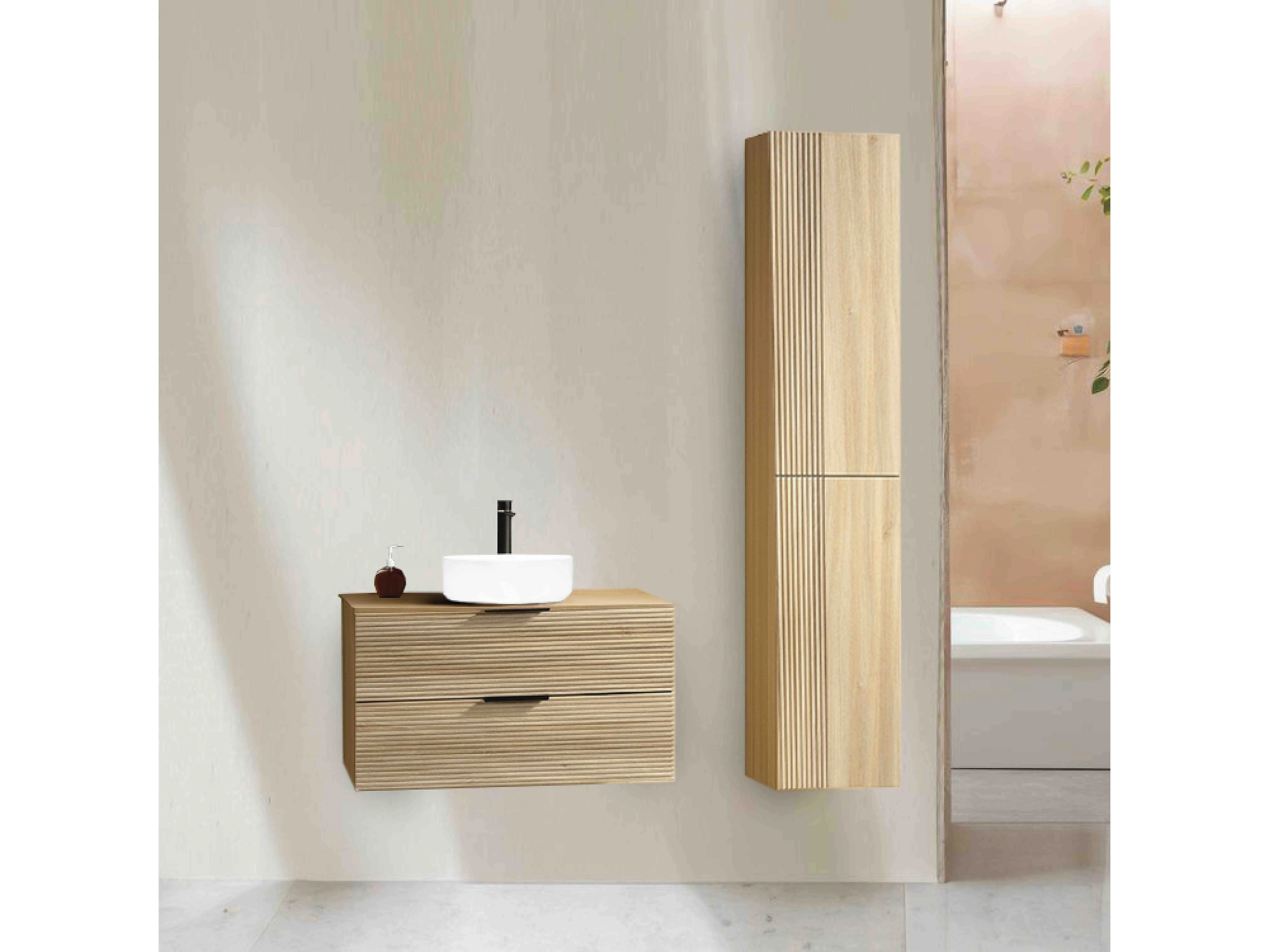 Ensemble salle de bain 100 cm chêne clair vasque à poser blanc mat Aqualinea