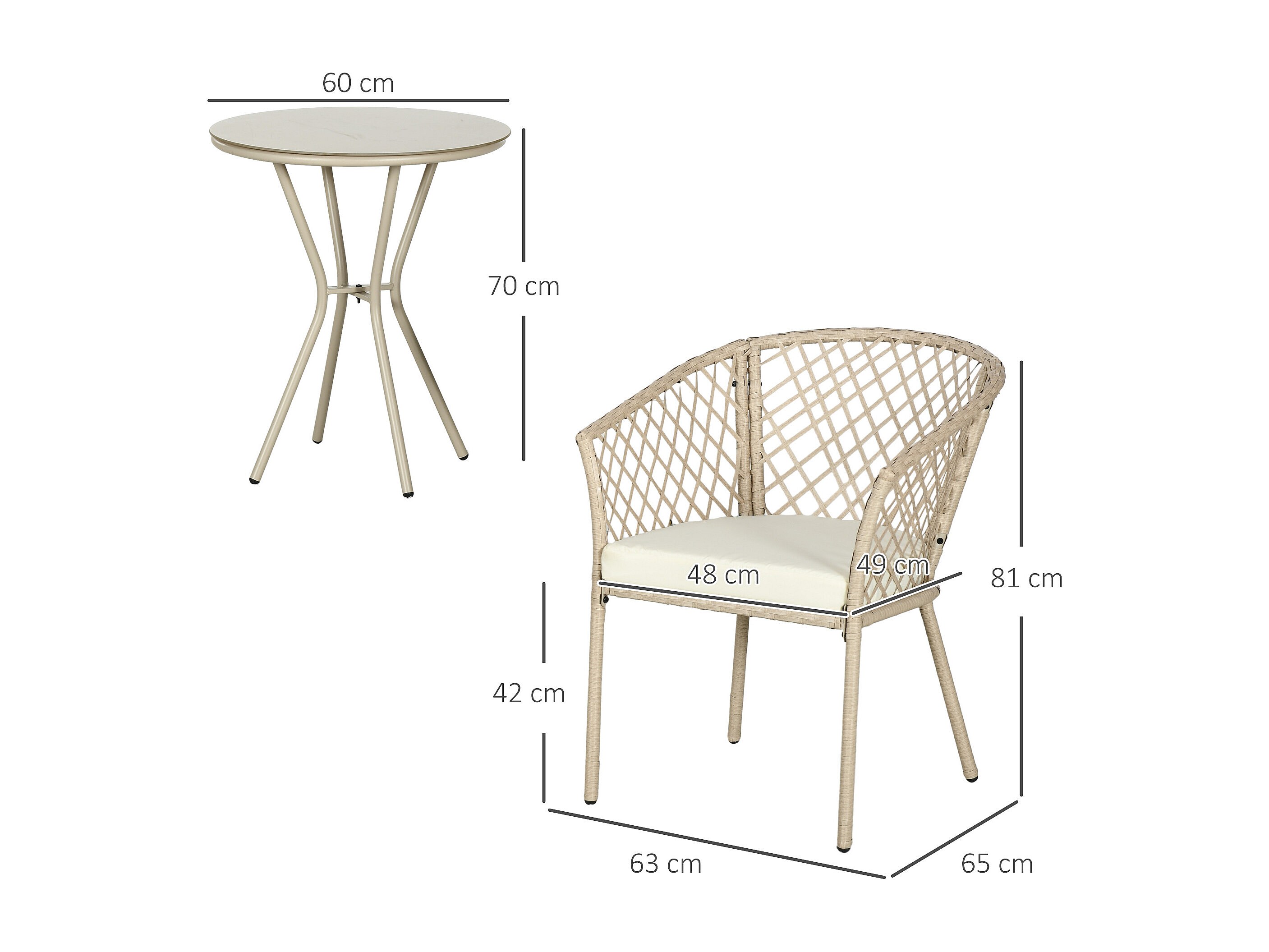 Ensemble salon de jardin 2 places 3 pièces avec coussins résine tressée beige
