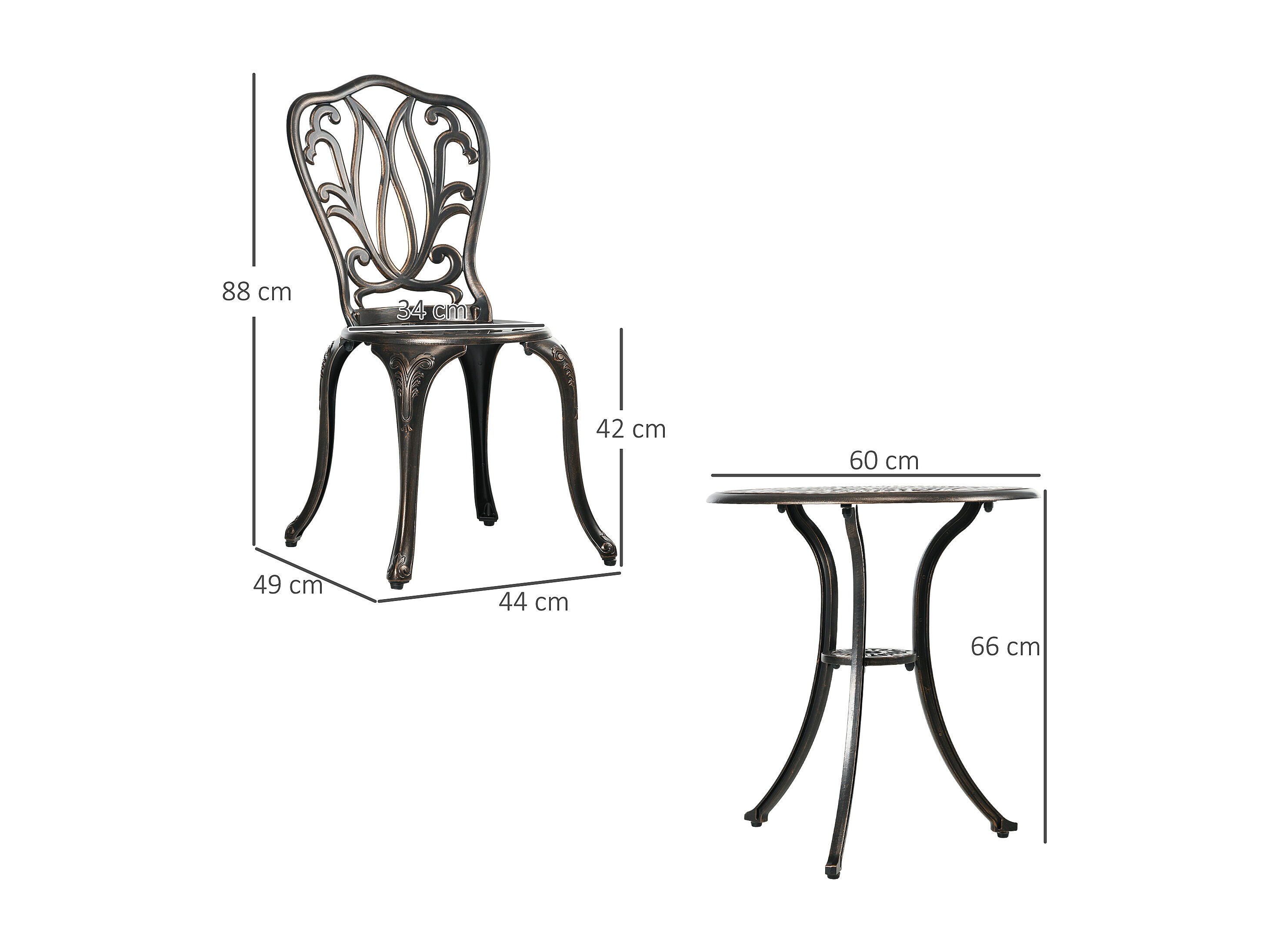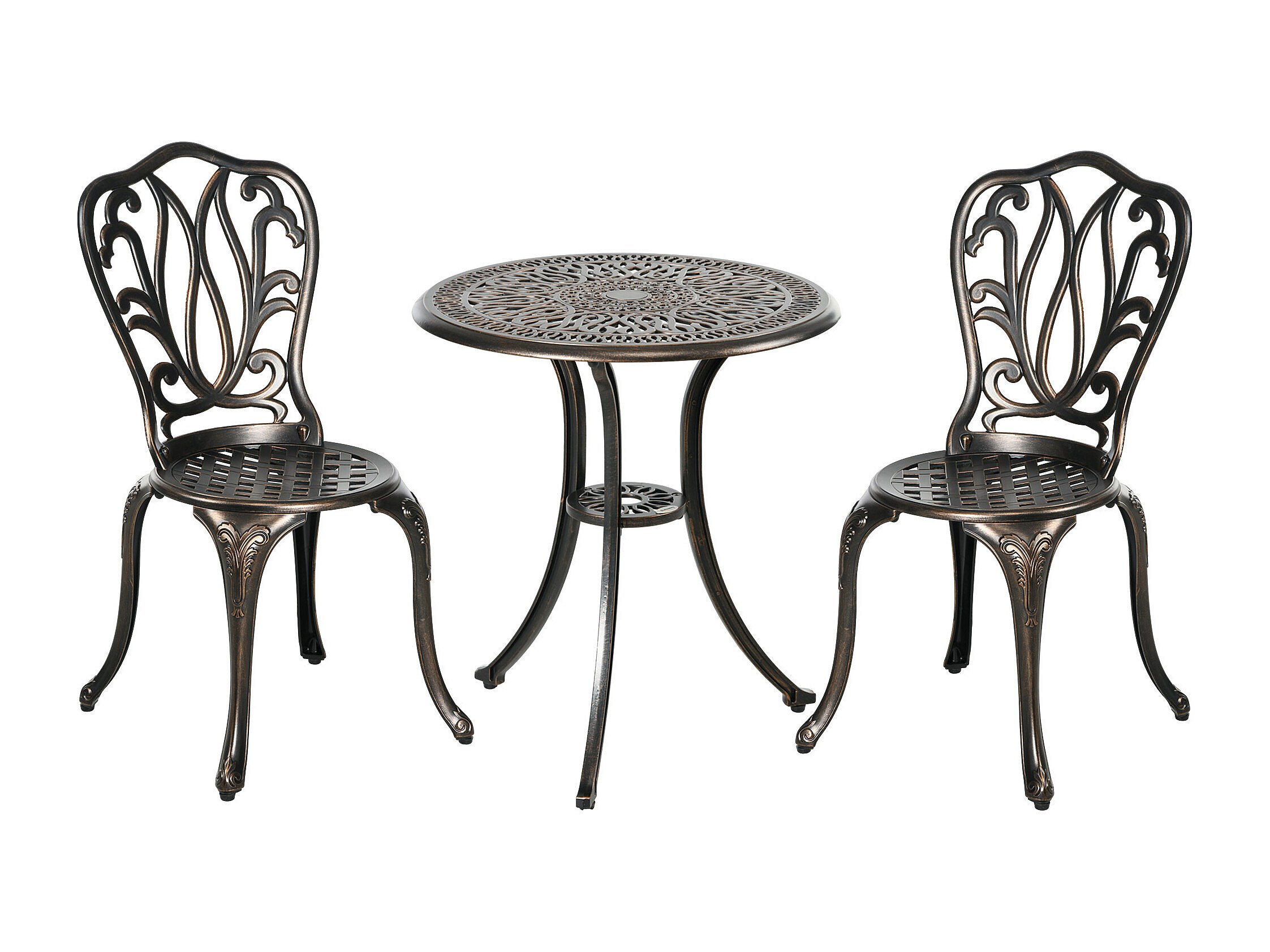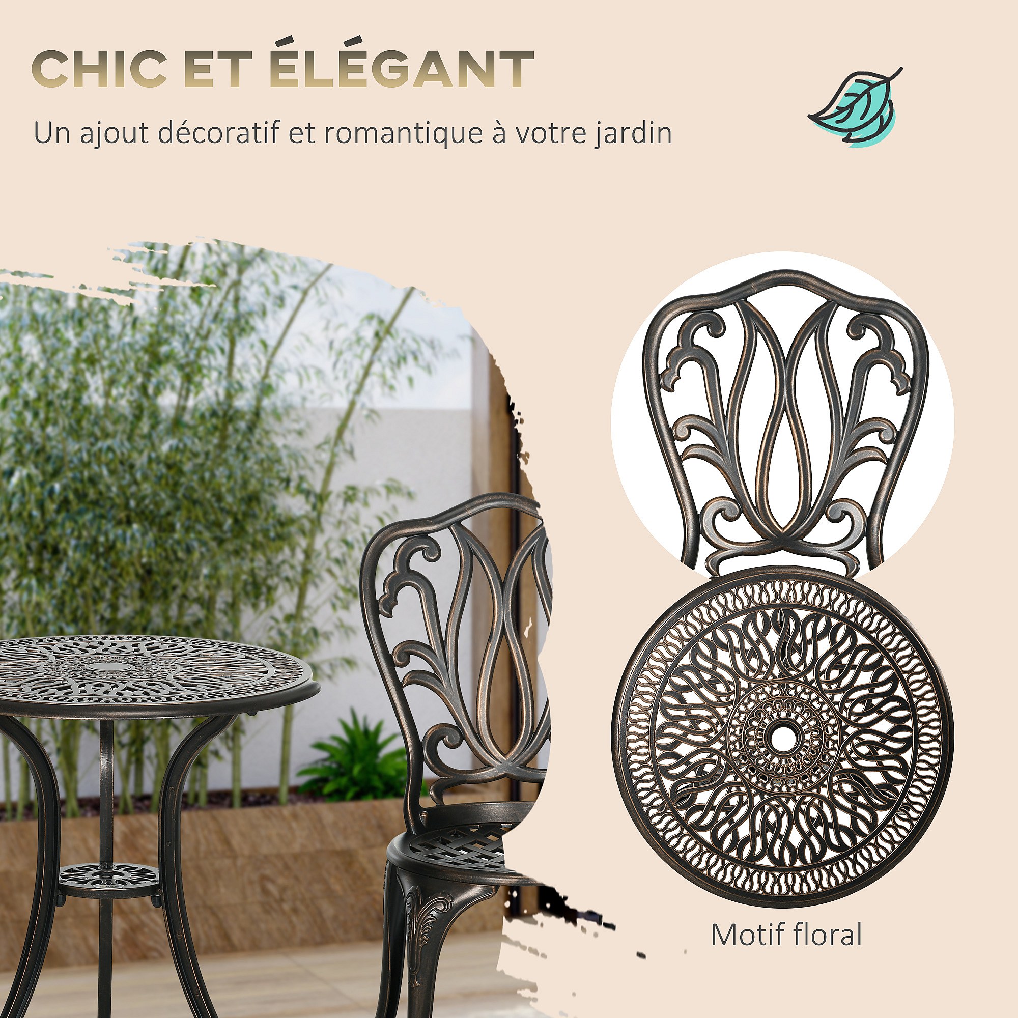 Ensemble salon de jardin 2 places avec table ronde style rétro fonte alu effet bronze antique