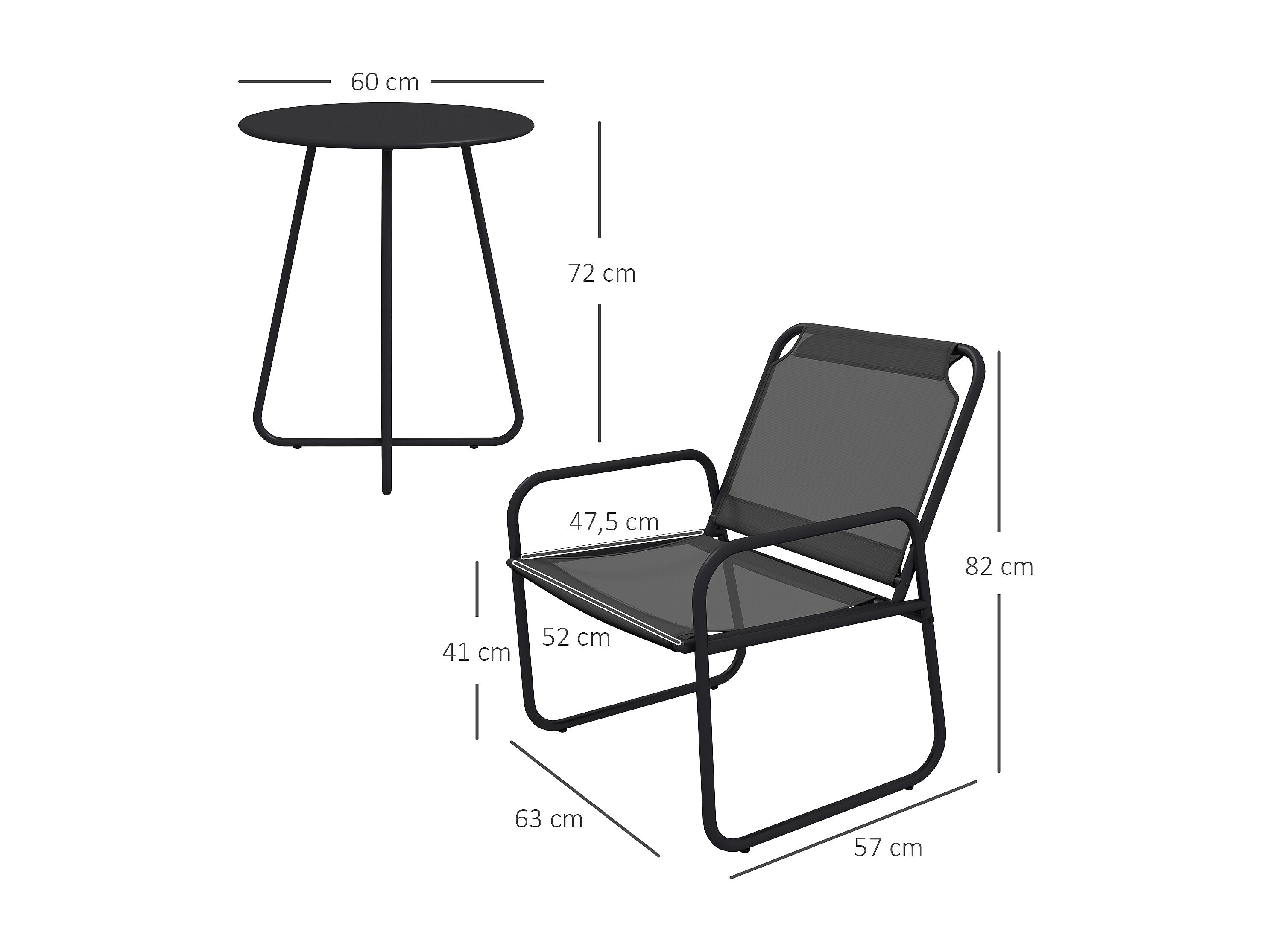 Ensemble salon de jardin 3 pcs 2 fauteuils et table ronde gris