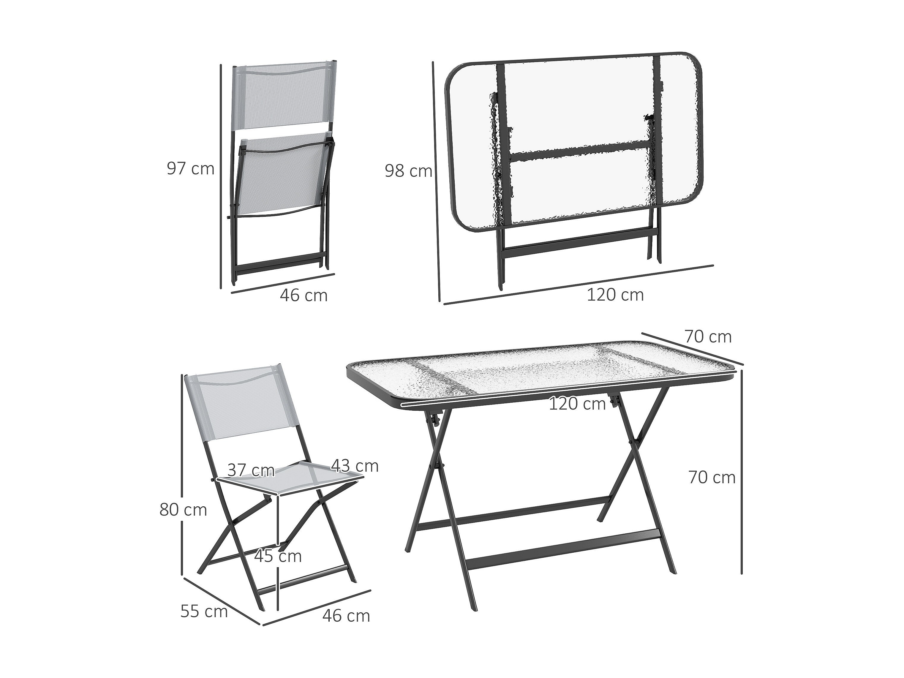 Ensemble salon de jardin 5 pièces pliables 4 chaises et table