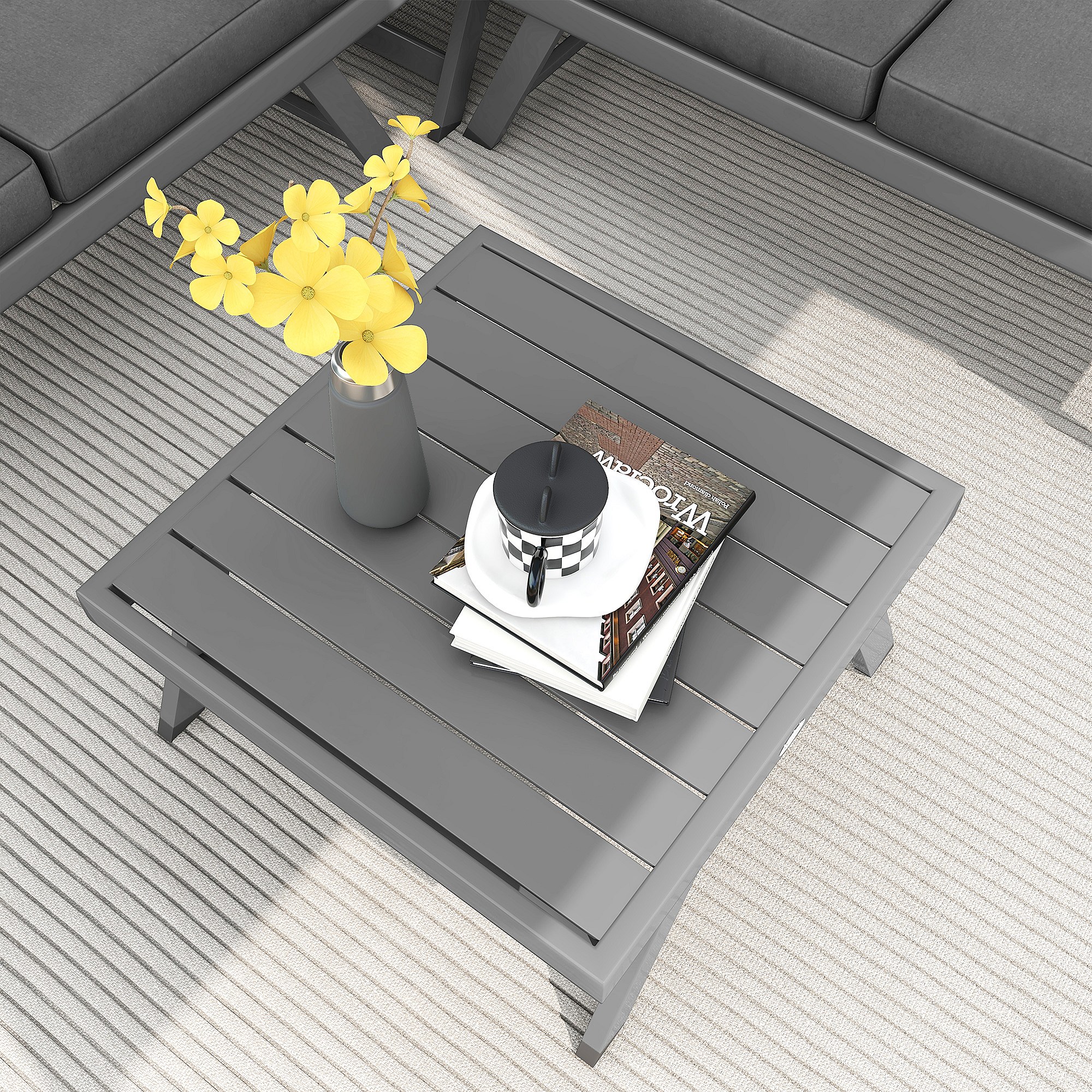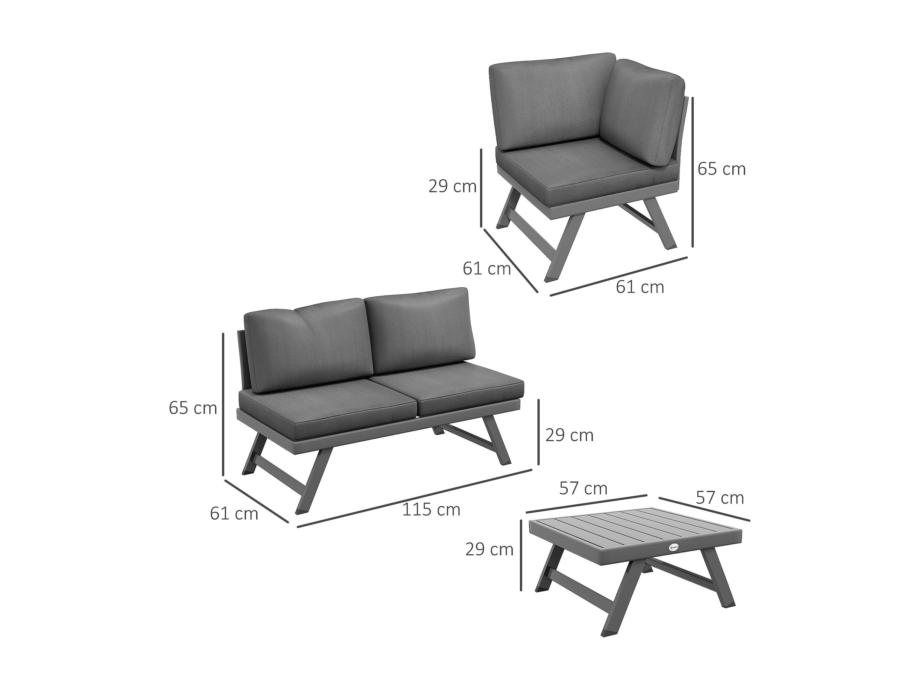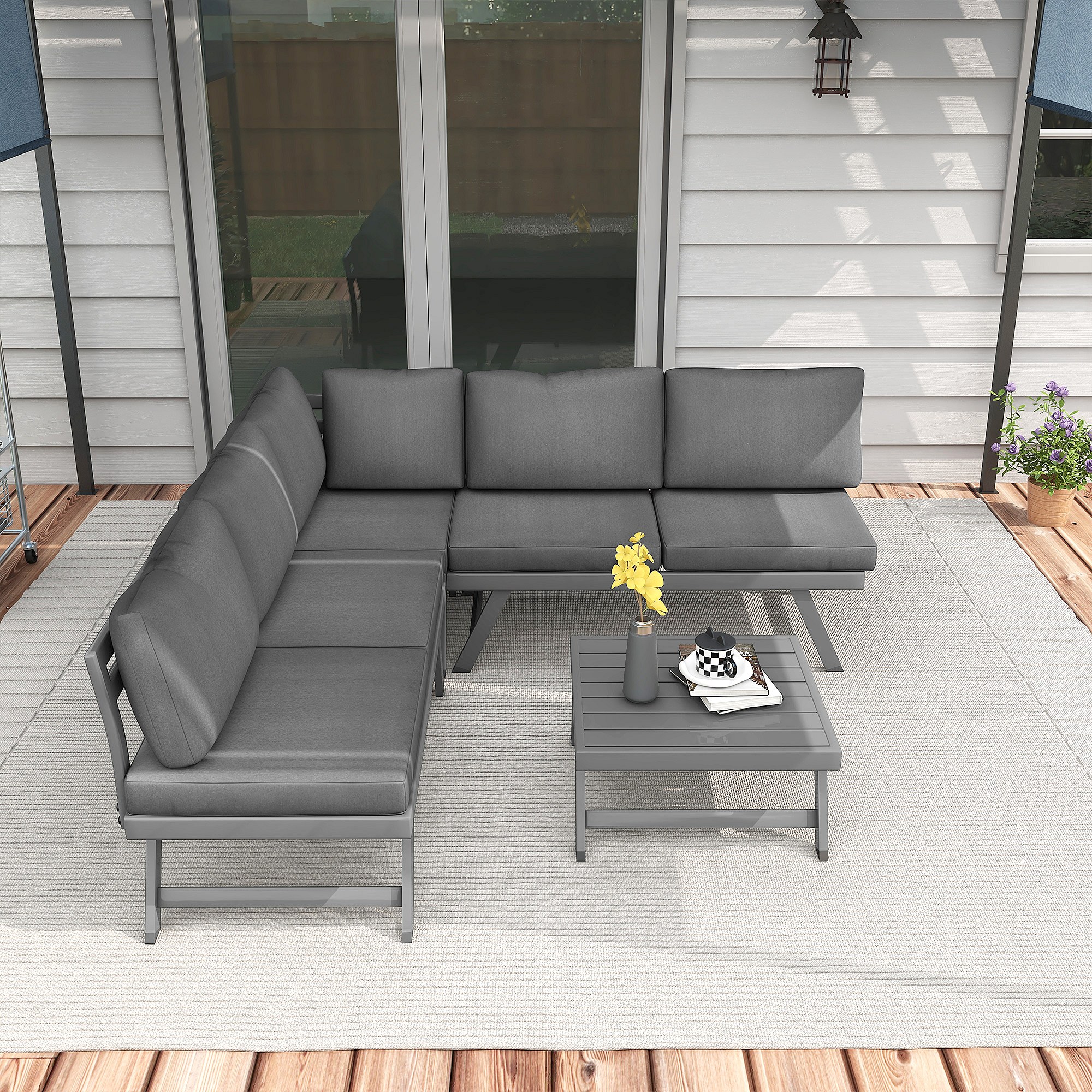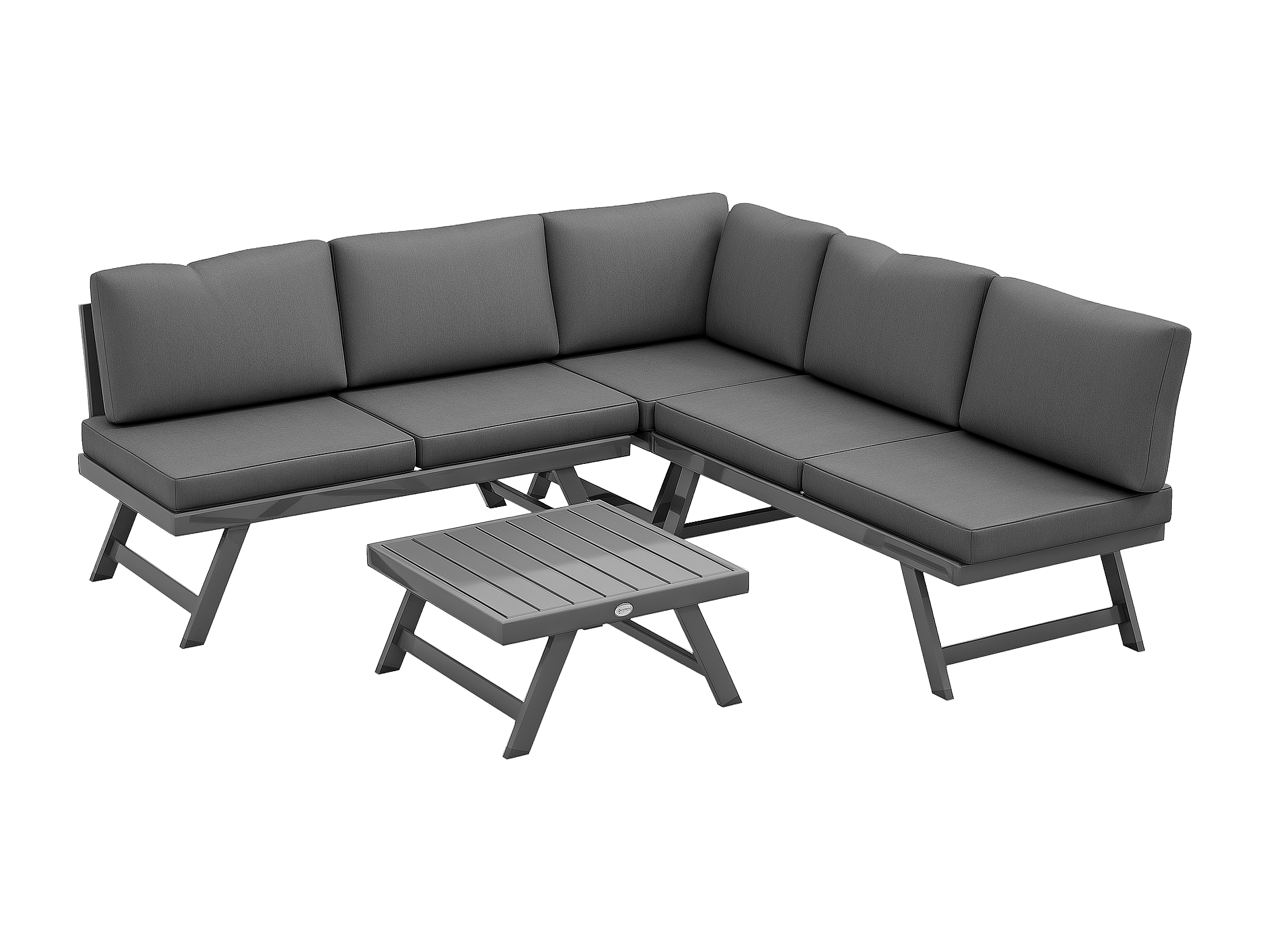 Ensemble salon de jardin d'angle 5 places style contemporain avec table basse coussins acier alu gris