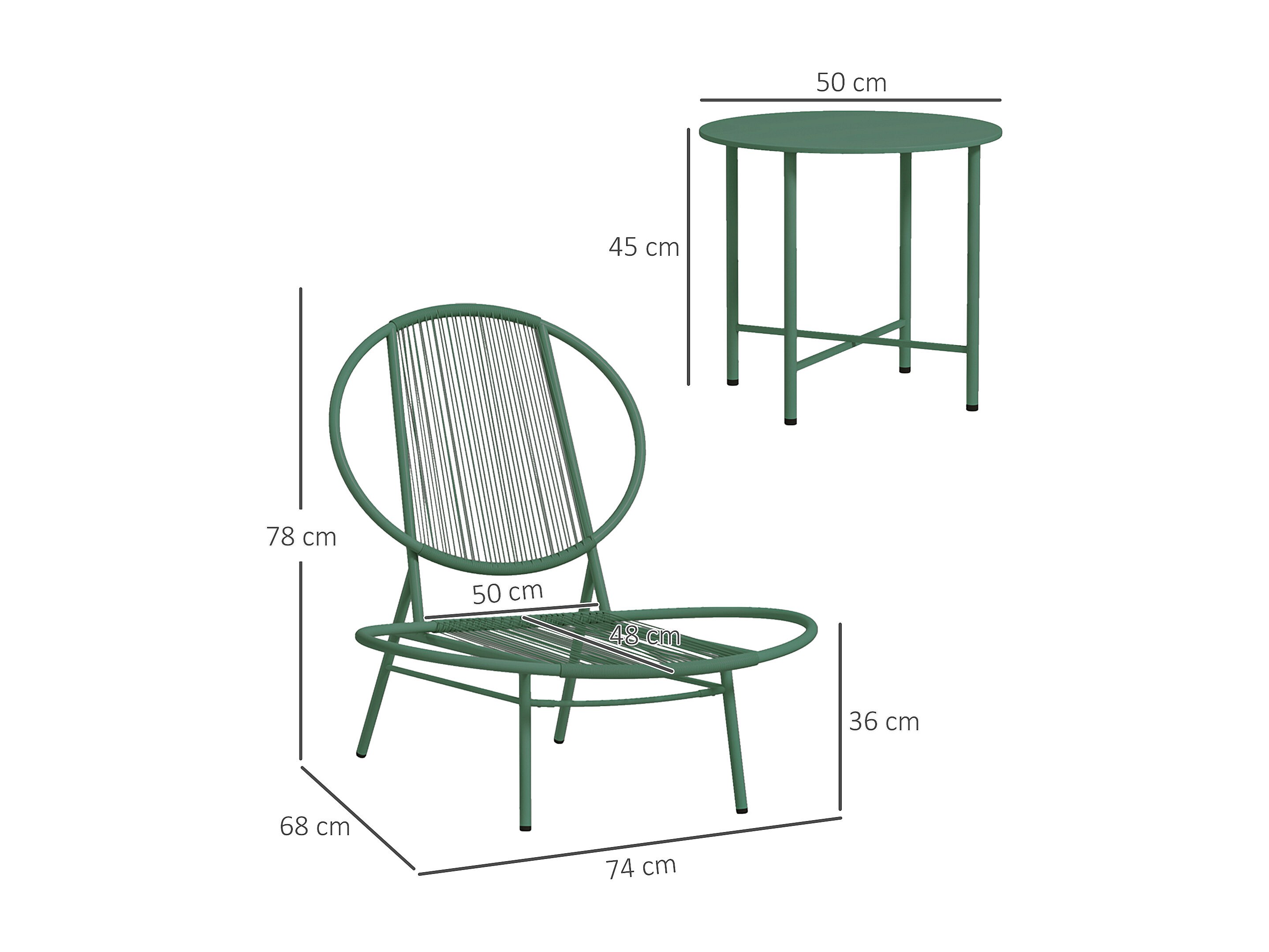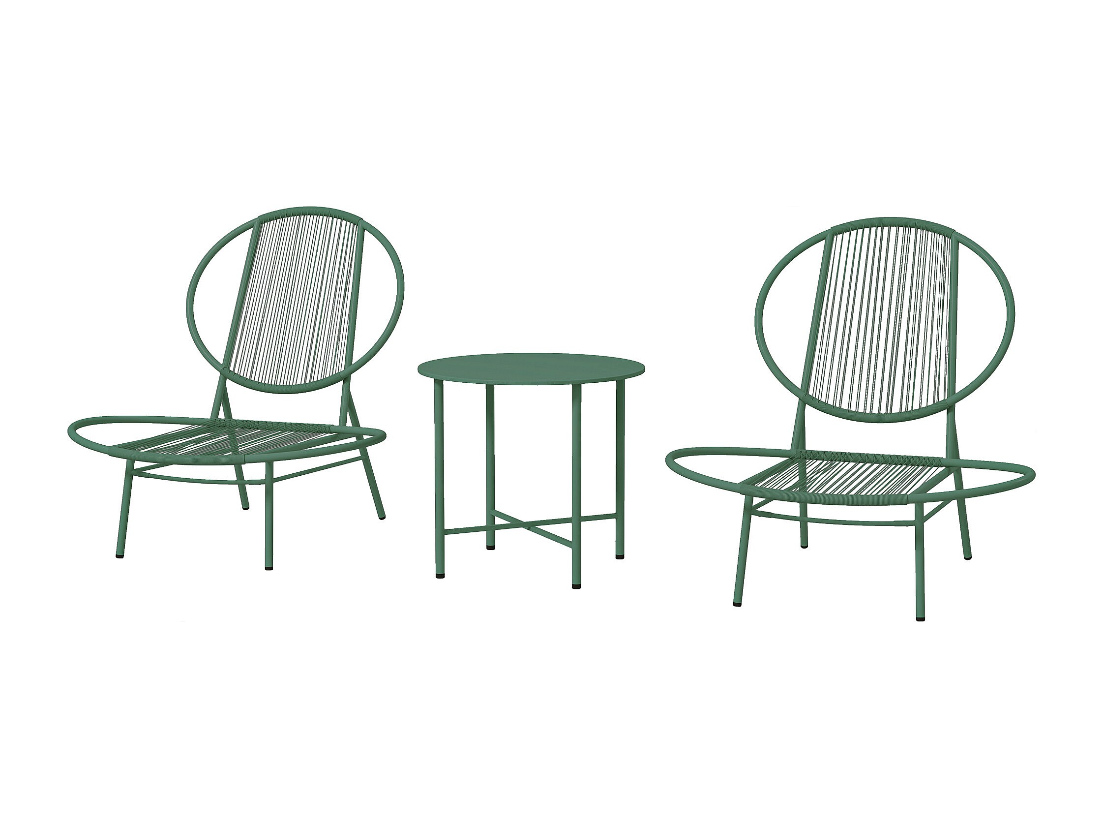 Ensemble salon de jardin design Acapulco 2 personnes 3 pièces acier PE filaire vert