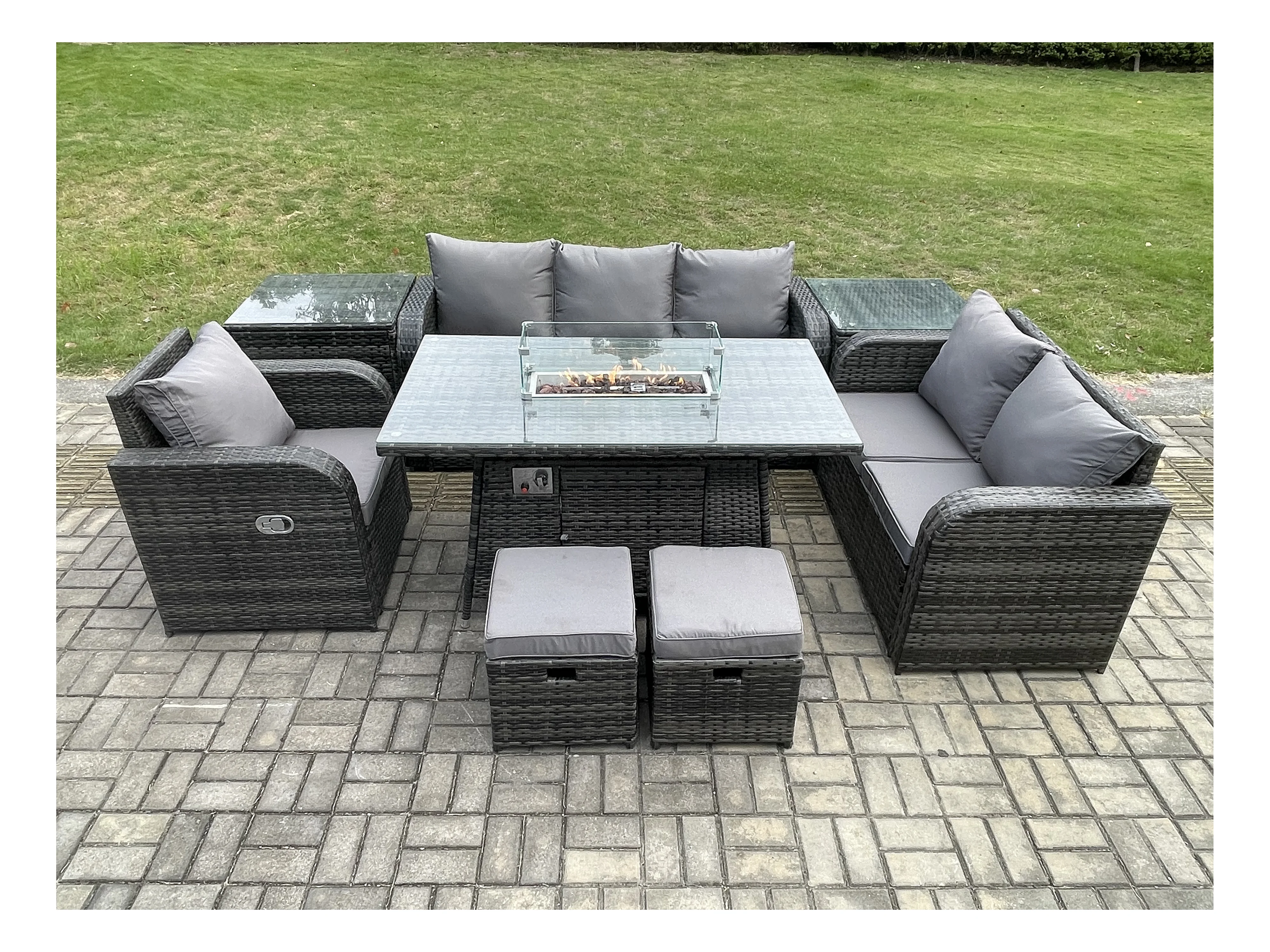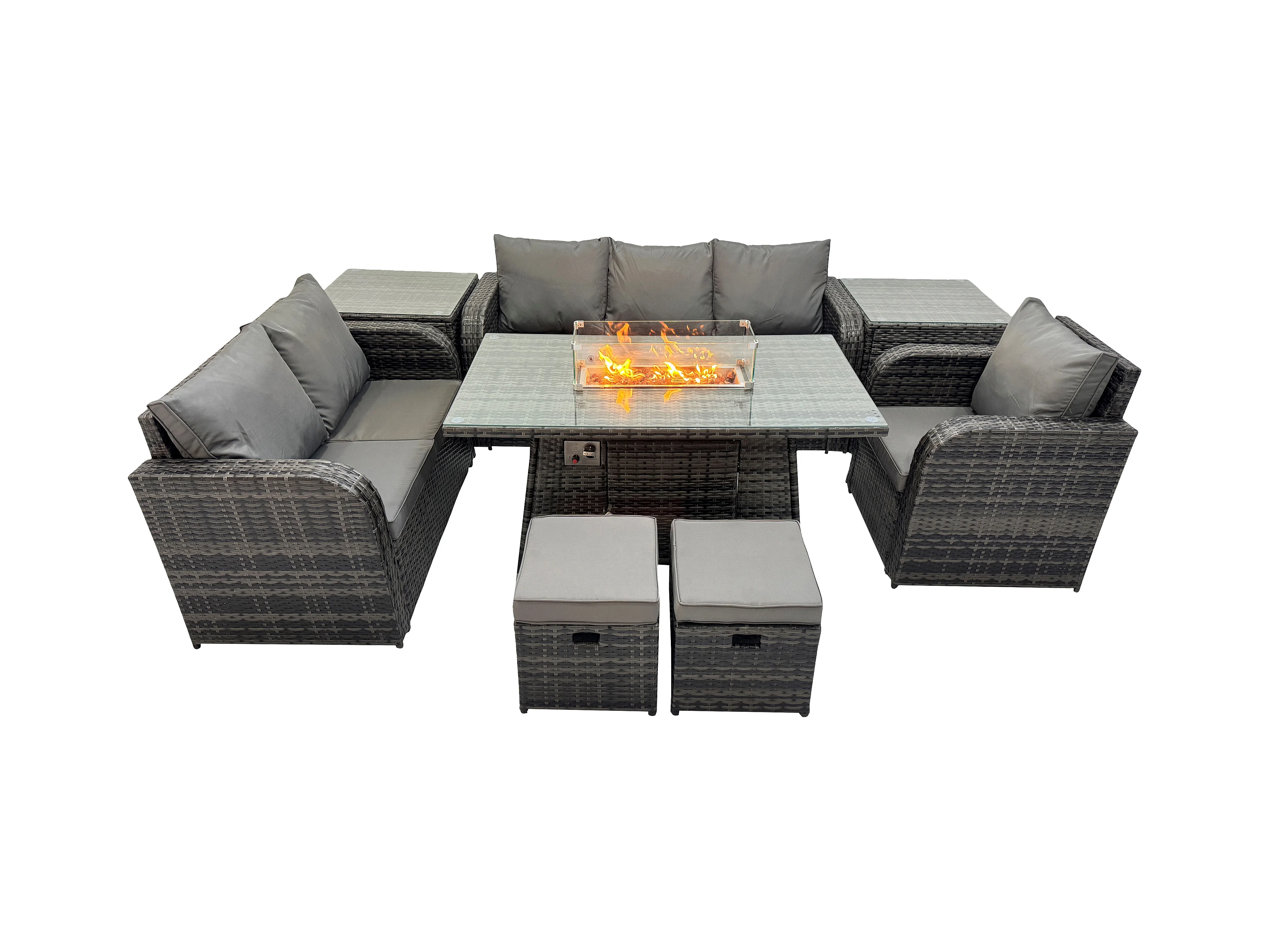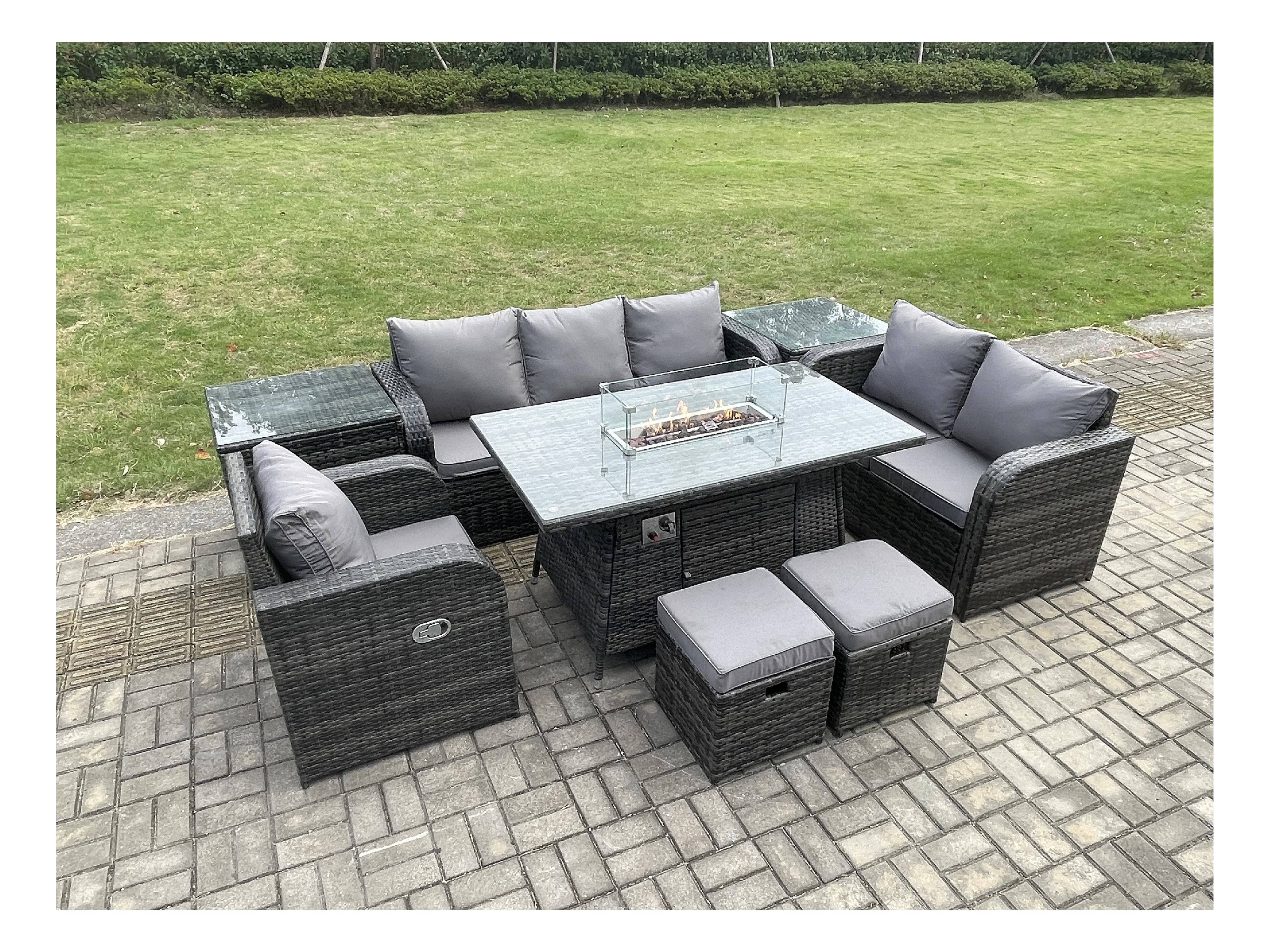 Ensemble Salon de Jardin Extérieur en polyrotin Table de foyer à gaz et Canapé Fauteuil avec 2 Tables d'appoint 2 Petits tabourets