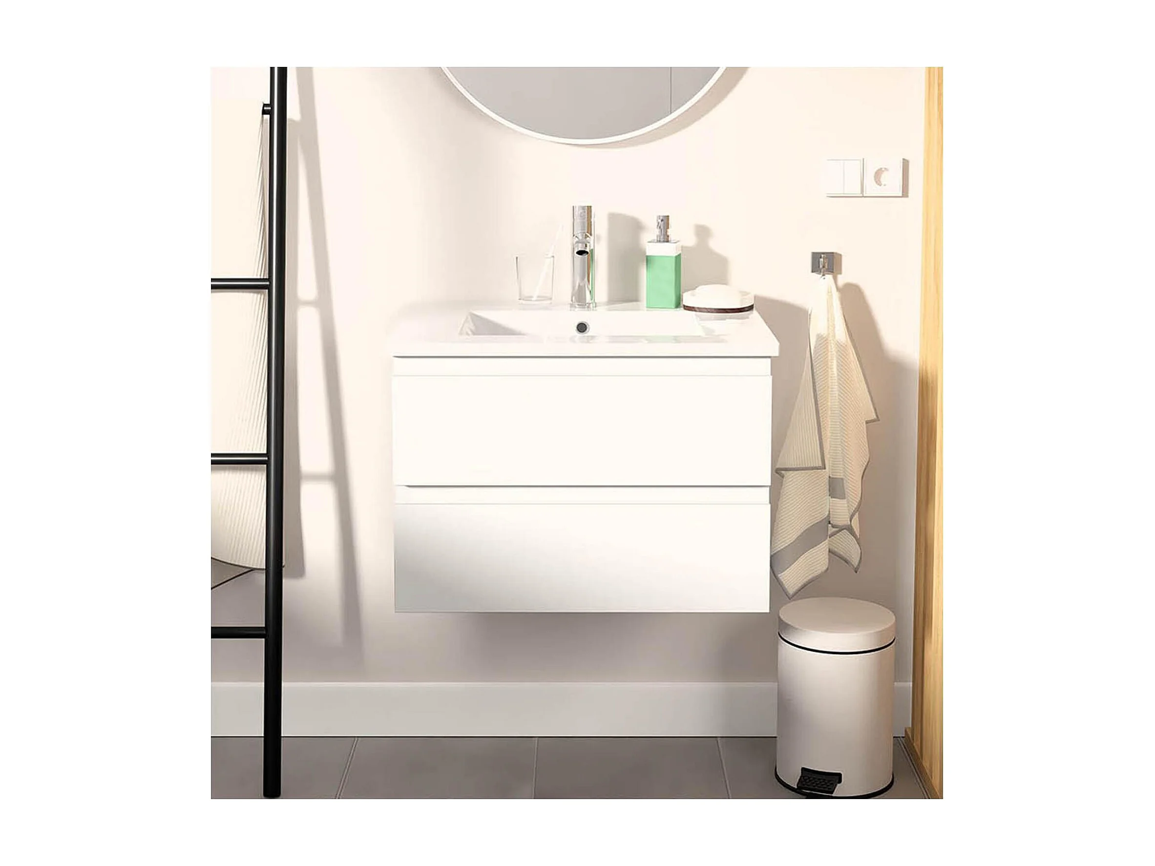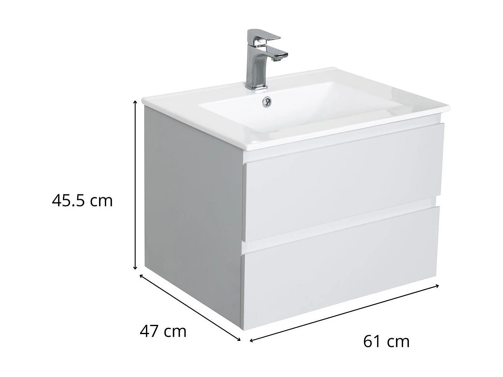 Ensemble simple vasque 60cm avec plan céramique et robinet chromé
