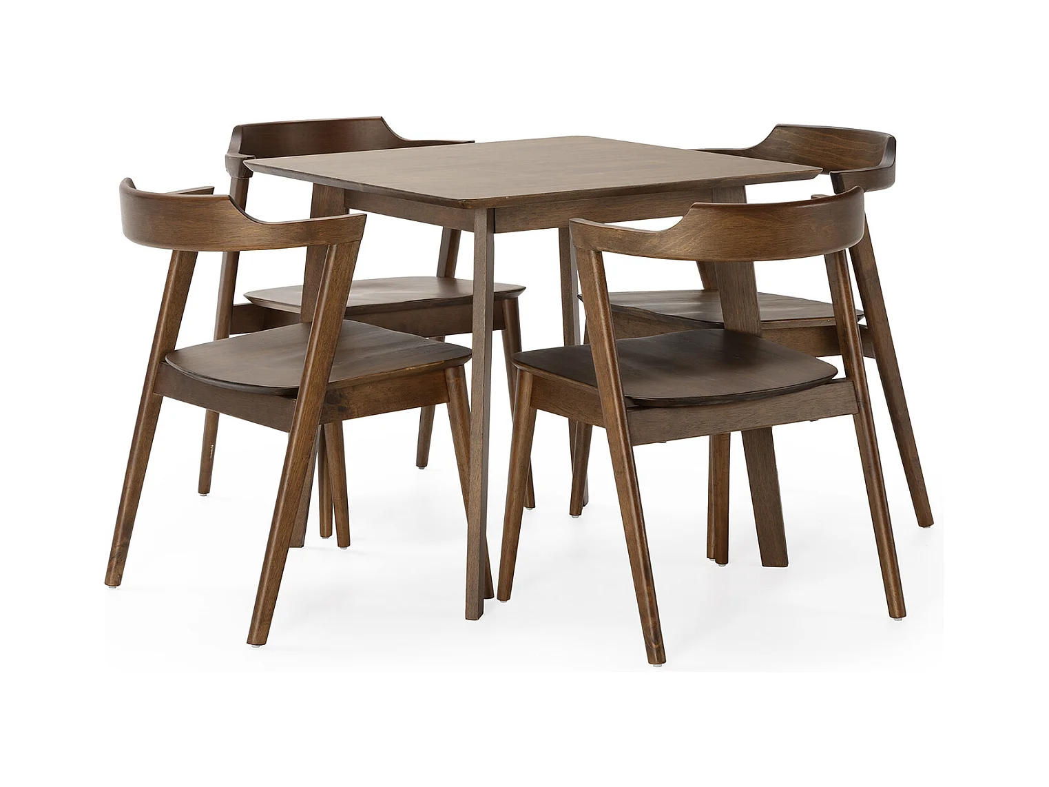 Ensemble table 80x80 cm et 4 chaises de salle à manger Venus Noyer