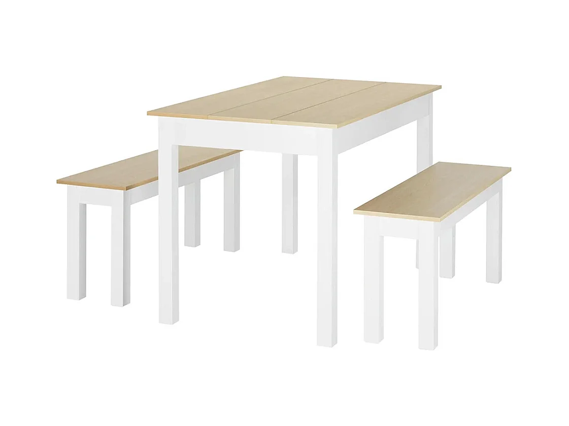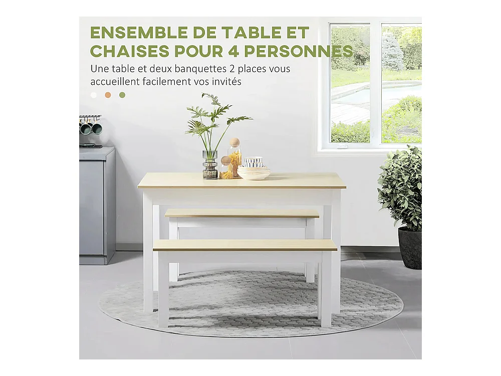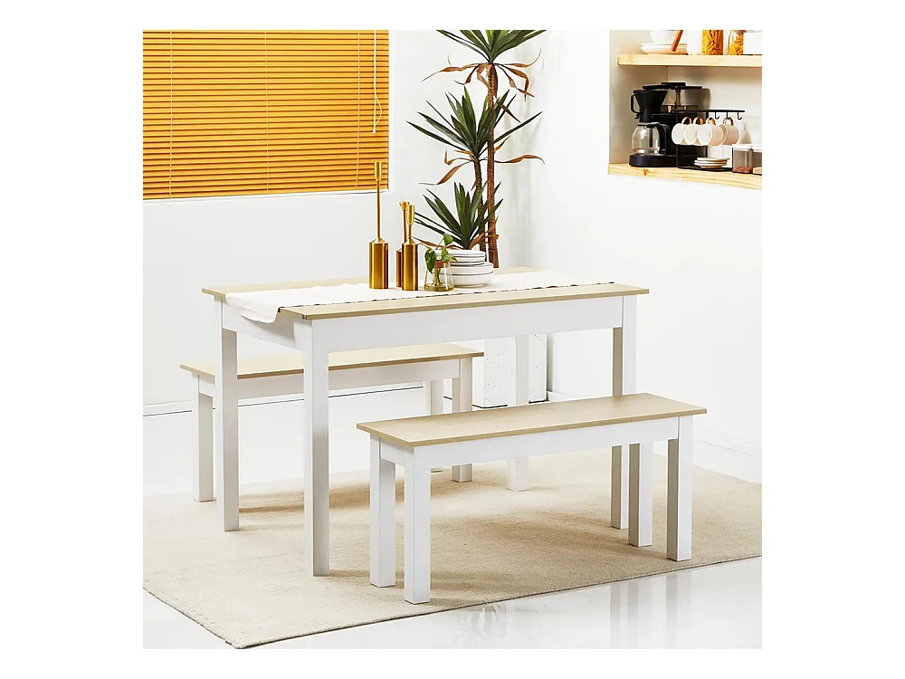Ensemble table à manger 3 pièces avec 2 bancs encastrables pour 4-6 personnes style contemporain panneaux de particules