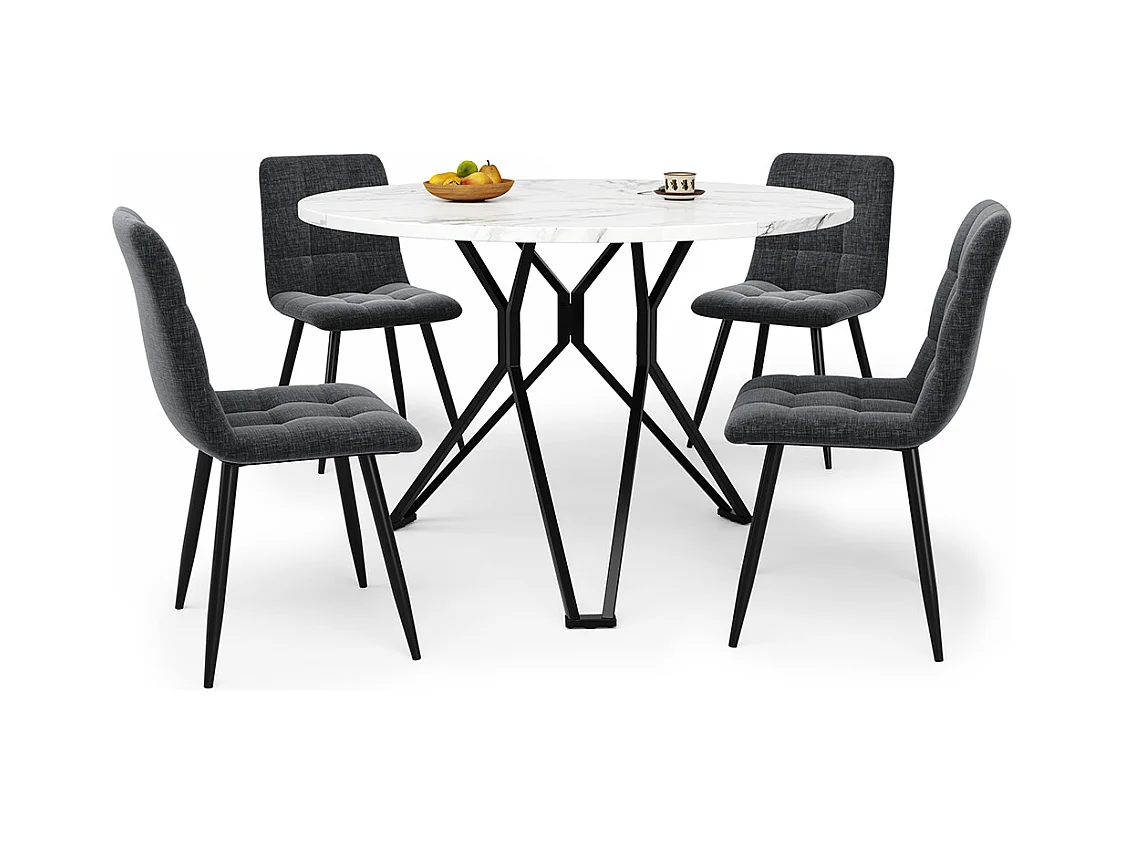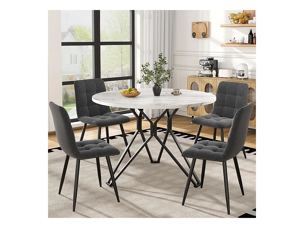 Ensemble table à manger 5 pièces 4 chaises moderne table ronde 100cm pieds noir plateau marbre MDF chaises velours gris