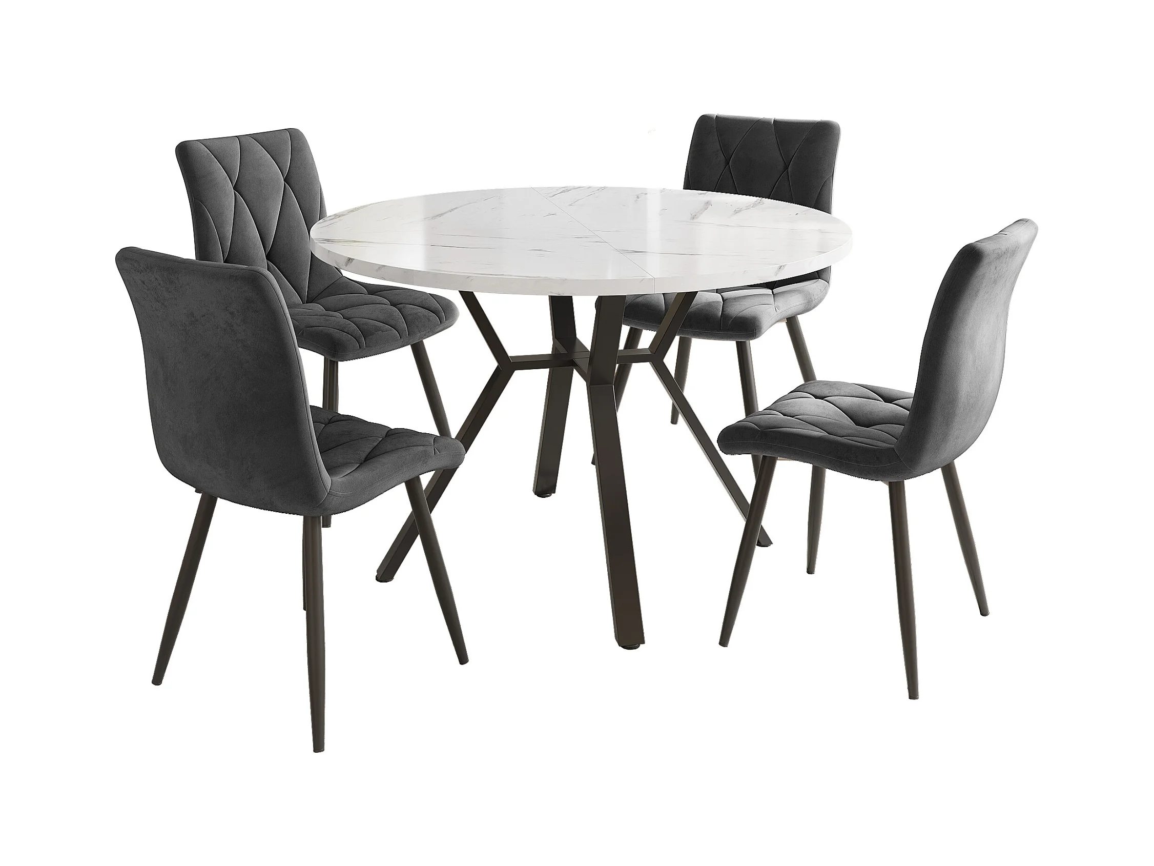 Ensemble table a manger ronde 100x100x75 cm + 4 chaises en velours gris - pieds en métal noir