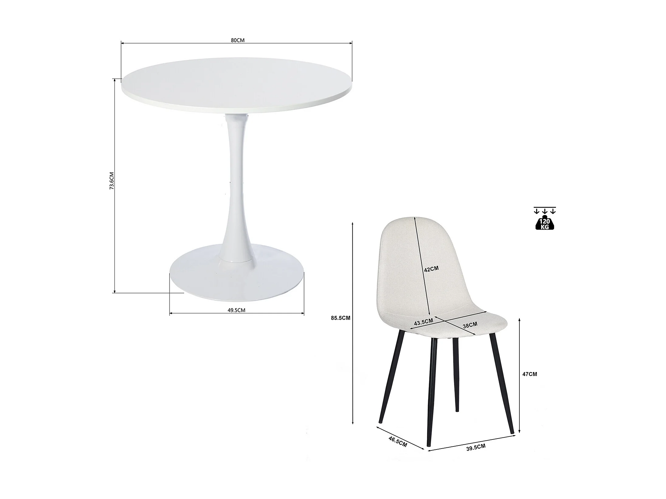 Ensemble table à manger ronde avec 4 chaises CHARLTON