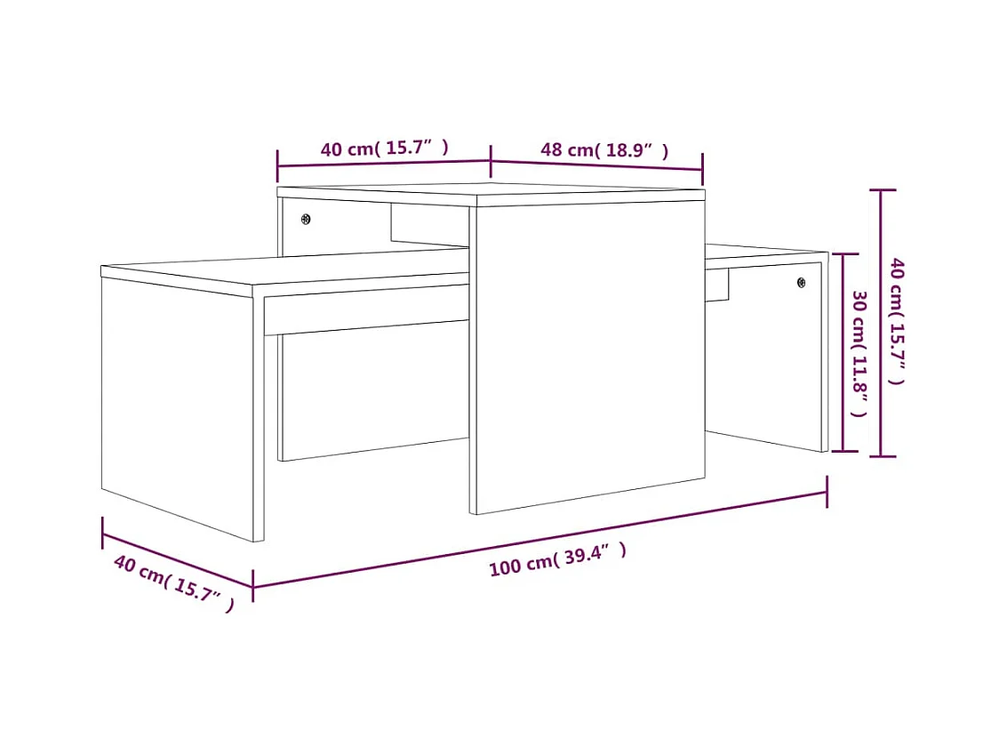 Ensemble table basse Chêne fumé 100x48x40 cm Bois d'ingénierie SHL50619