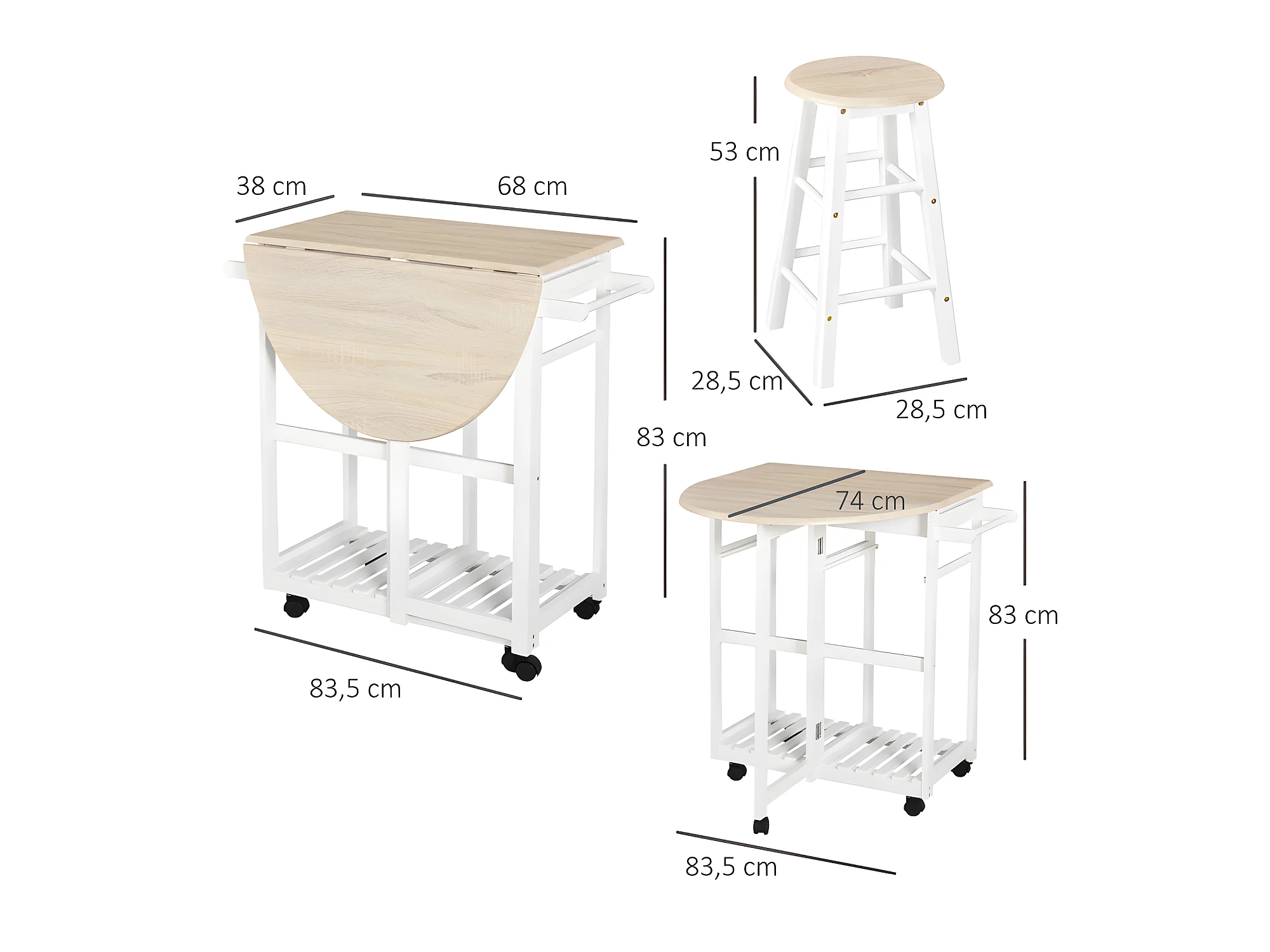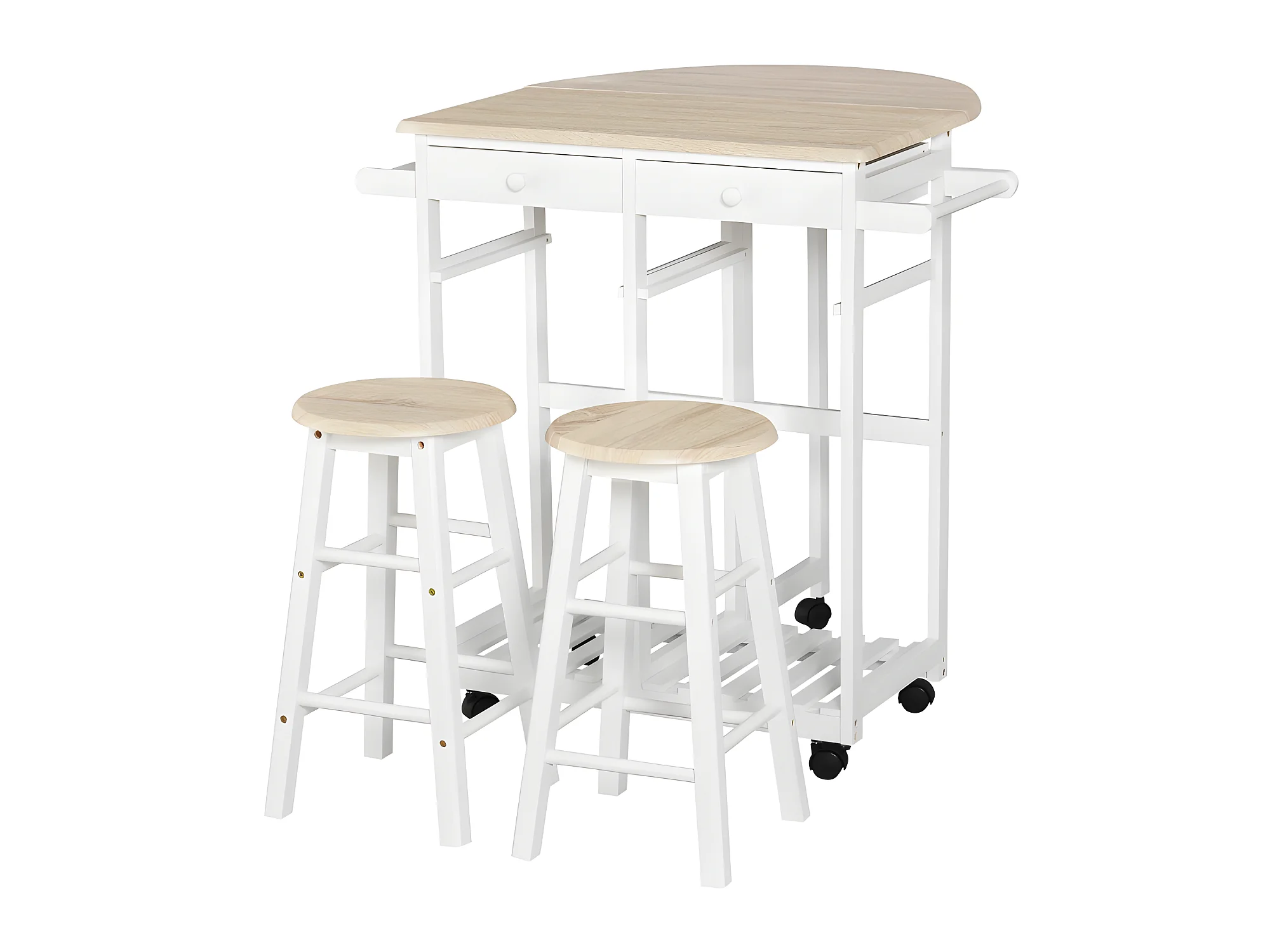 Ensemble table de bar et 2 tabourets GLASGOW blanc et bois