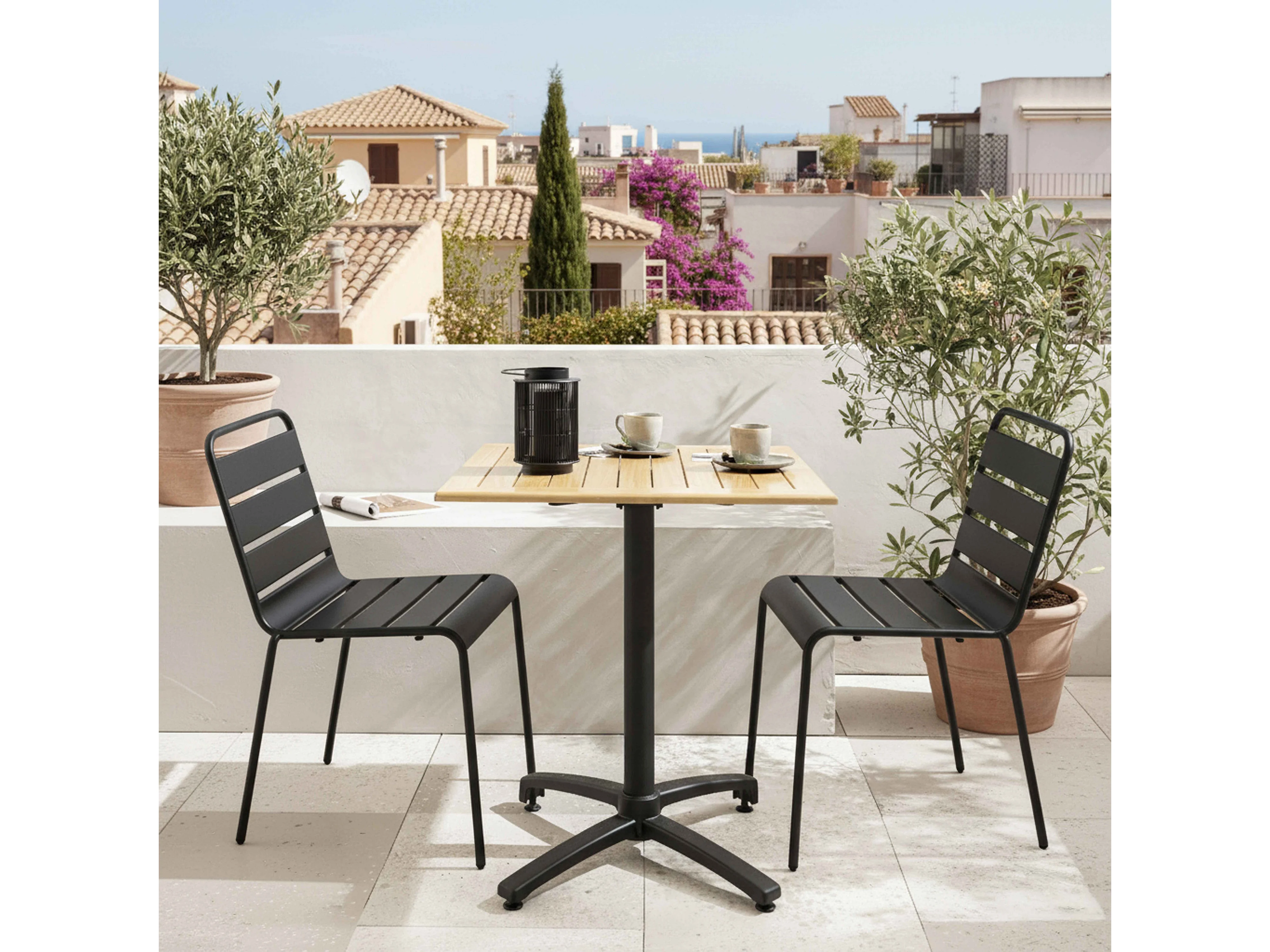 Ensemble table de jardin en bois et 2 chaises en métal gris