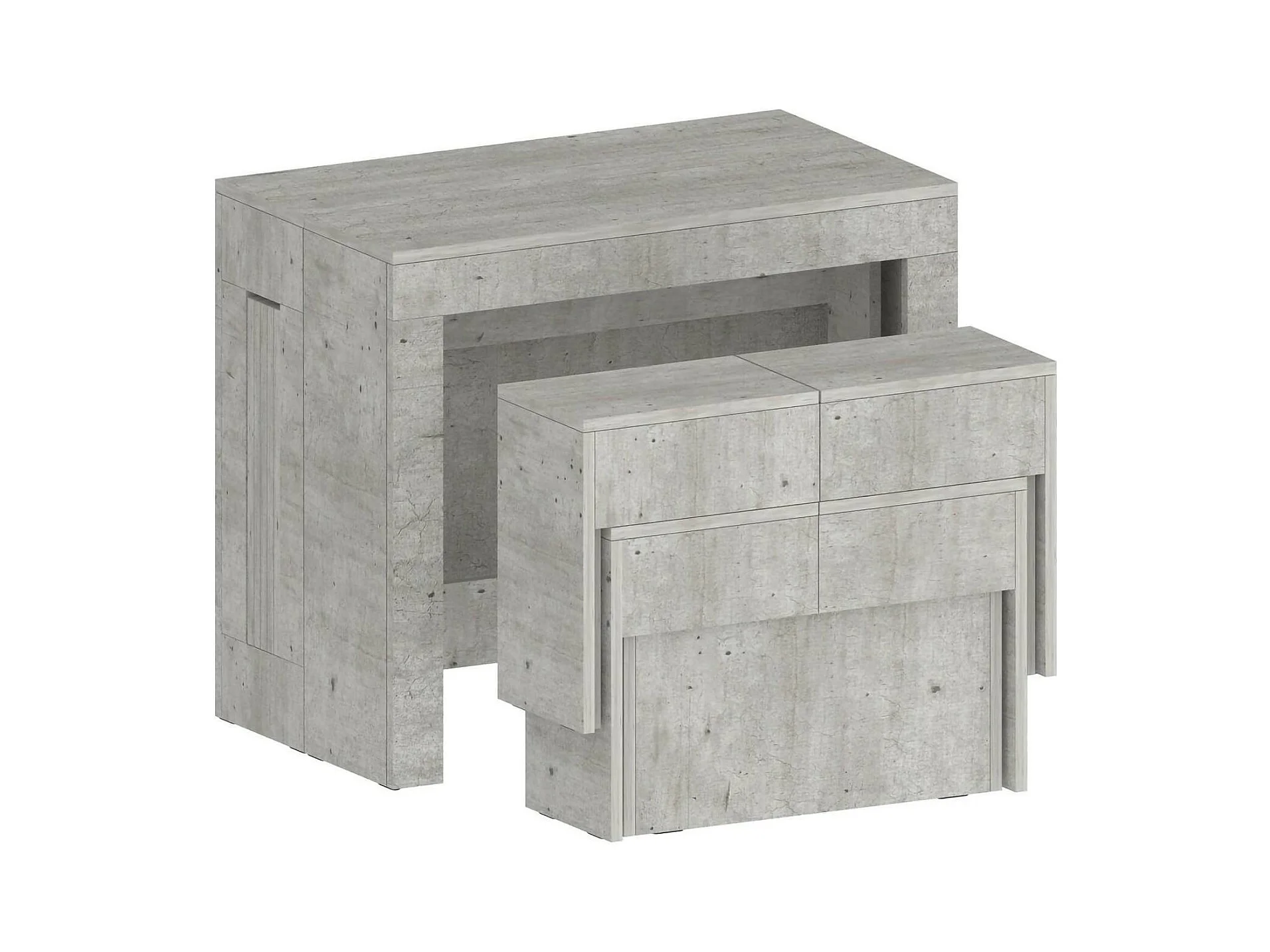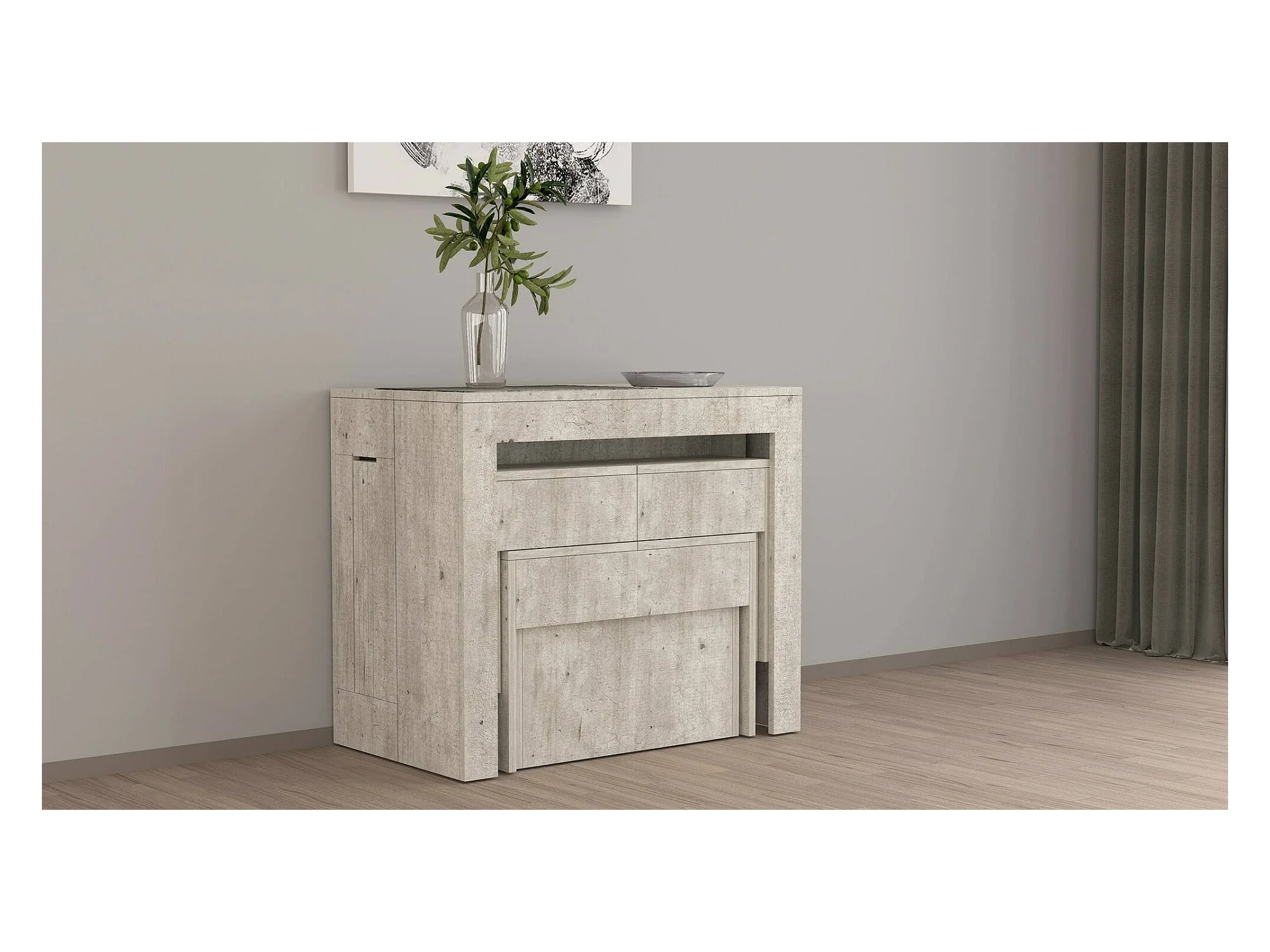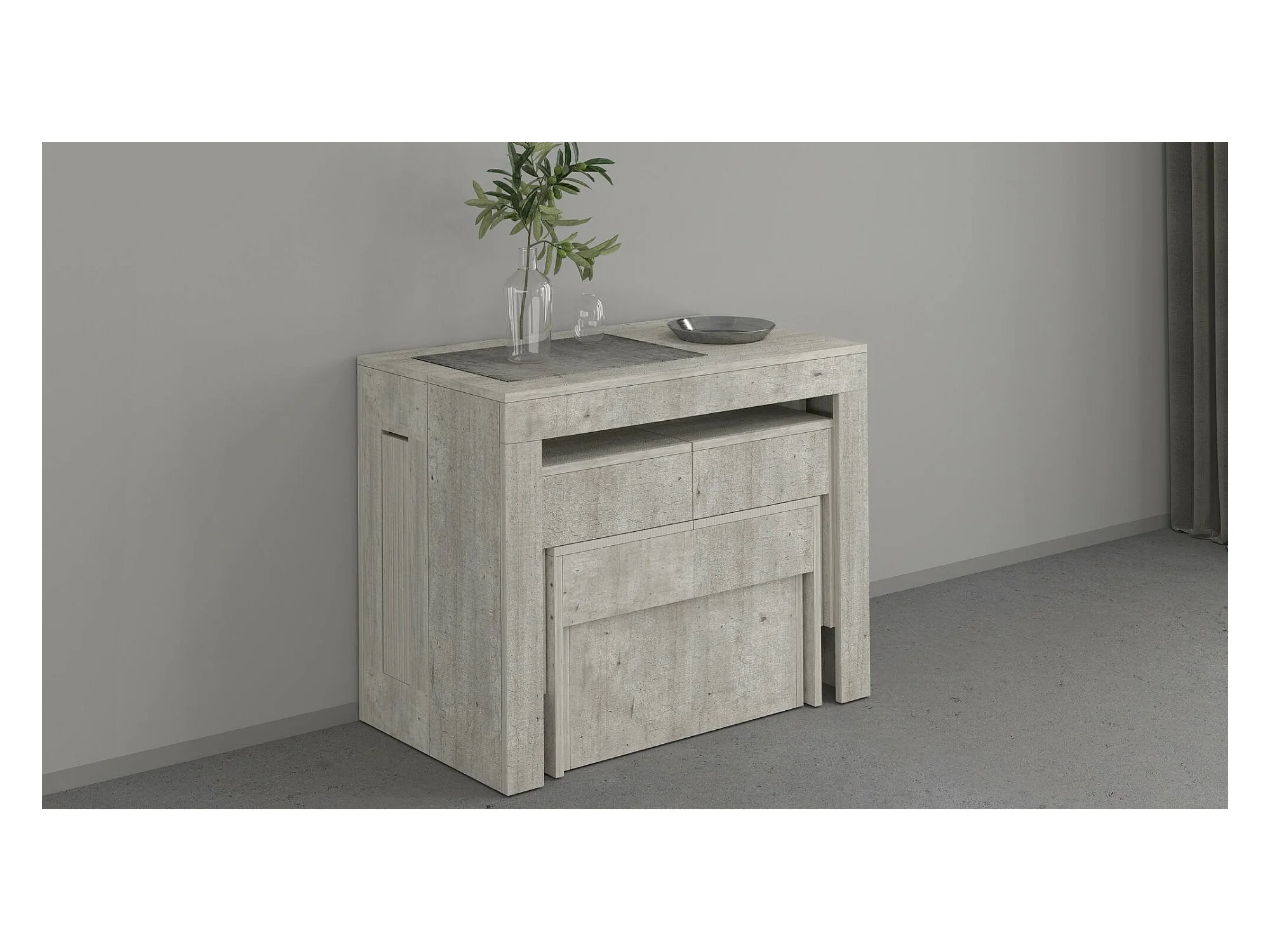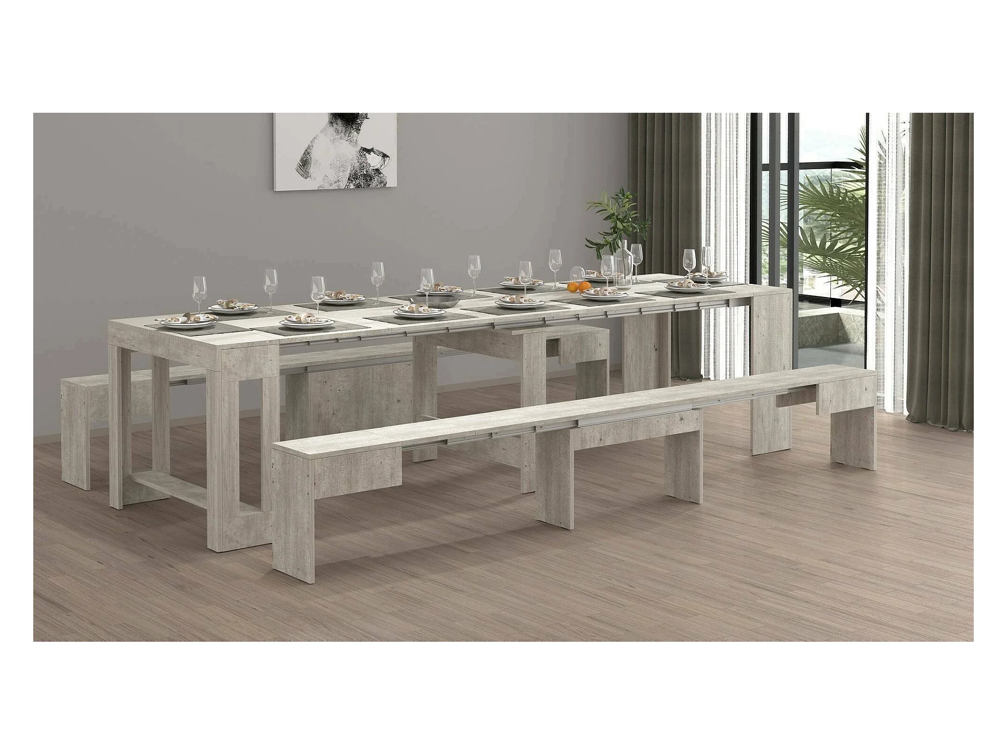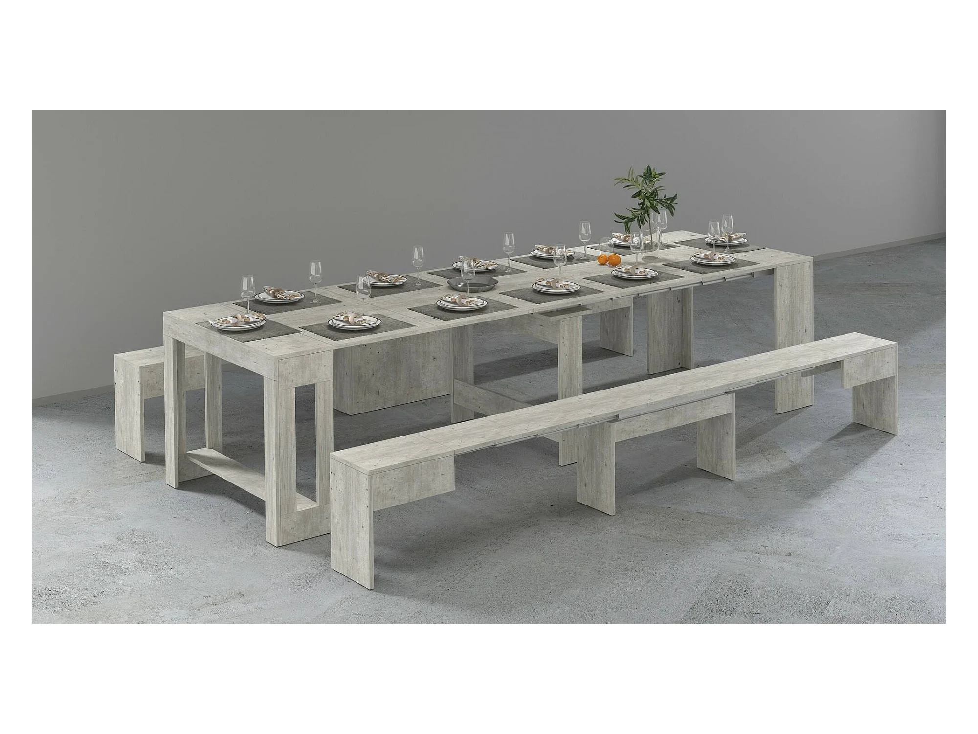 Ensemble table et chaises Dadamoni, Composition polyvalente, Ensemble avec console et 2 bancs extensibles, 100% Made in Italy, 66x25h45 cm, Ciment