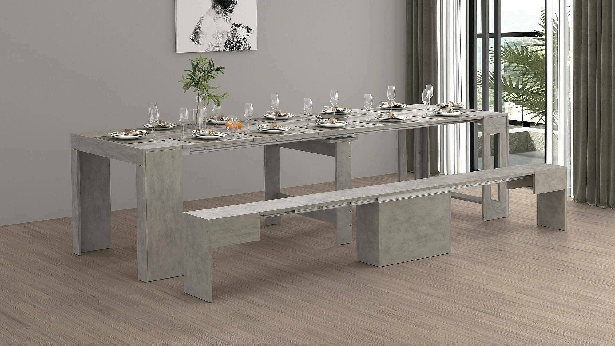 Ensemble table et chaises Dardizzon, Composition polyvalente, Ensemble avec console et 1 banc extensible, 100% Made in Italy, 66x25h45 cm, Gris