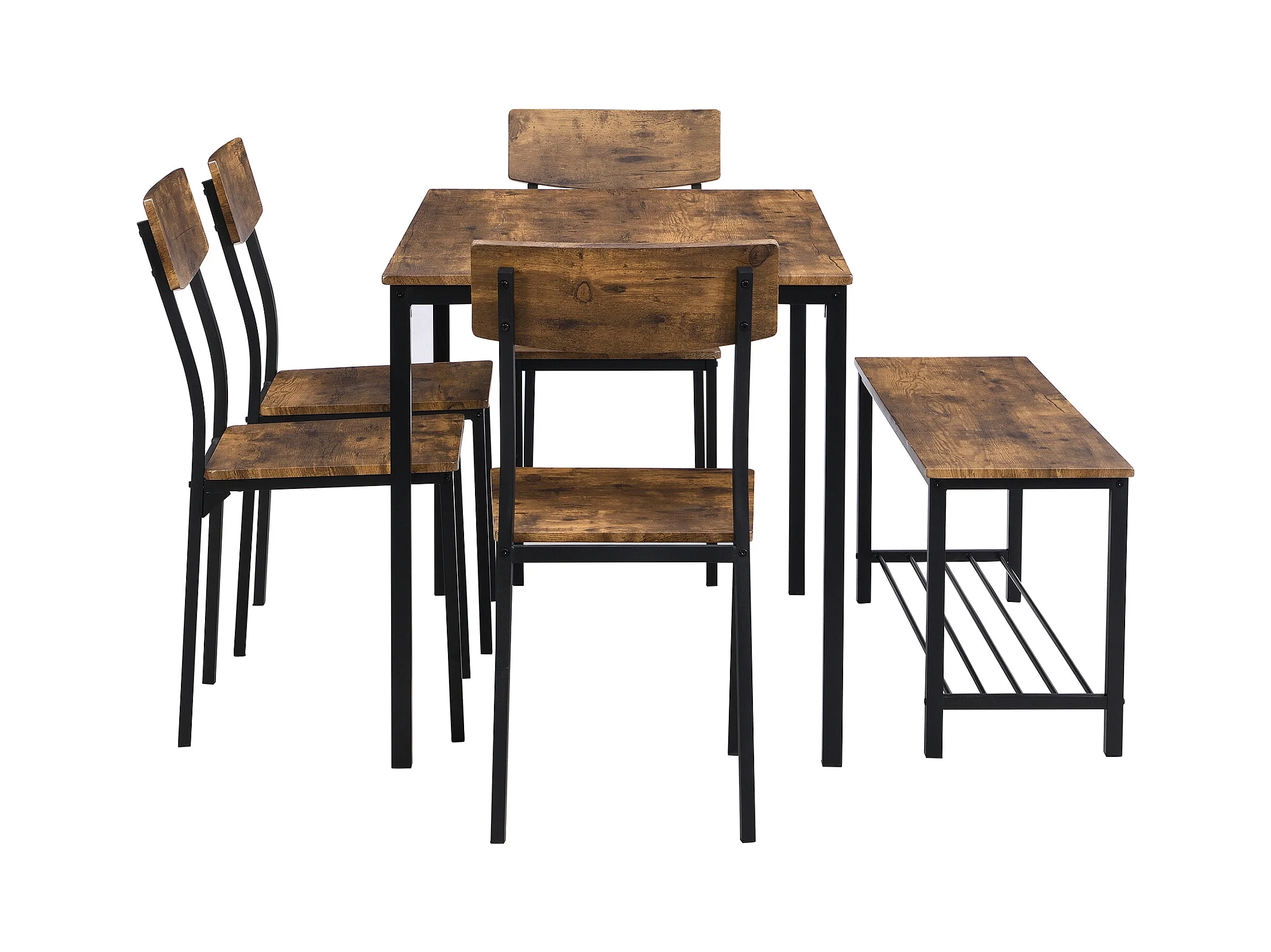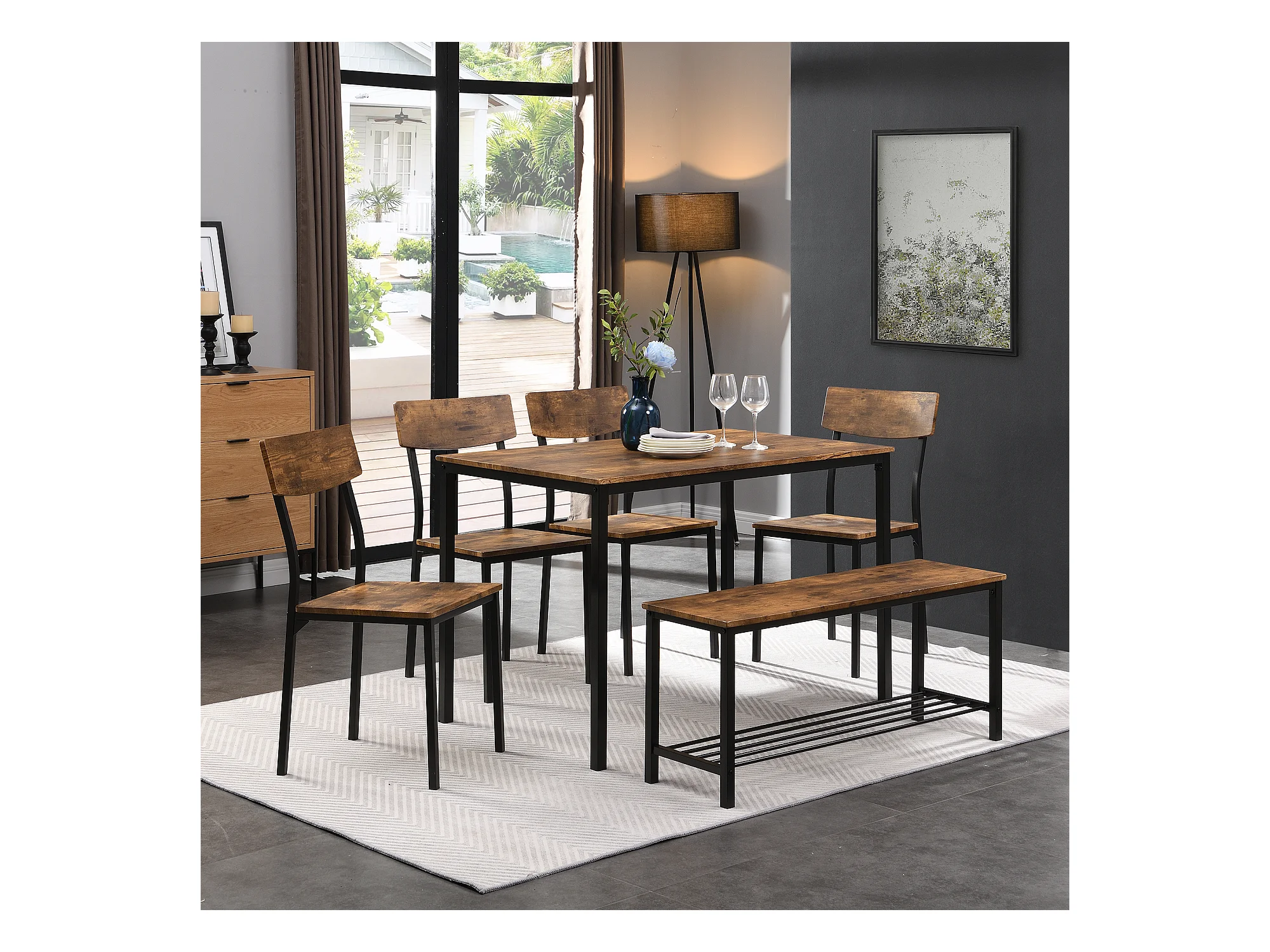 Ensemble table Rectangle et 4 chaises,1 banc, cadre en métal, marron