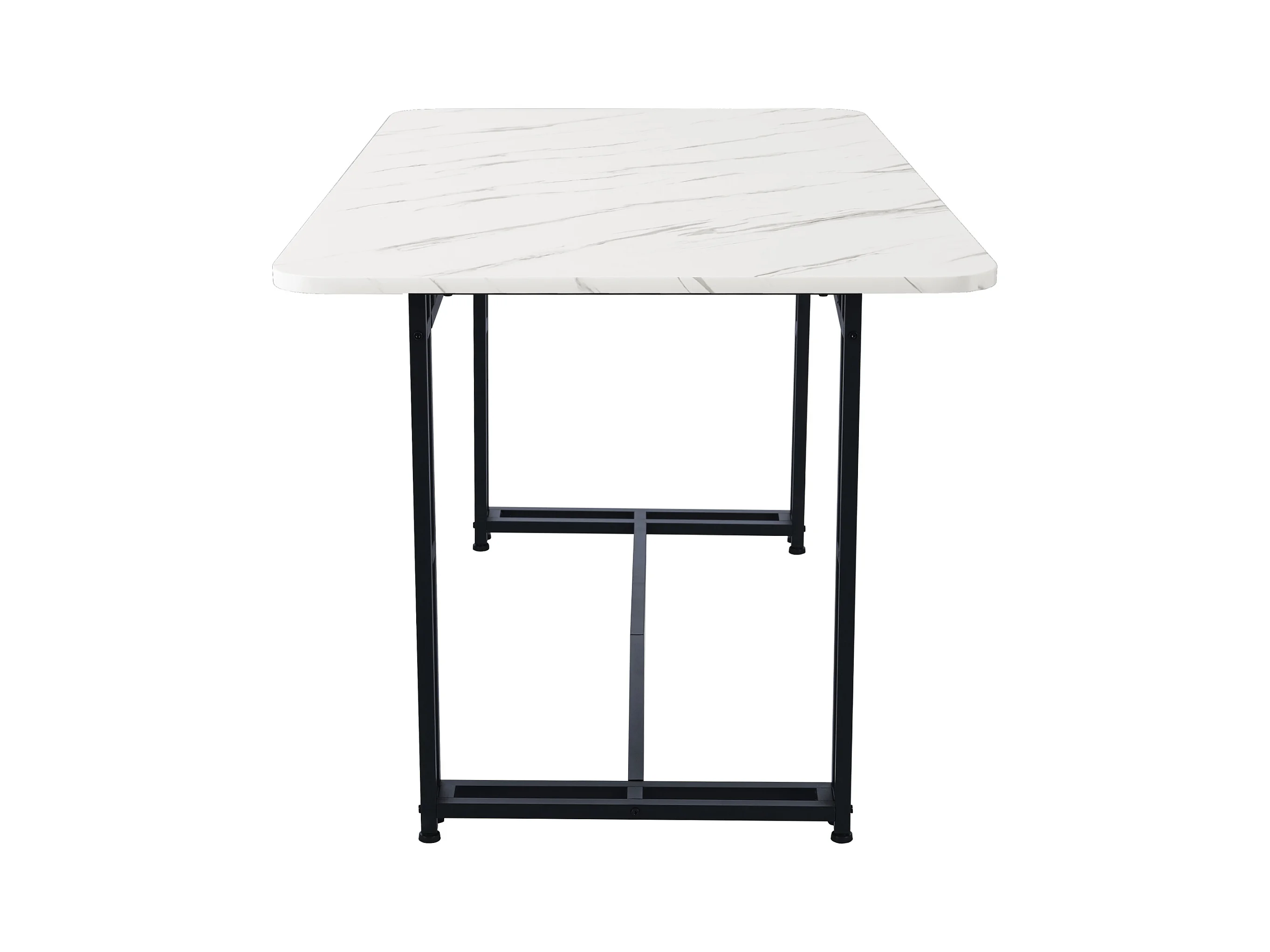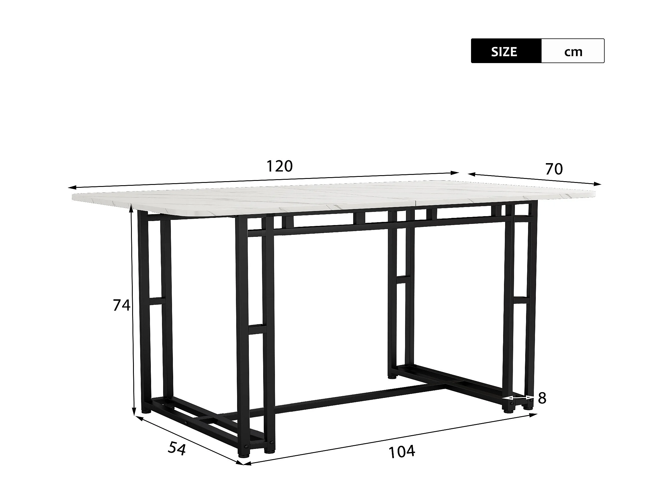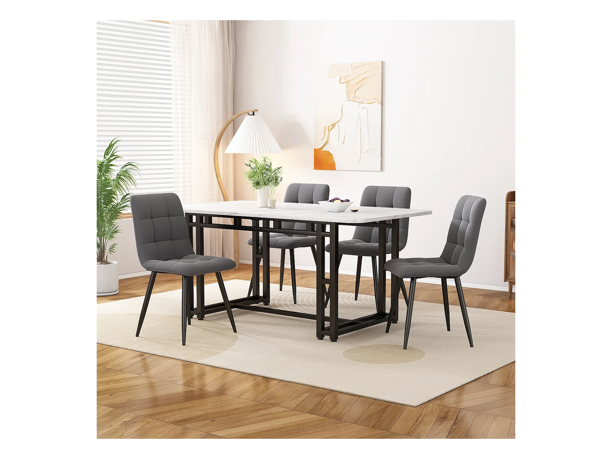 Ensemble table rectangulaire 120x70 cm et 4 chaises velours gris foncé - pieds de table en métal noir - plateau en MDF blanc
