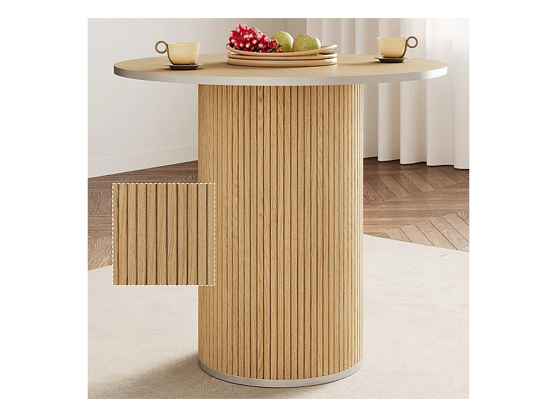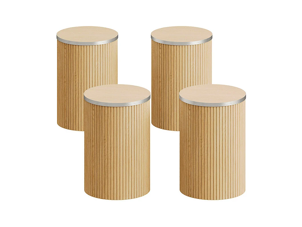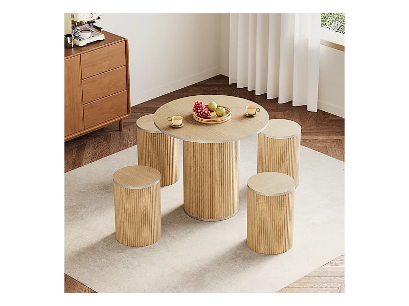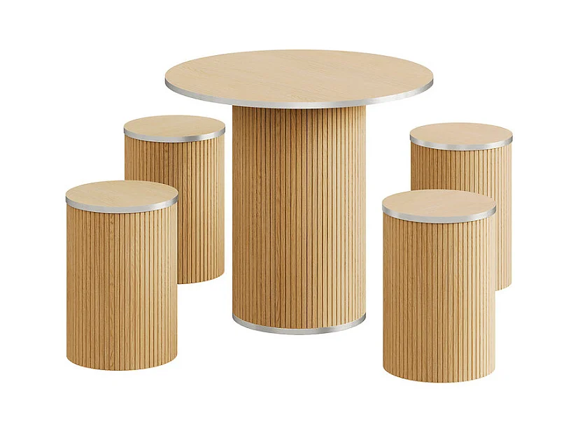 Ensemble Table ronde avec 4 tabourets - placage chêne - charge max 272 kg - Naturel clair