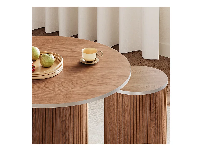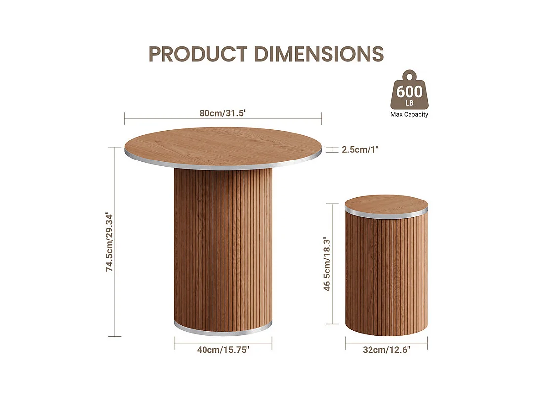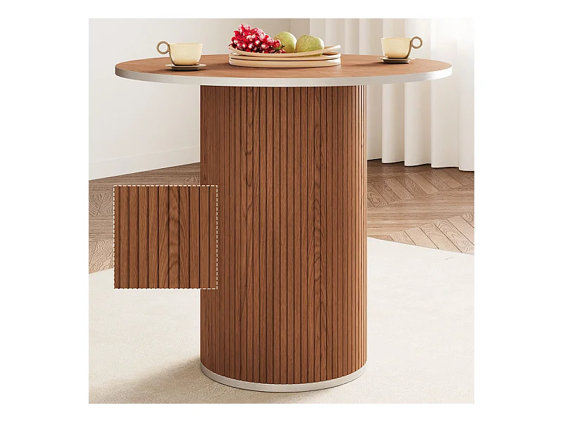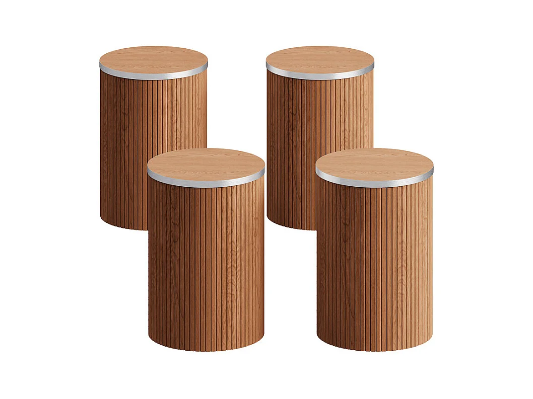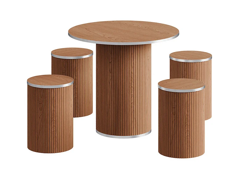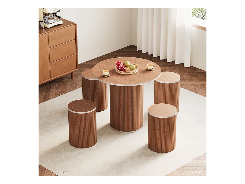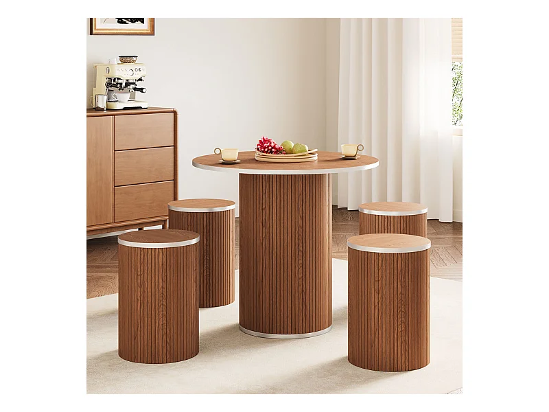 Ensemble Table ronde avec 4 tabourets - placage noyer - charge max 272 kg - Marron Chocolat