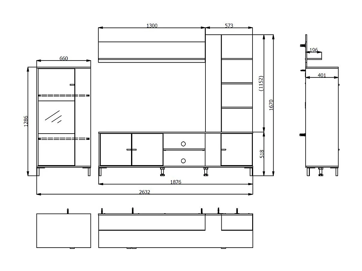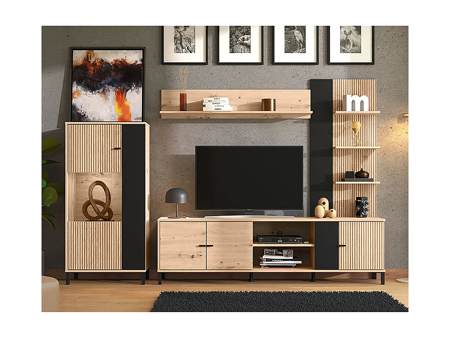 Ensemble TV avec vitrine, meuble TV et étagère couleur Chêne artisan / Noir - Longueur 263 x profondeur 40 x hauteur 167 cm