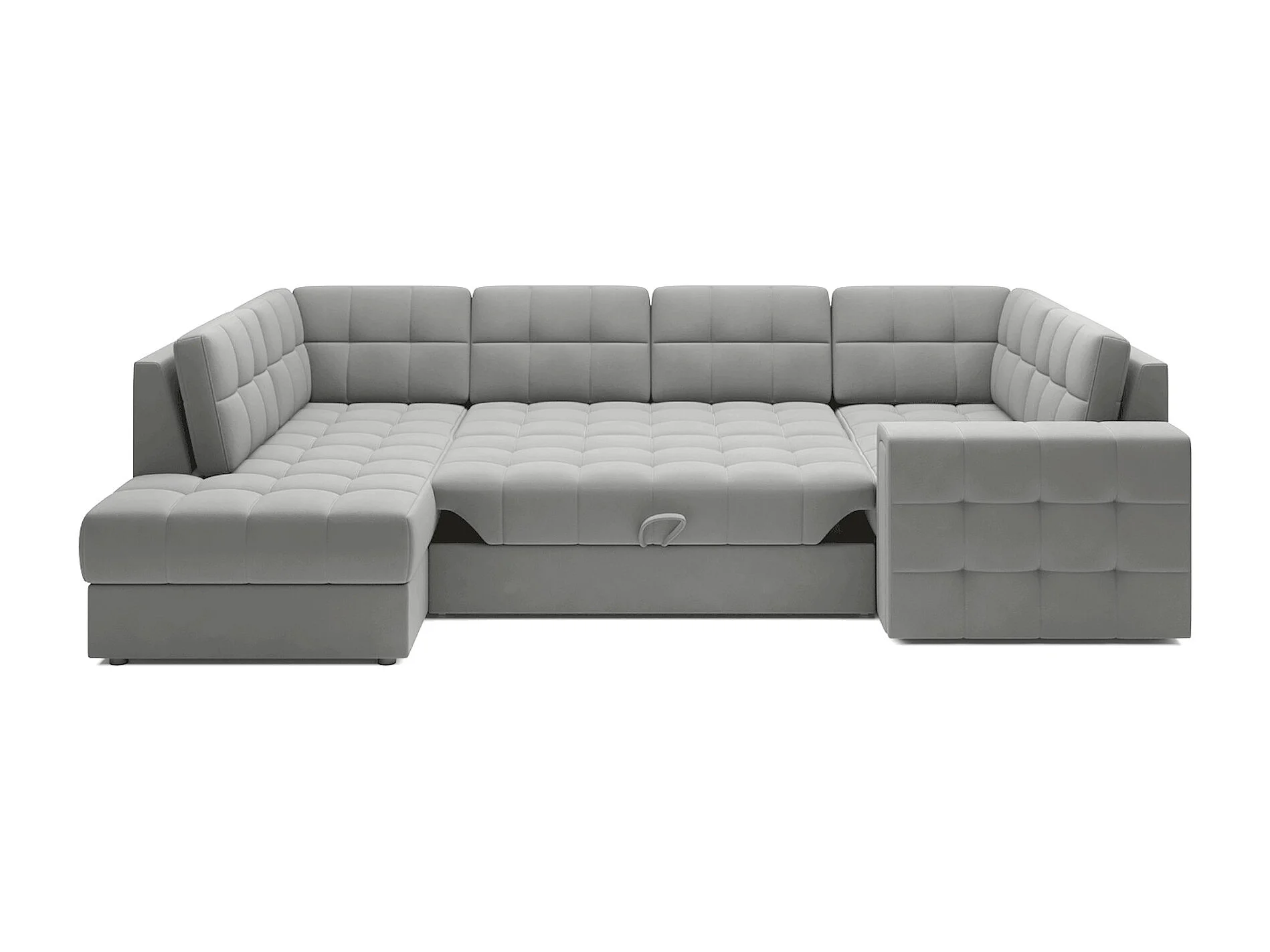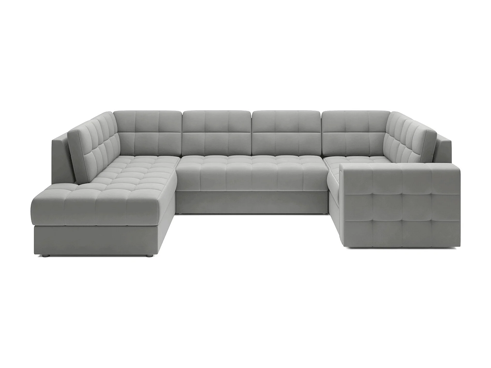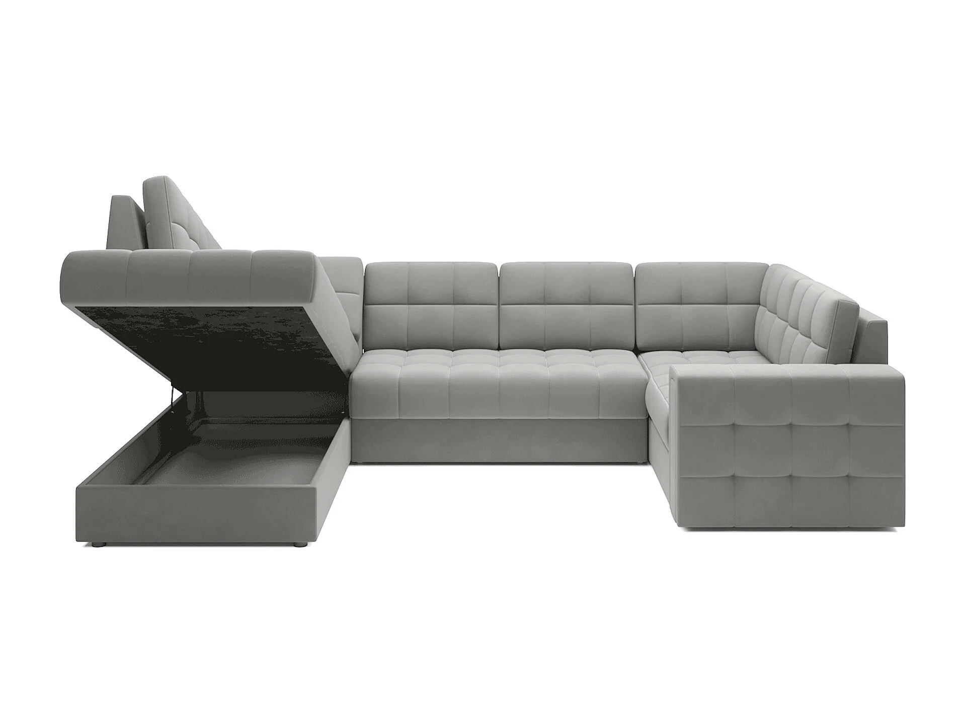 Canapé panoramique BLOOM velours capitonné - Rangement et convertible-Gris souris-Coffre de rangement à gauche