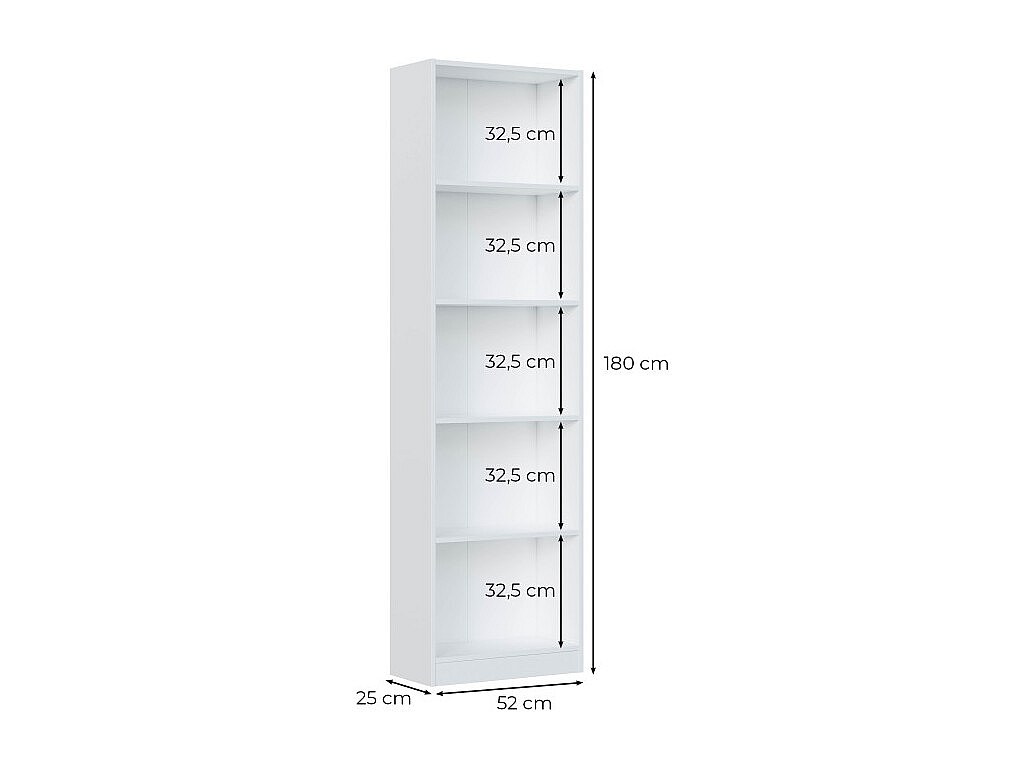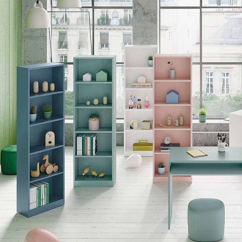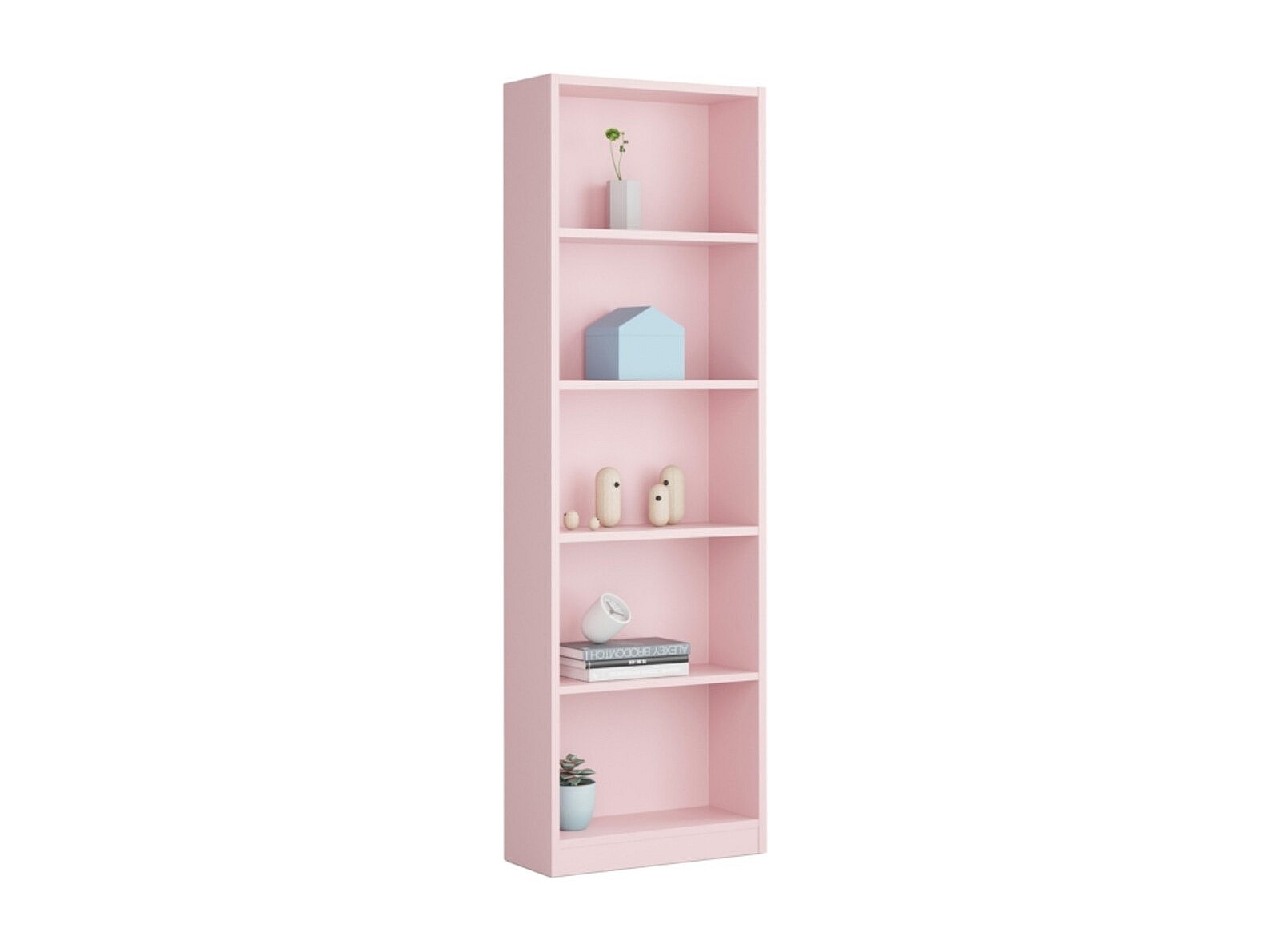 Bibliothèque avec 5 étagères couleur rose - Longueur 52 x Hauteur 180 x Profondeur 25 cm