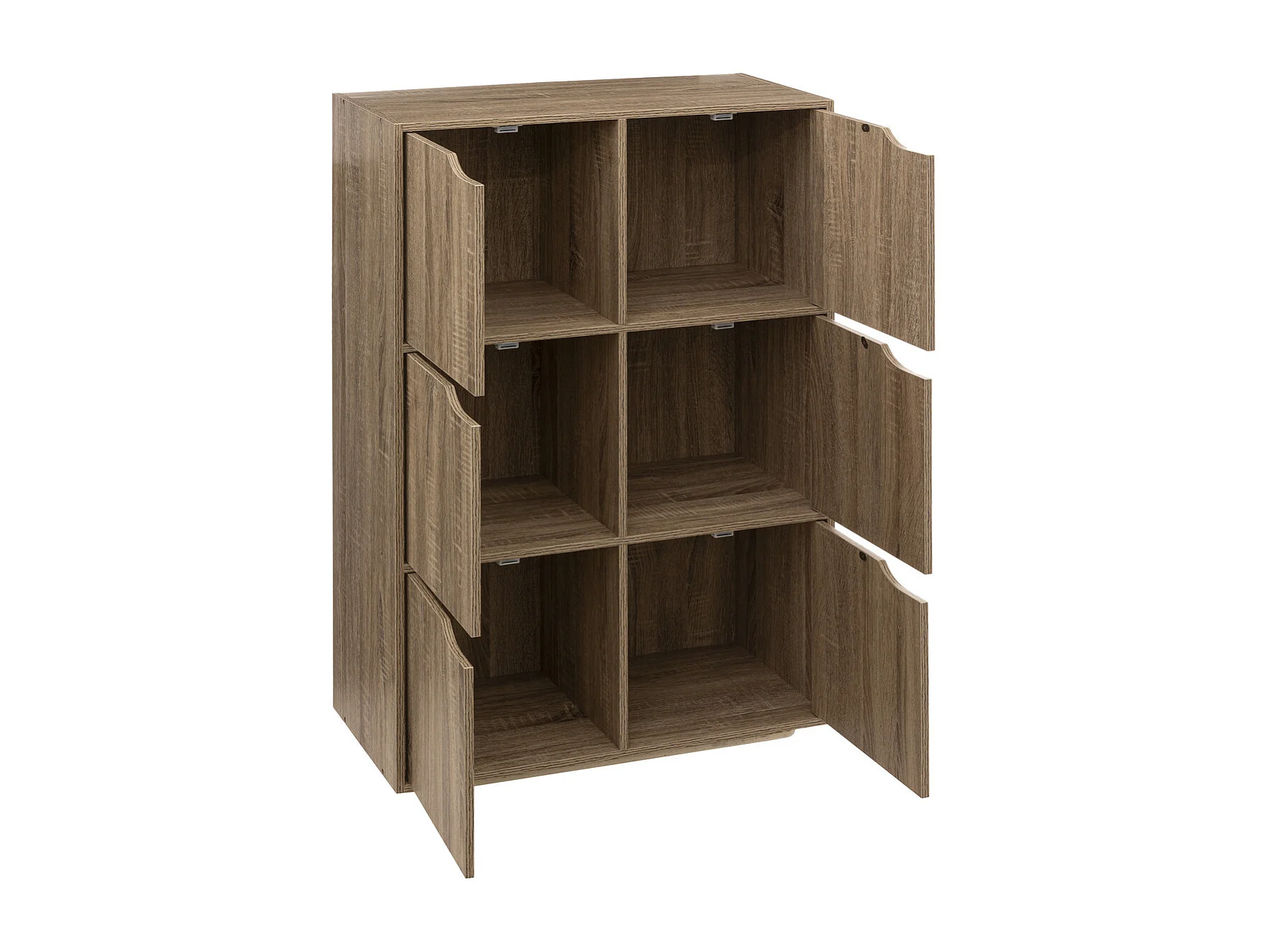 Meuble Etagère 6 Cases de rangement 6 Portes effet bois naturel H 100.5 cm