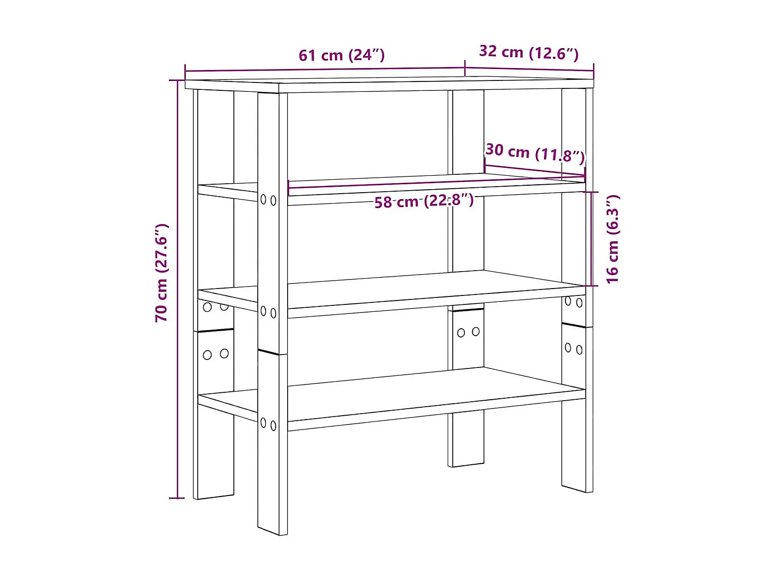 Étagère à chaussures pieds en métal Blanc 106x35x45cm Bois OSLO