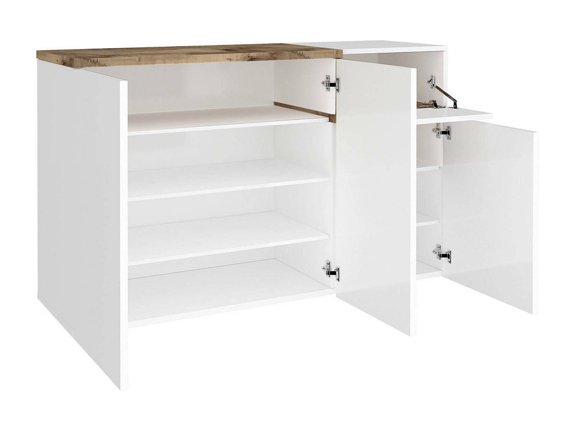 Zapatero Dmessia, Mueble multiusos 3 puertas y 1 puerta abatible, Zapatero de entrada, 100% Made in Italy, cm 120x40h80, Blanco brillo y Arce