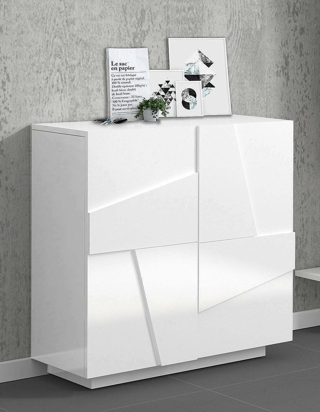 Étagère à chaussures Dfogl, Armoire polyvalente avec 2 portes, Étagère à chaussures d'entrée, 100% Made in Italy, 81x38h86 cm, Blanc brillant avec détail