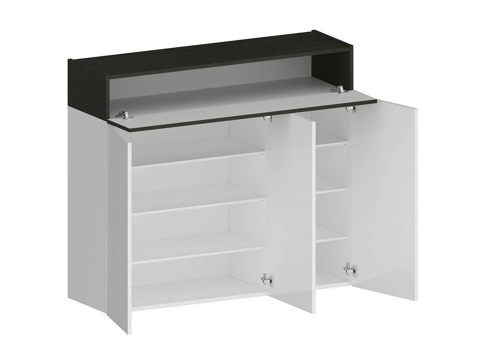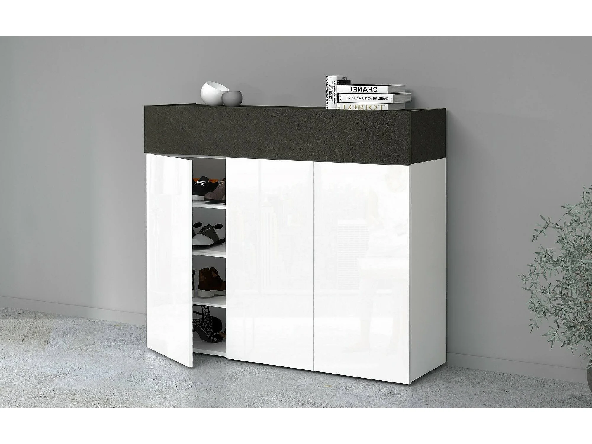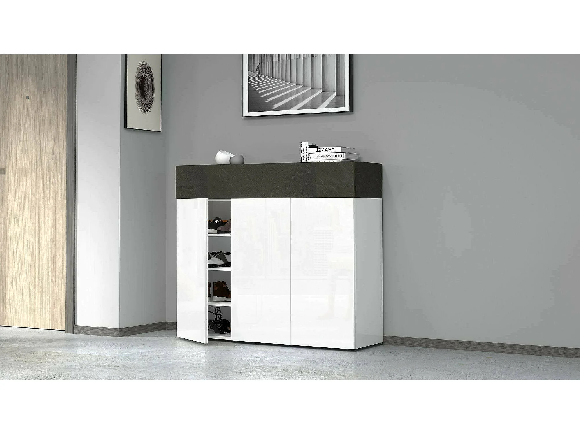 Étagère à chaussures Nick, étagère à chaussures peu encombrante à 4 portes, armoire d'entrée multifonctionnelle, 114x38h100 cm, Blanc et Ardoise