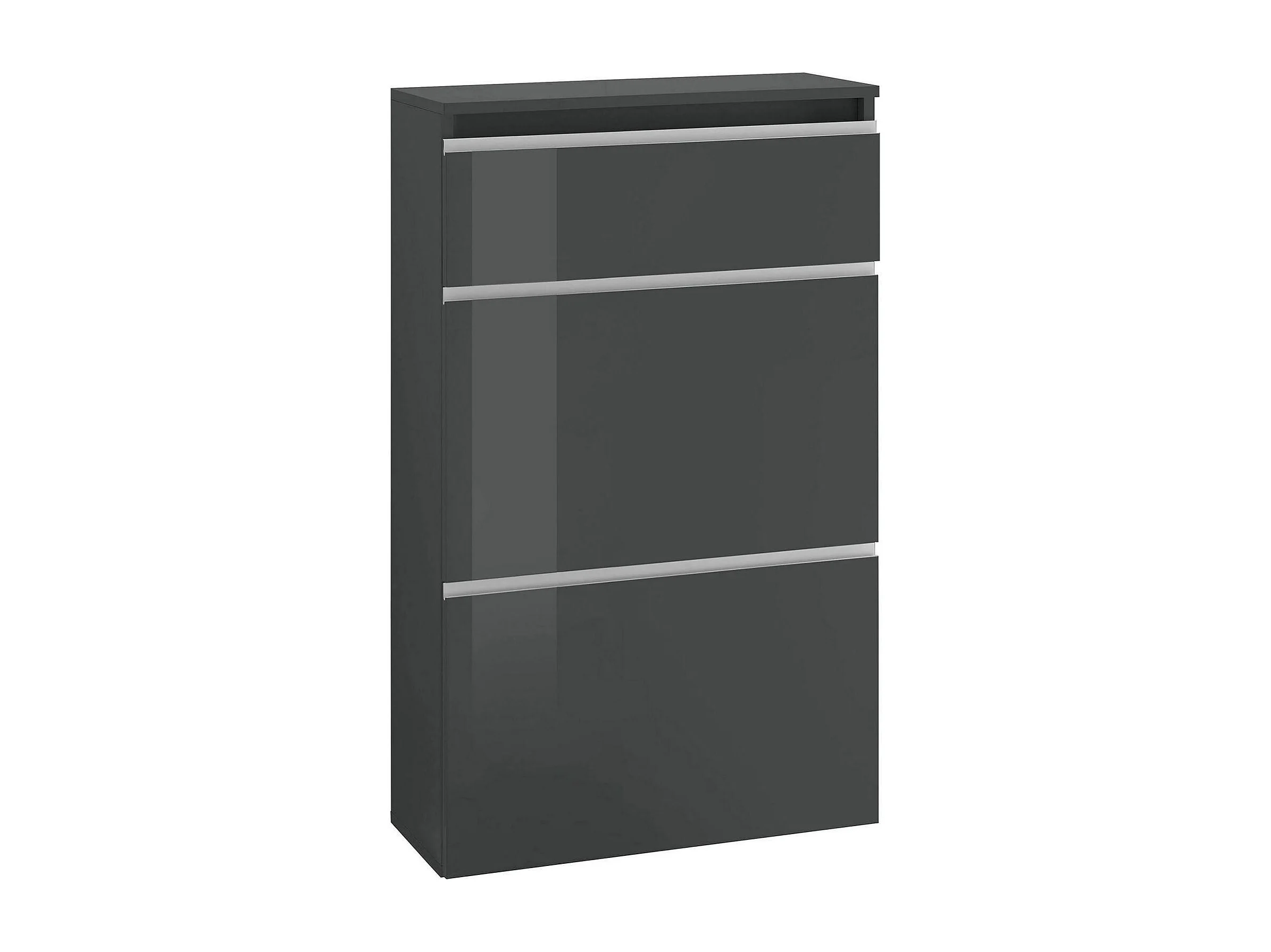 Schuhschrank Paco, Mehrzweckschrank mit 2 Türen und 1 Klapptür, Eingangsschuhregal, 100 % Italy, cm 60x27h108, Anthrazit glänzend