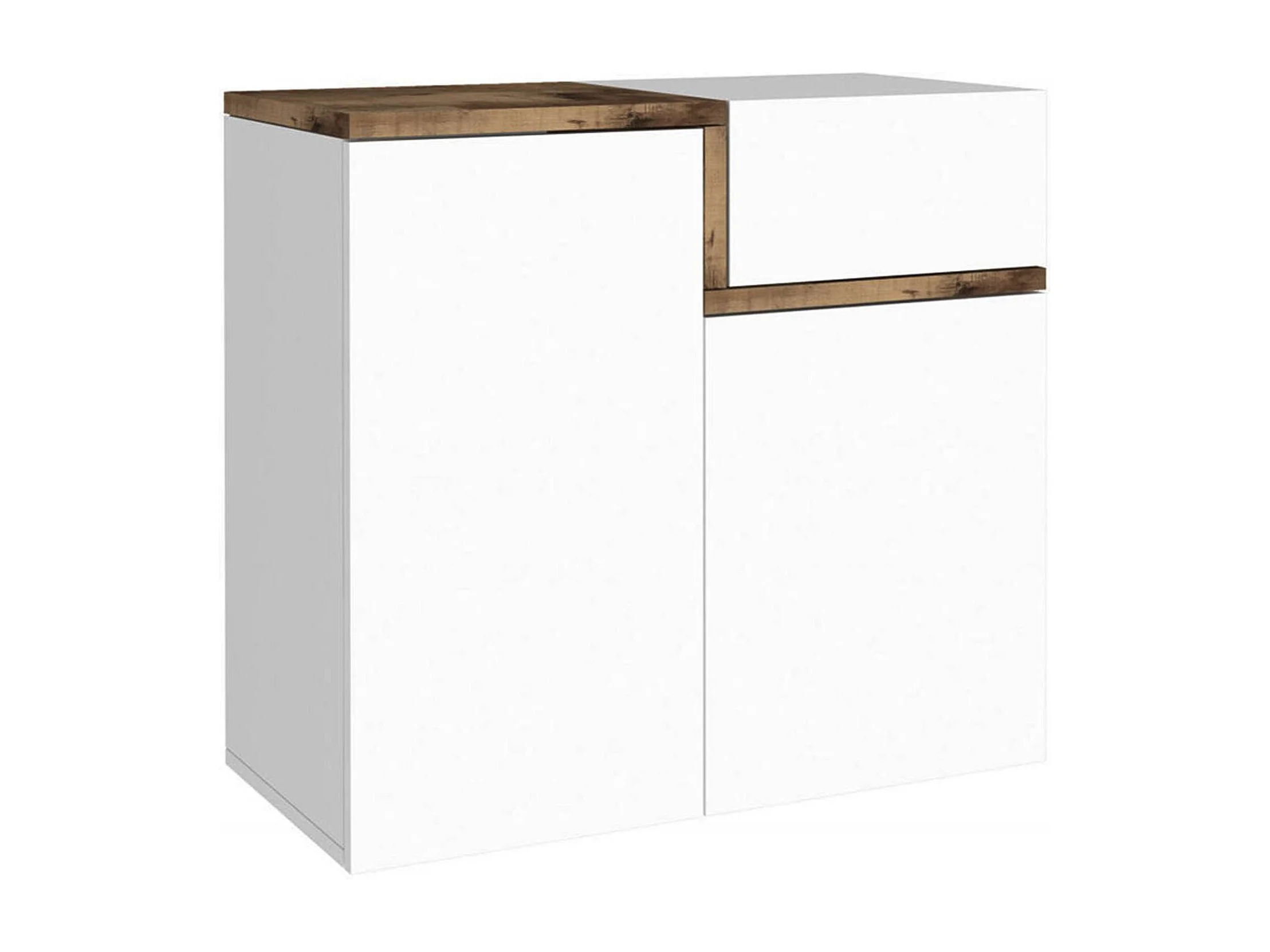 Dmora Modernes Schuhregal, Made in Italy, mit 2 Türen und 1 Klapptür, Eingangsschuhregal, Mehrzweckschrank, 80x40h80 cm, Glanzweiß und Ahornfarbe