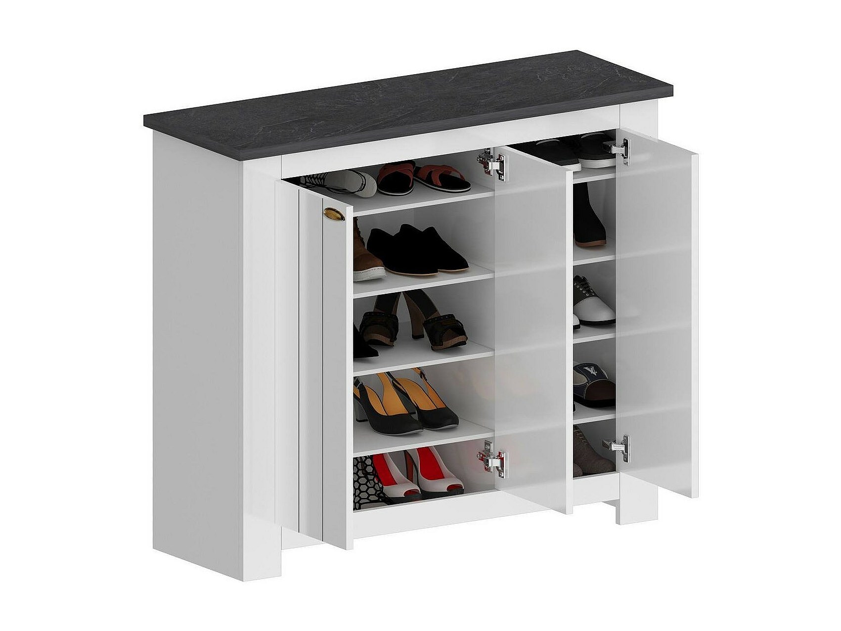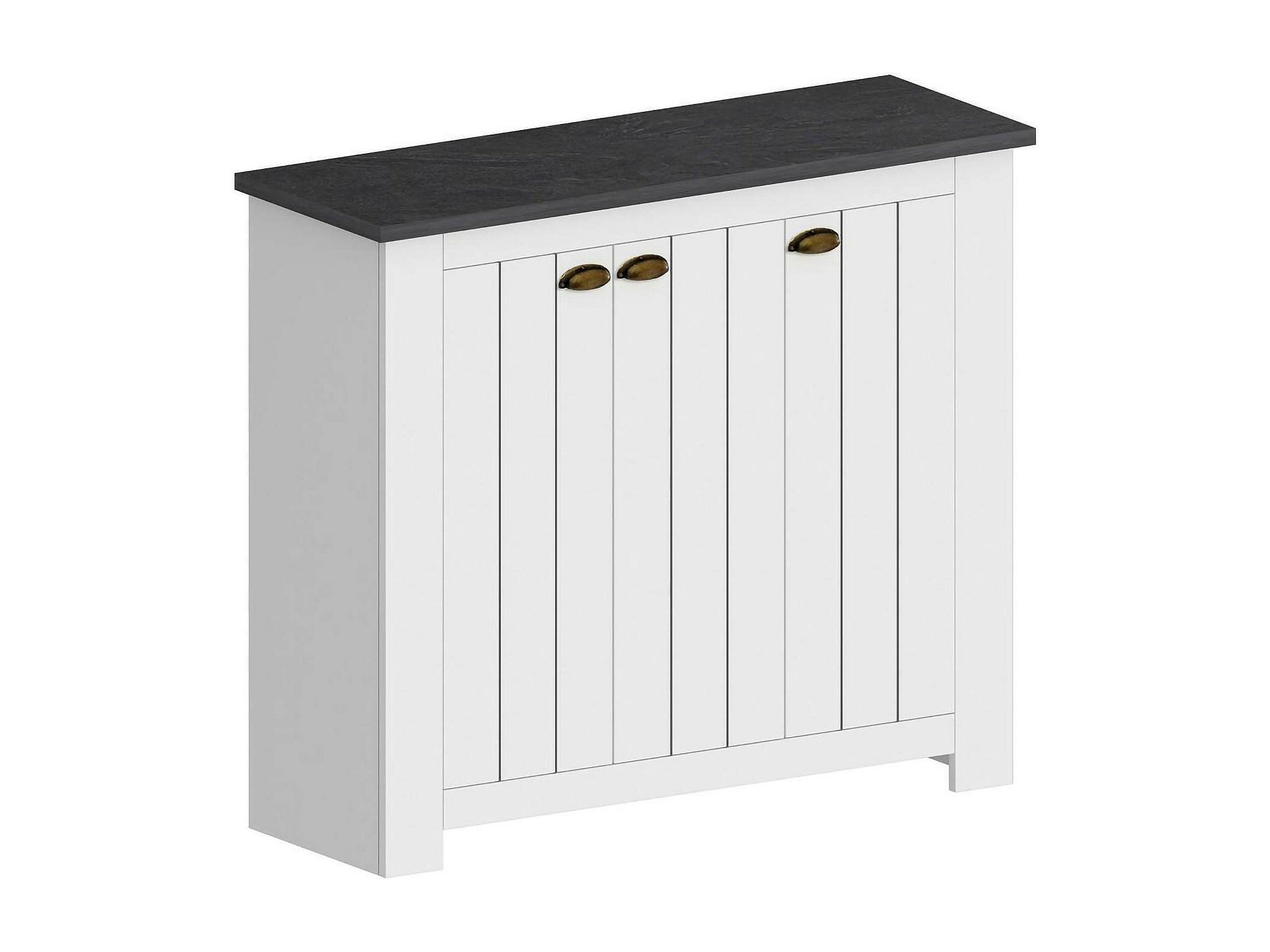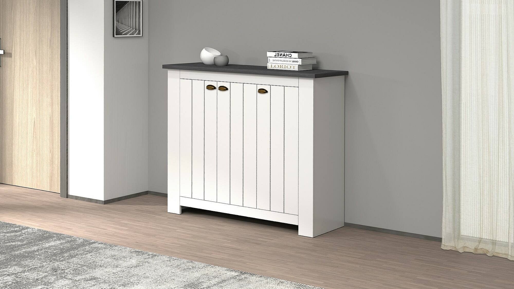Étagère à chaussures Tolomeo, étagère à chaussures peu encombrante avec 3 portes, armoire d'entrée multifonctionnelle, 114x42h100 cm, Blanc et Ardoise