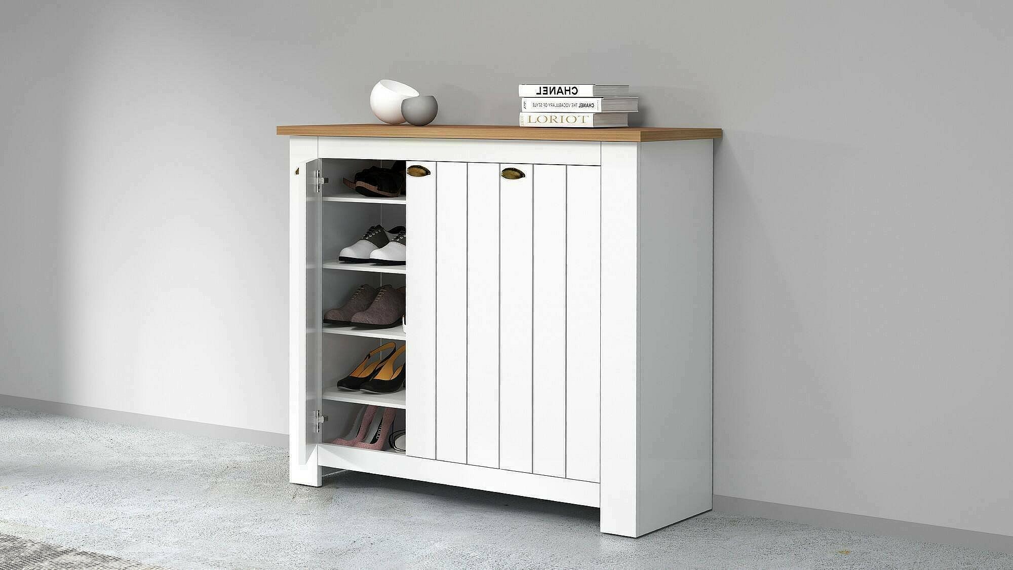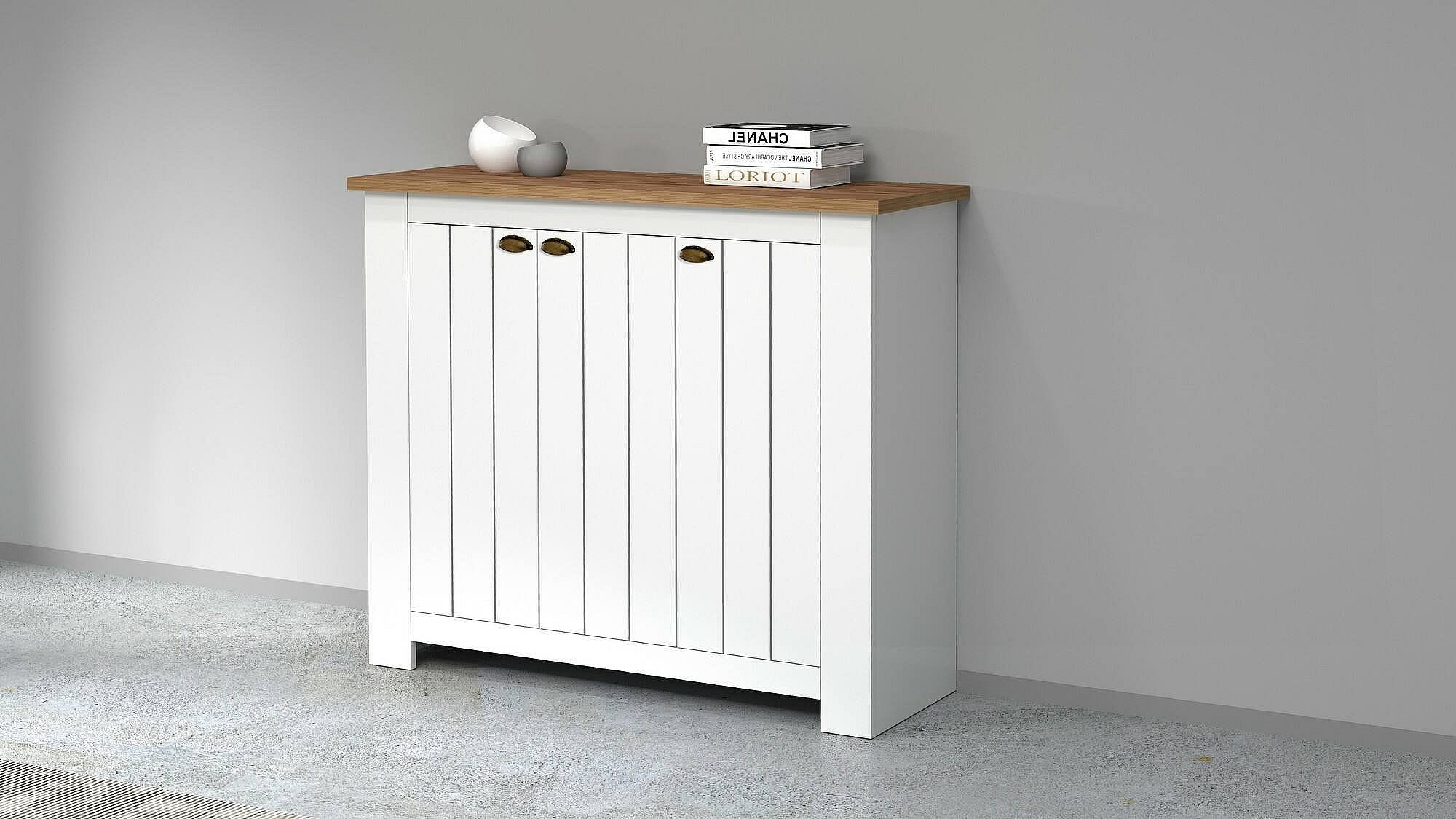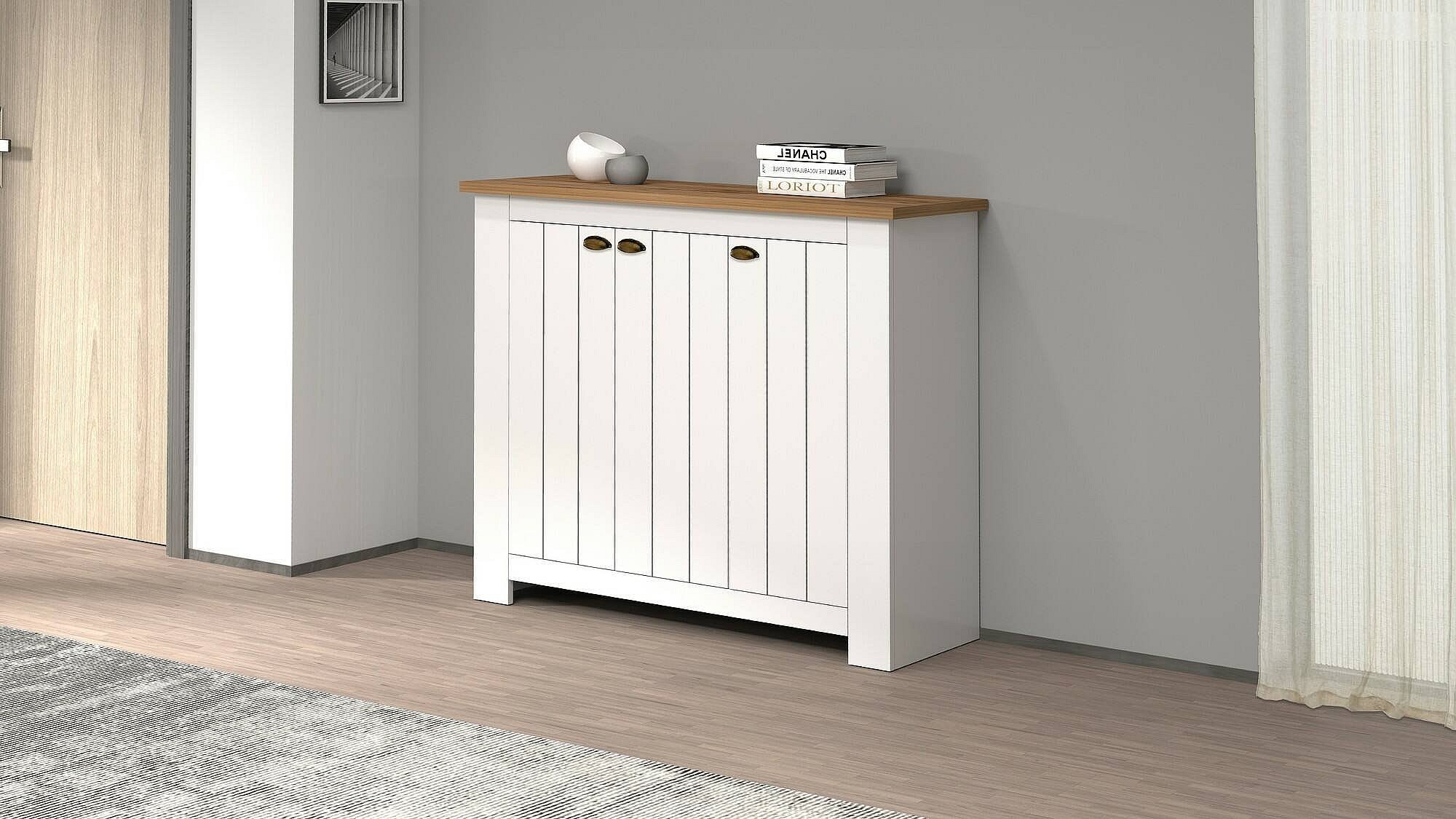 Étagère à chaussures Tolomeo, étagère à chaussures peu encombrante avec 3 portes, armoire d'entrée multifonctionnelle, 114x42h100 cm, Blanc et Chêne