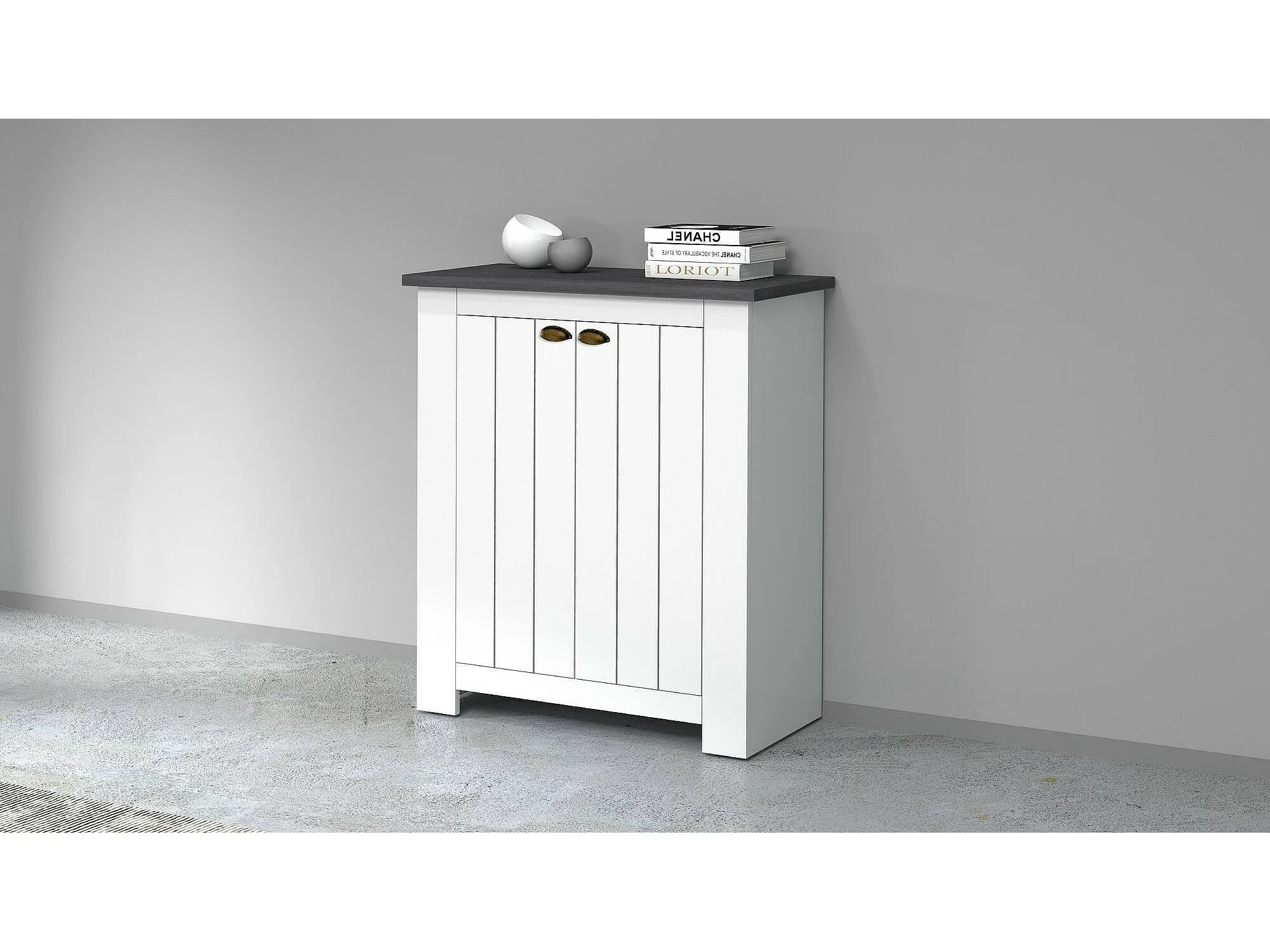 Étagère à chaussures Tonio, étagère à chaussures peu encombrante avec 2 portes, armoire d'entrée multifonctionnelle, 84x42h100 cm, Blanc et Ardoise