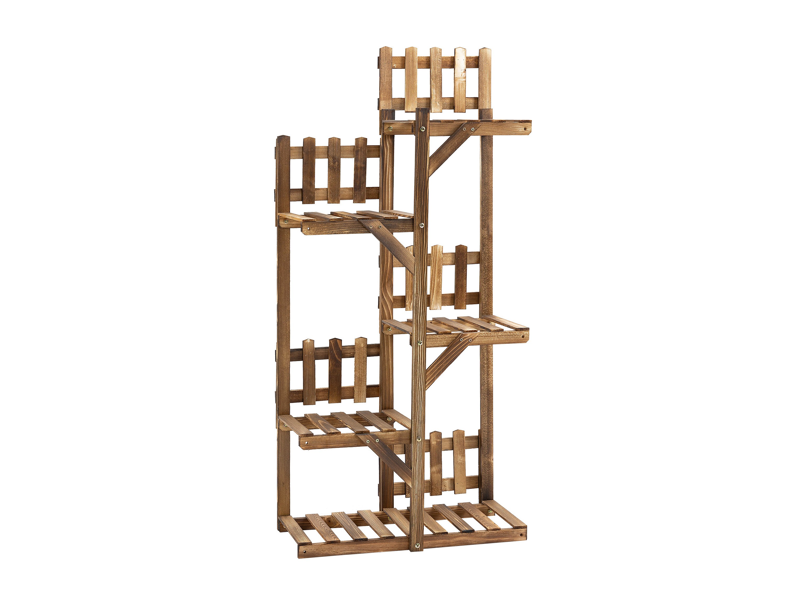 Étagère à fleurs en bois - porte plante bois 6 tablettes - dim. 98L x 28l x 95H cm - bois de sapin traité carbonisation