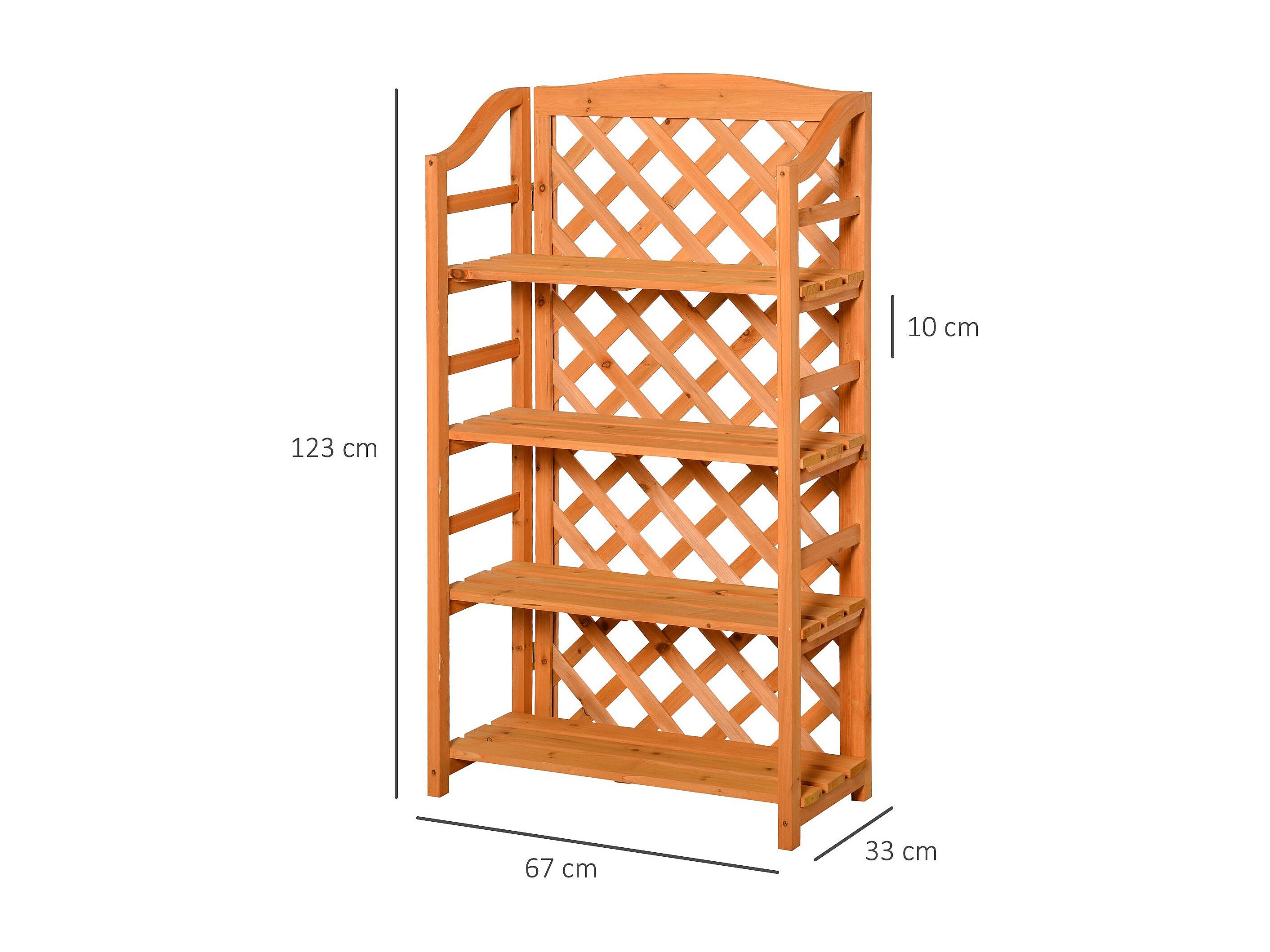 Étagère à fleurs pliable - 4 étagères à lattes réglables - pan arrière treillis - bois sapin
