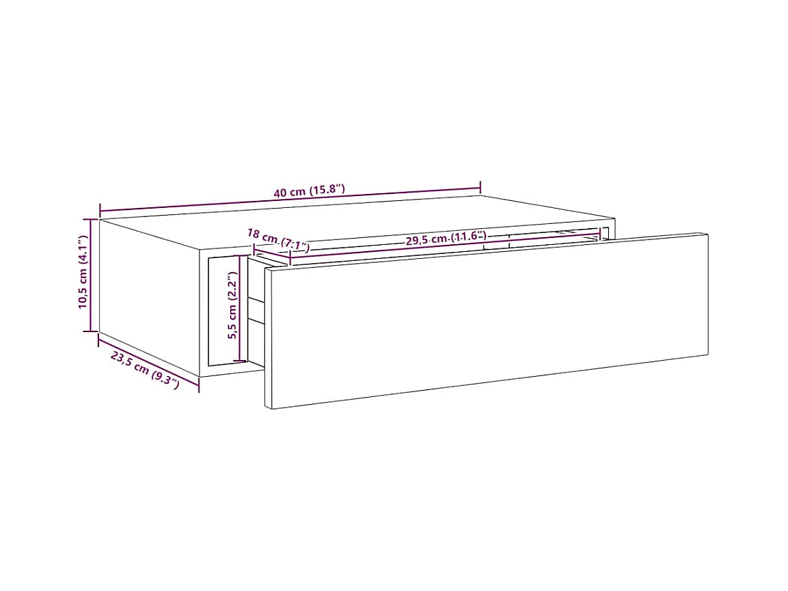 Étagère à tiroir murale noir 40x23,5x10 cm MDF