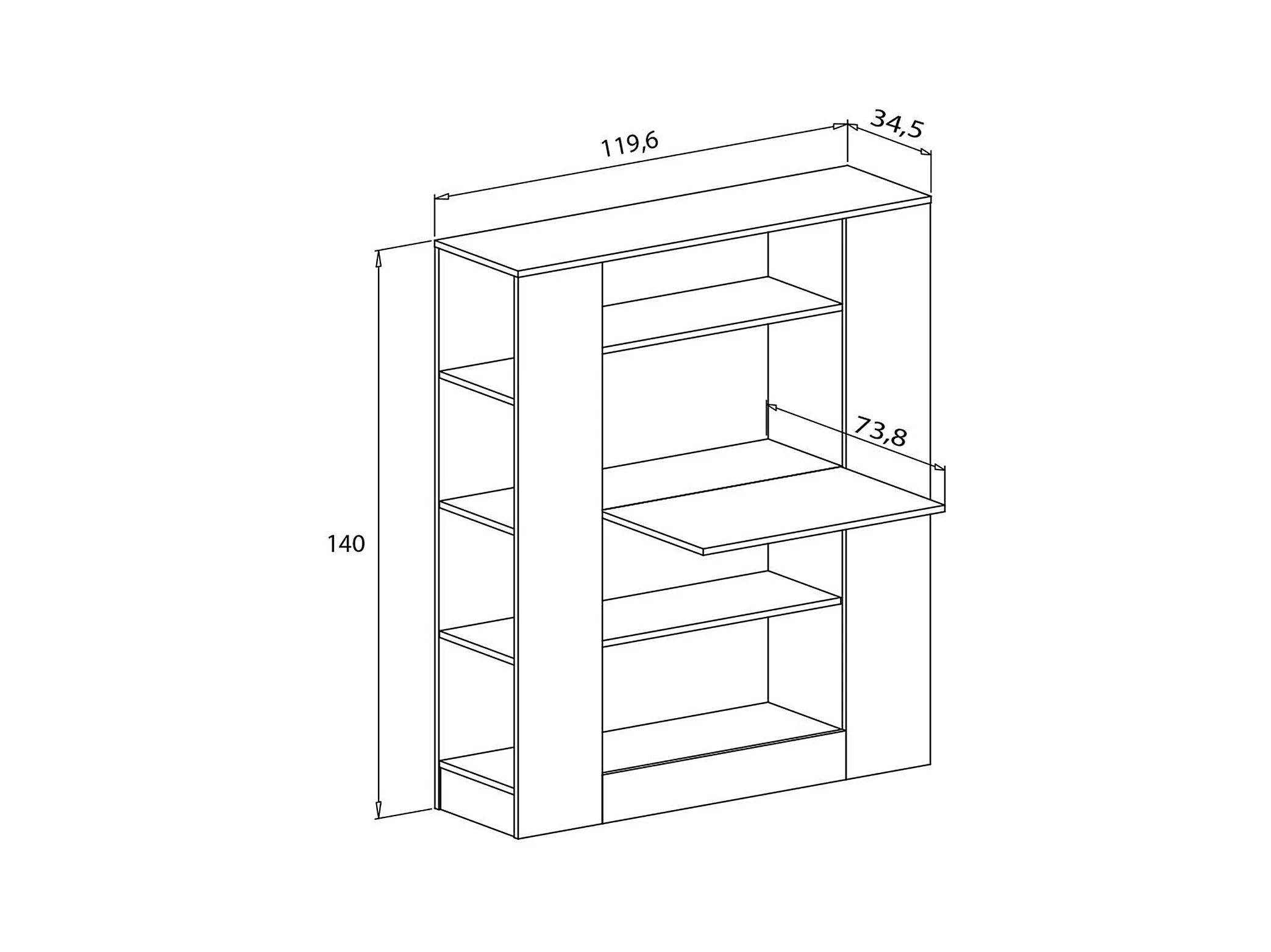 Etagère avec fonction bureau coloris puccini, graphite - Longueur 119,6 x profondeur 34,50 x hauteur 140 cm