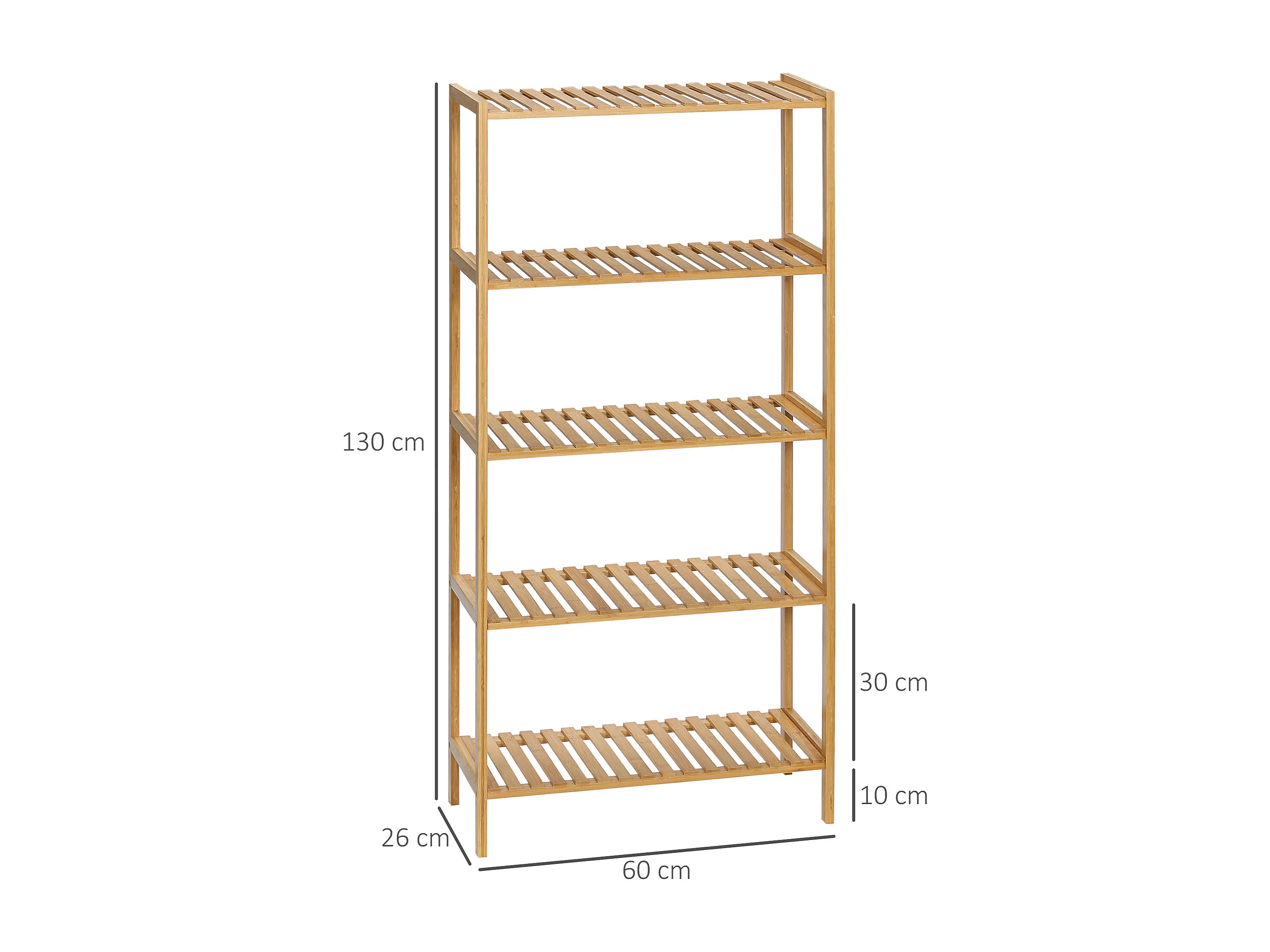 Étagère bambou salle de bain - 5 niveaux à lattes - 60 x 26 x 130 cm