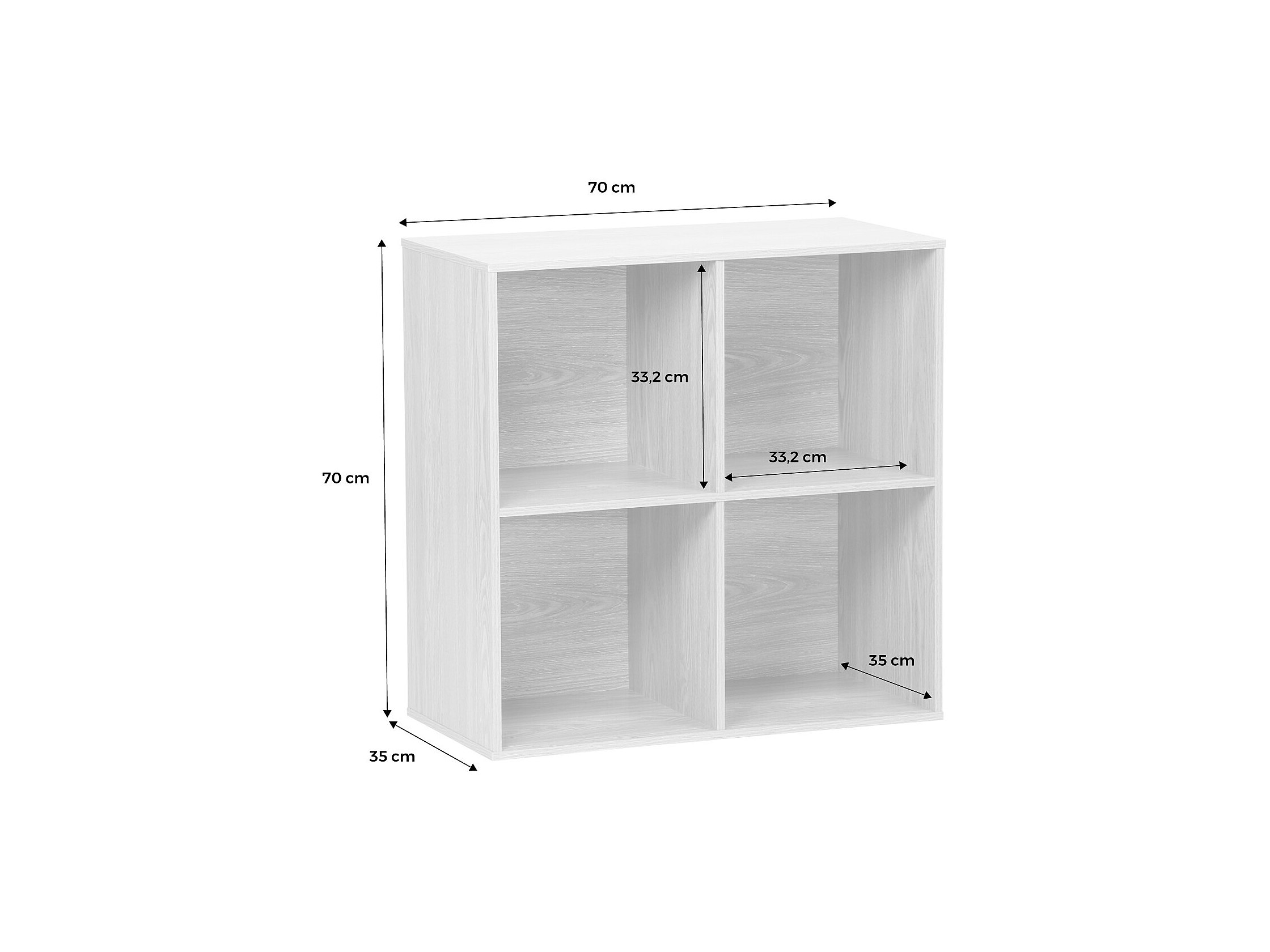 Etagère. bibliothèque. module de rangement décor bois blanc 4 compartiments L 70 x P 35 x H 70cm - Kompo