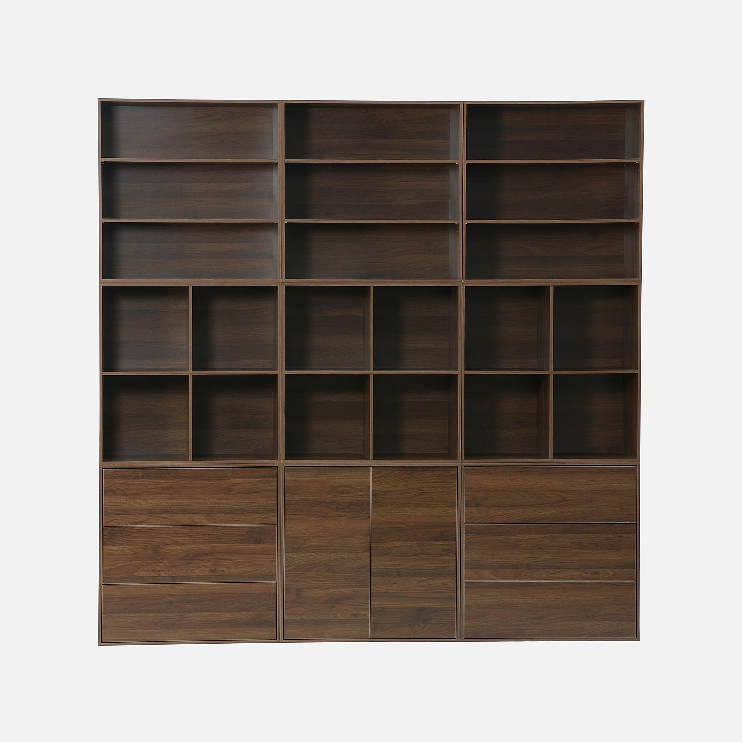Bibliothèque design asymétrique naturelle. Pieter. 3 étagères. 12 compartiments de rangement