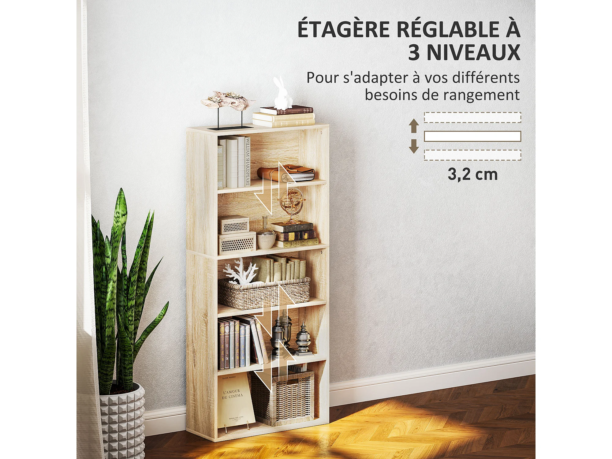Étagère cube colonne - bibliothèque - rangement 5 compartiments - dim. 60 x 24 x 133 cm - effet bois naturel