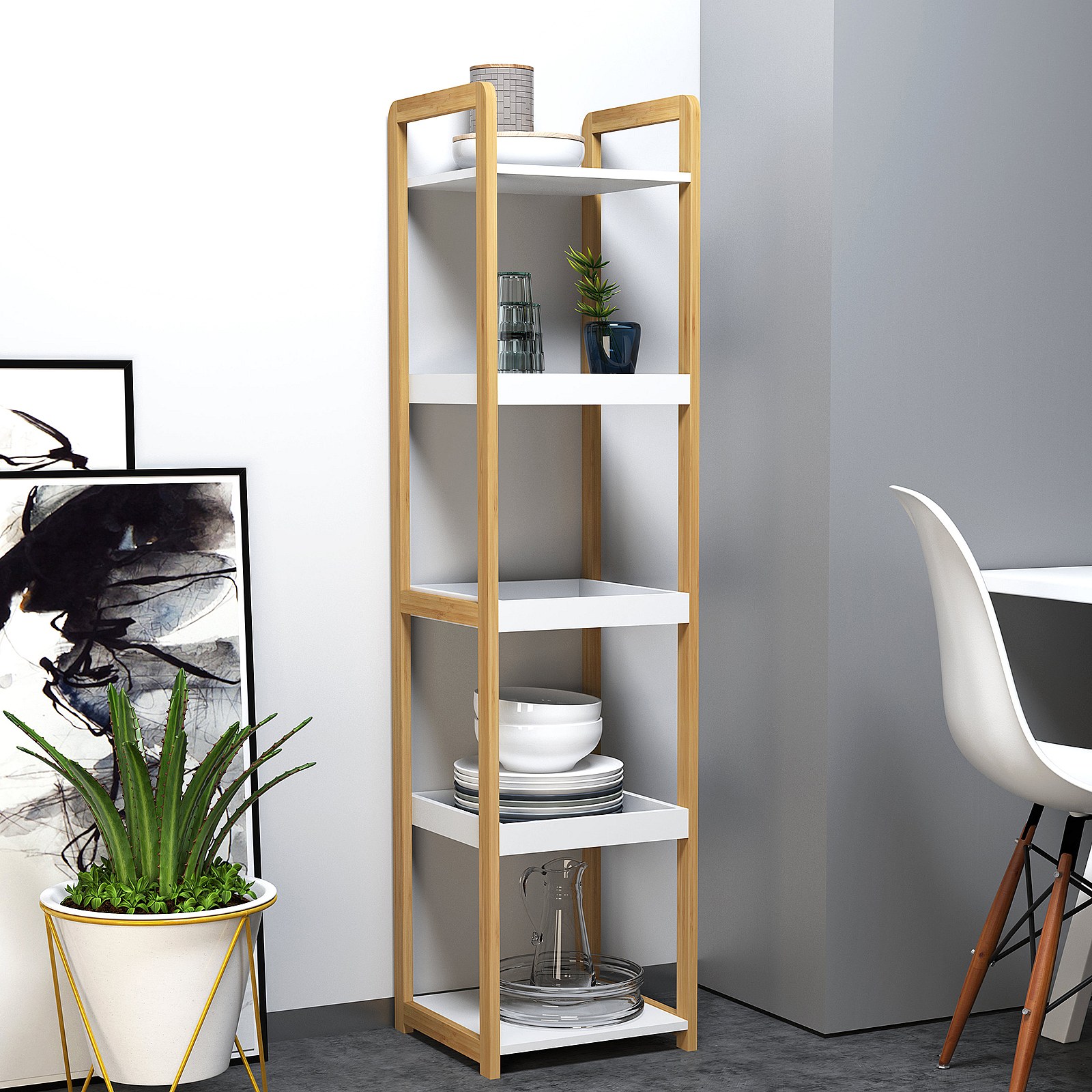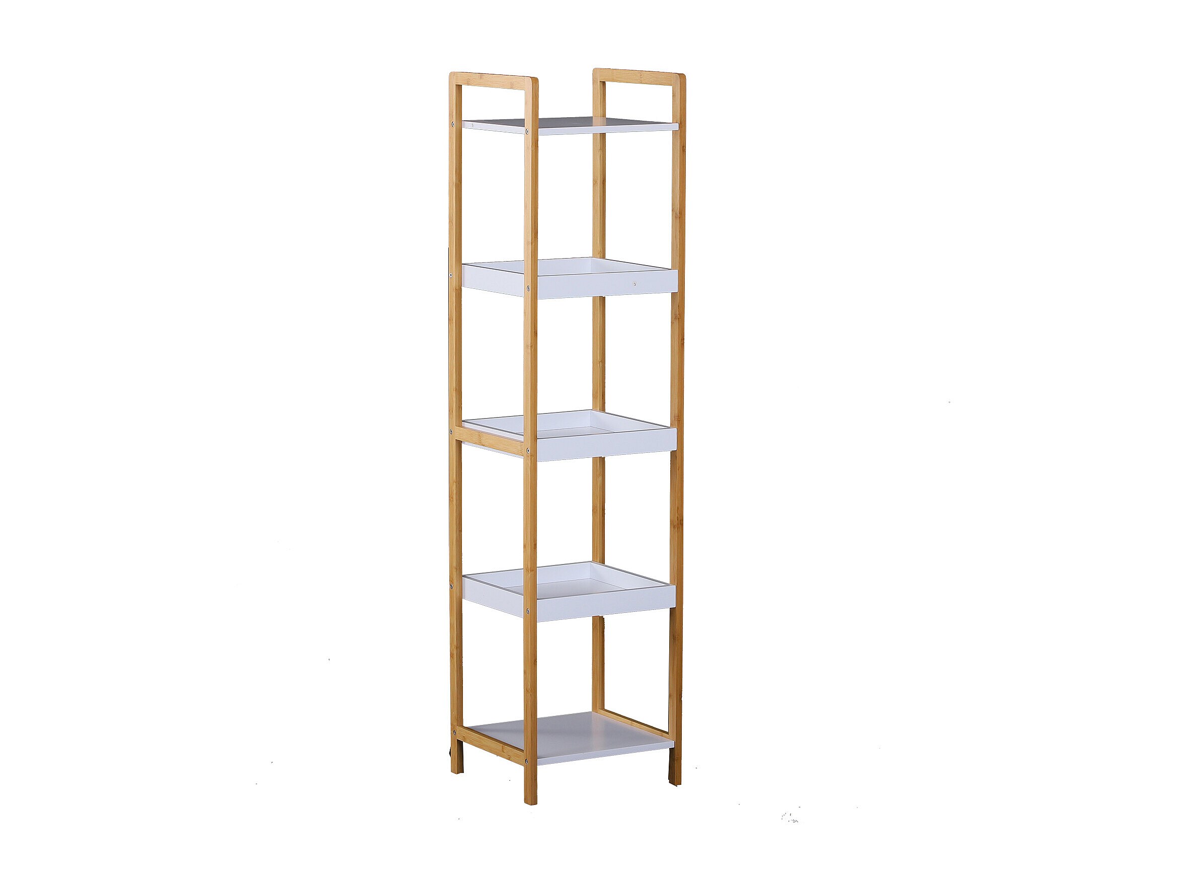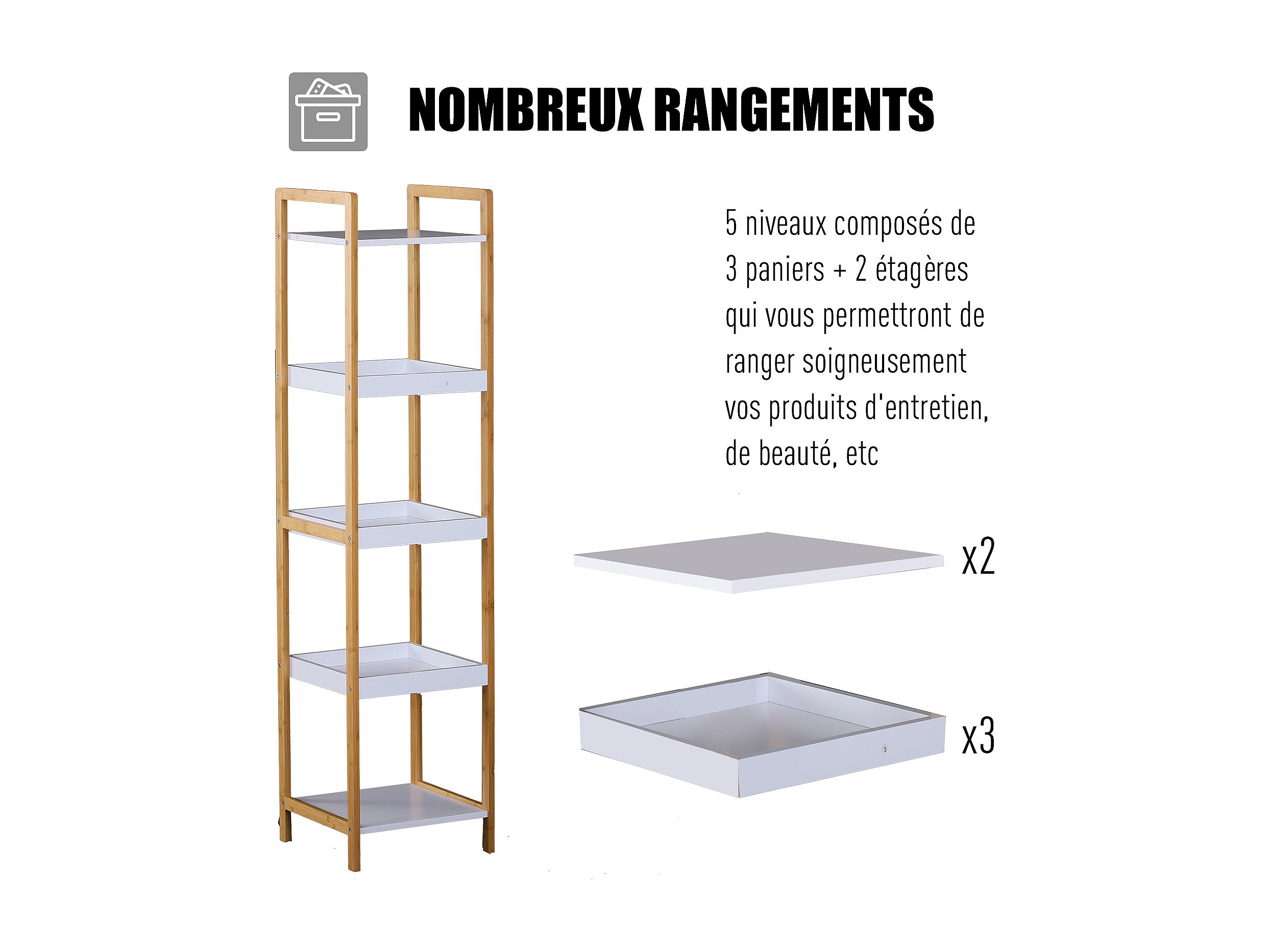 Etagère en bambou de salle de bain étagère debout 3 paniers + 2 étagères dim. 32L x 30l x 130H cm beige blanc
