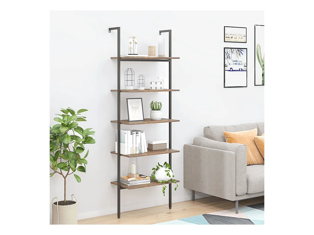 Étagère inclinée à 5 niveaux Marron clair et noir 64x35x185cm