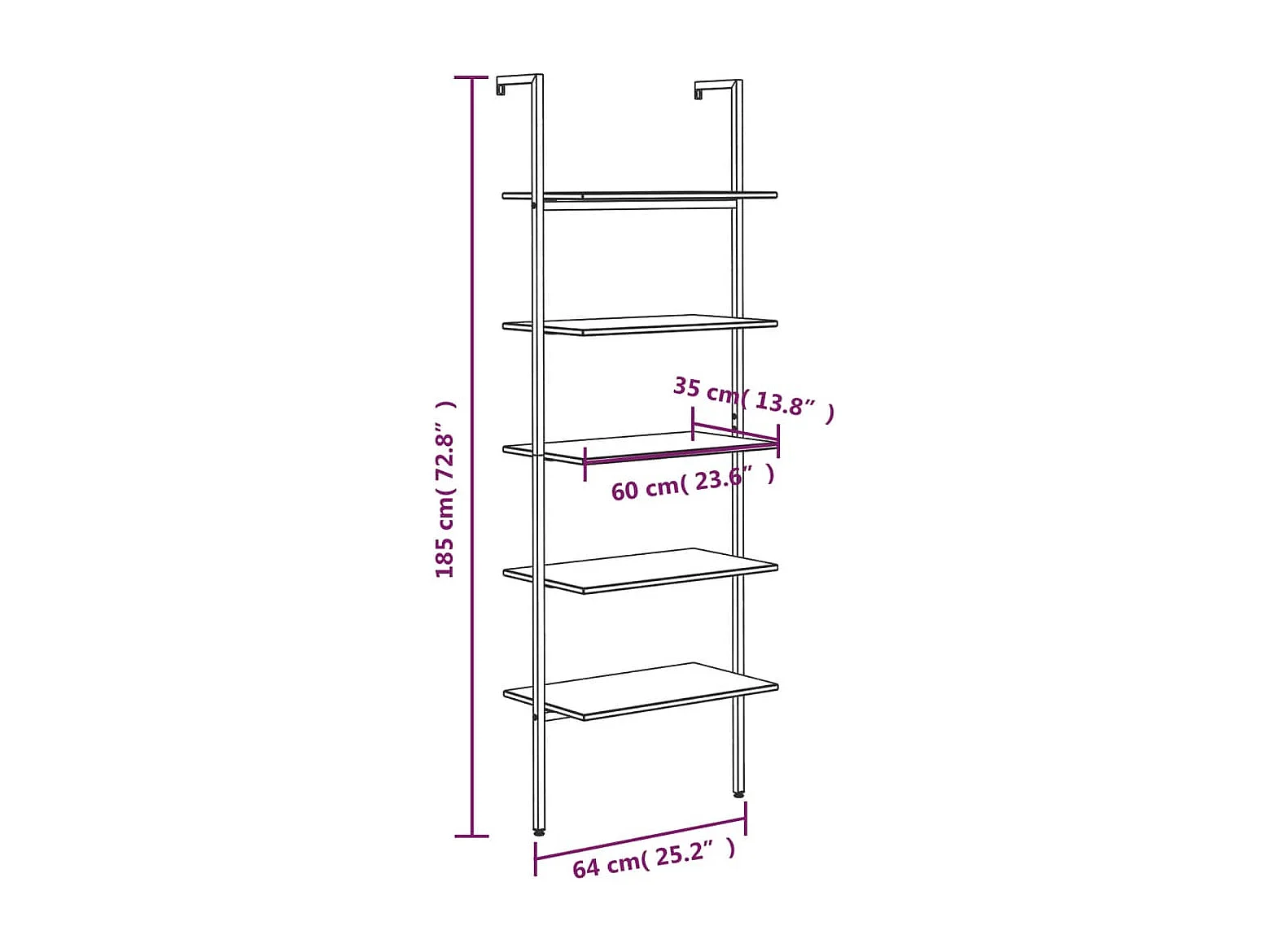 Étagère inclinée à 5 niveaux Marron foncé et noir 64x35x185 cm