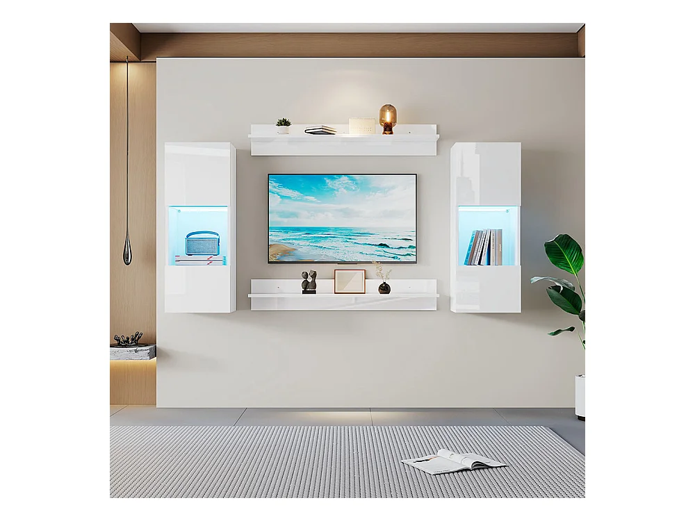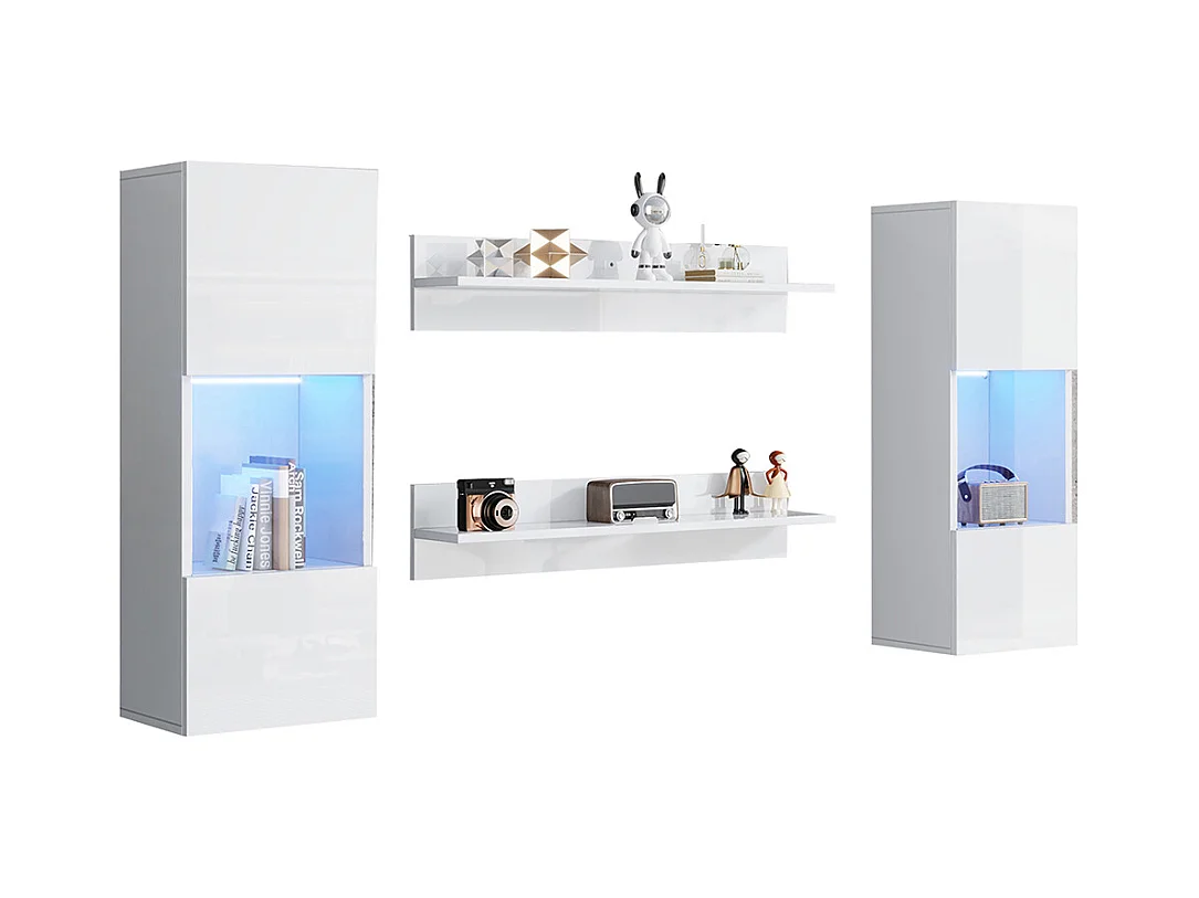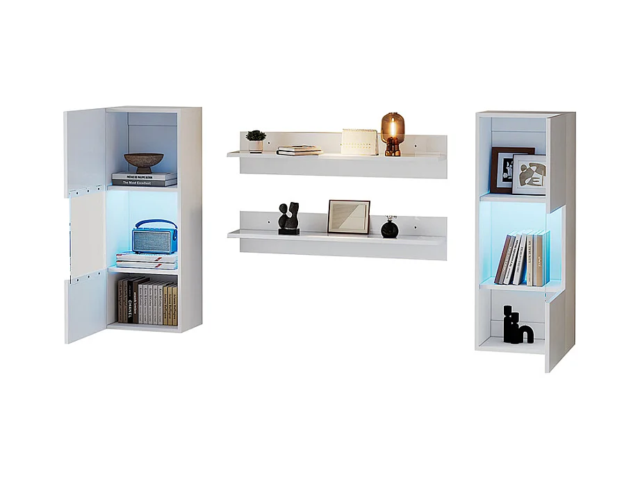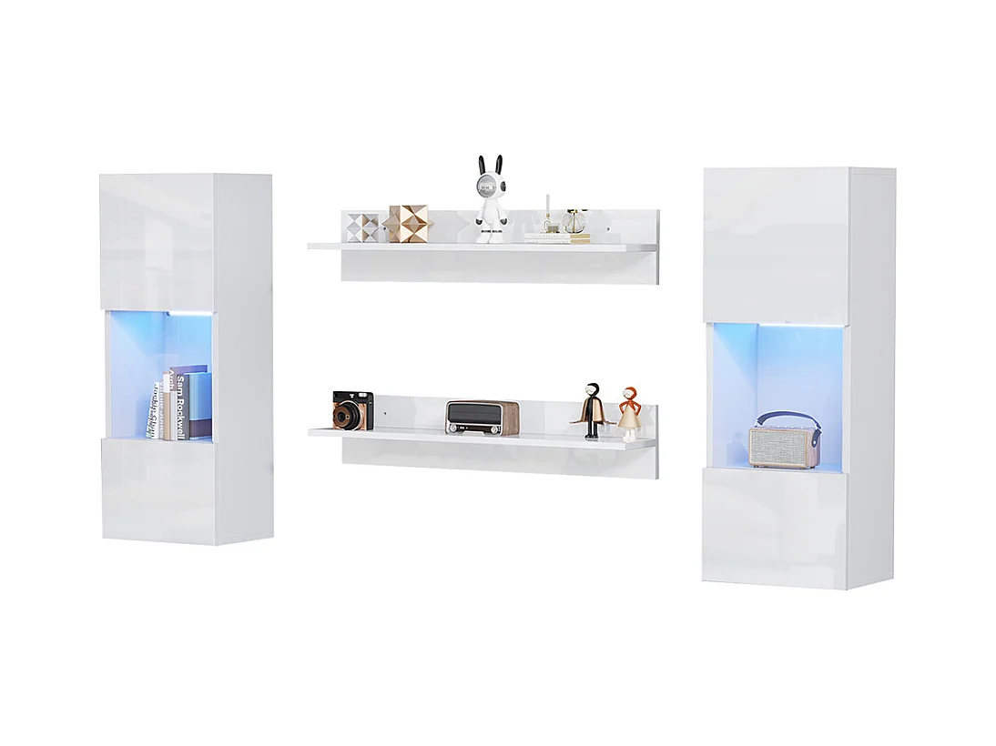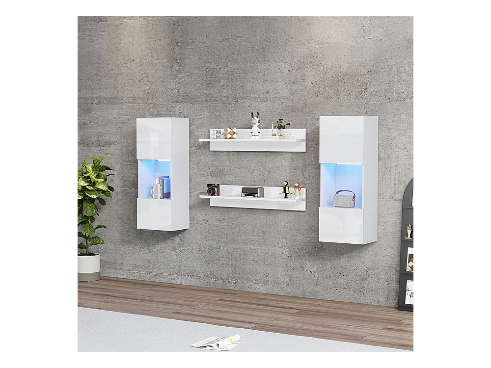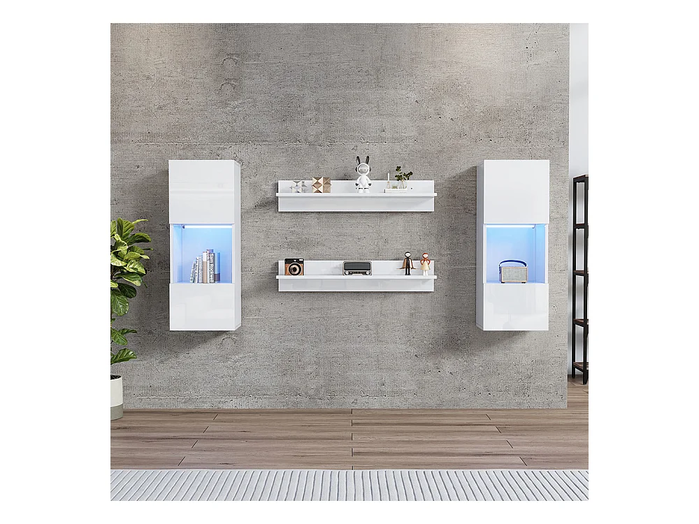 Étagère murale 4 pièces blanc LED portes verre trempé application éclairage intelligent