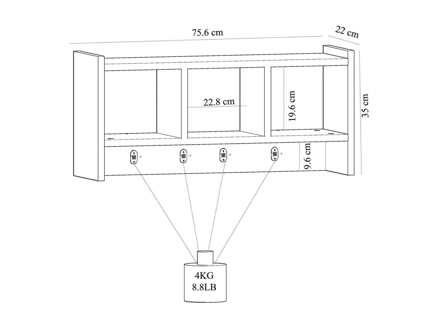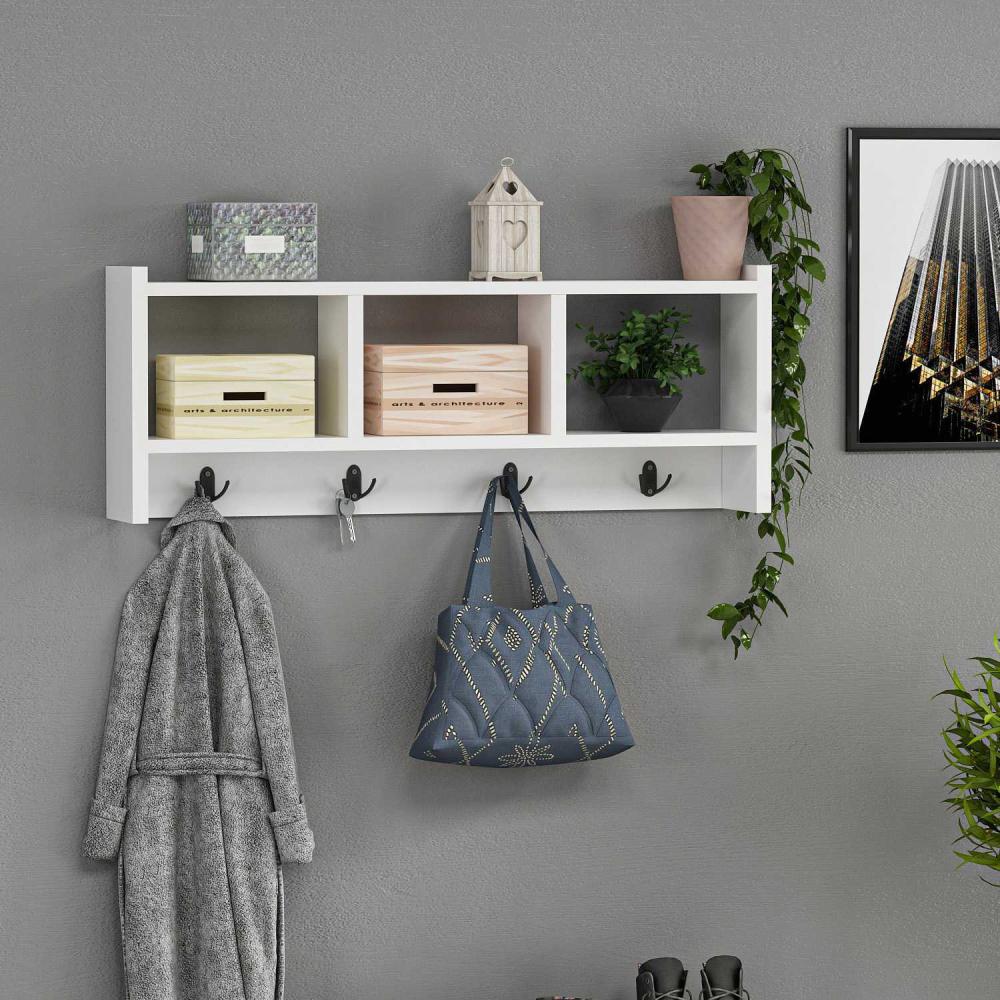 Portemanteau Étagère murale Meuble d’Entrée Patères avec 5 compartiments et 4 crochets, FHK17-W