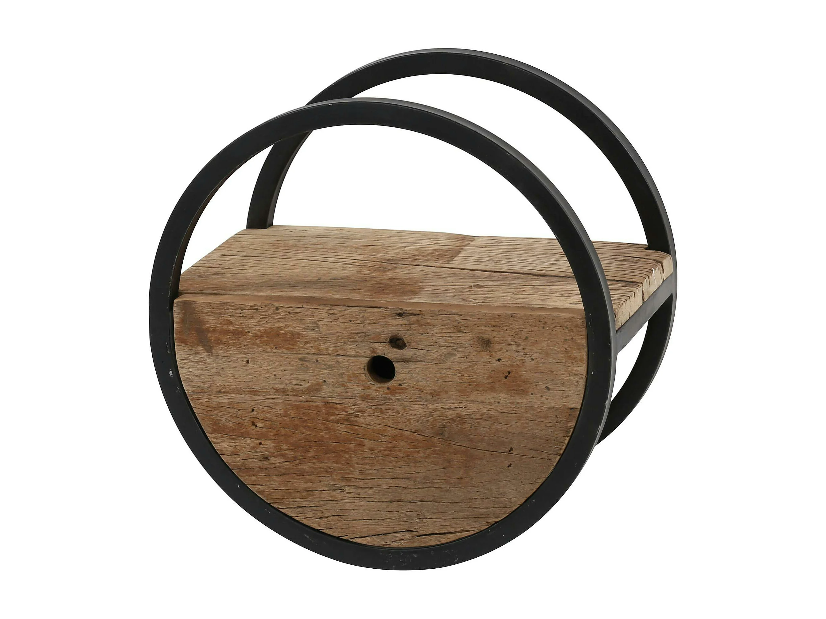 Etagère murale ronde bois recyclé brut 1 tiroir D30 cm CYCLADES